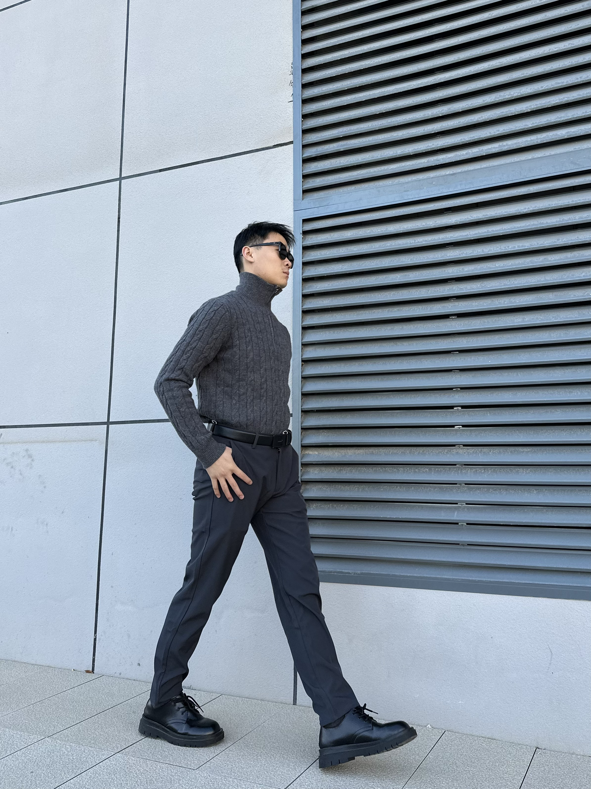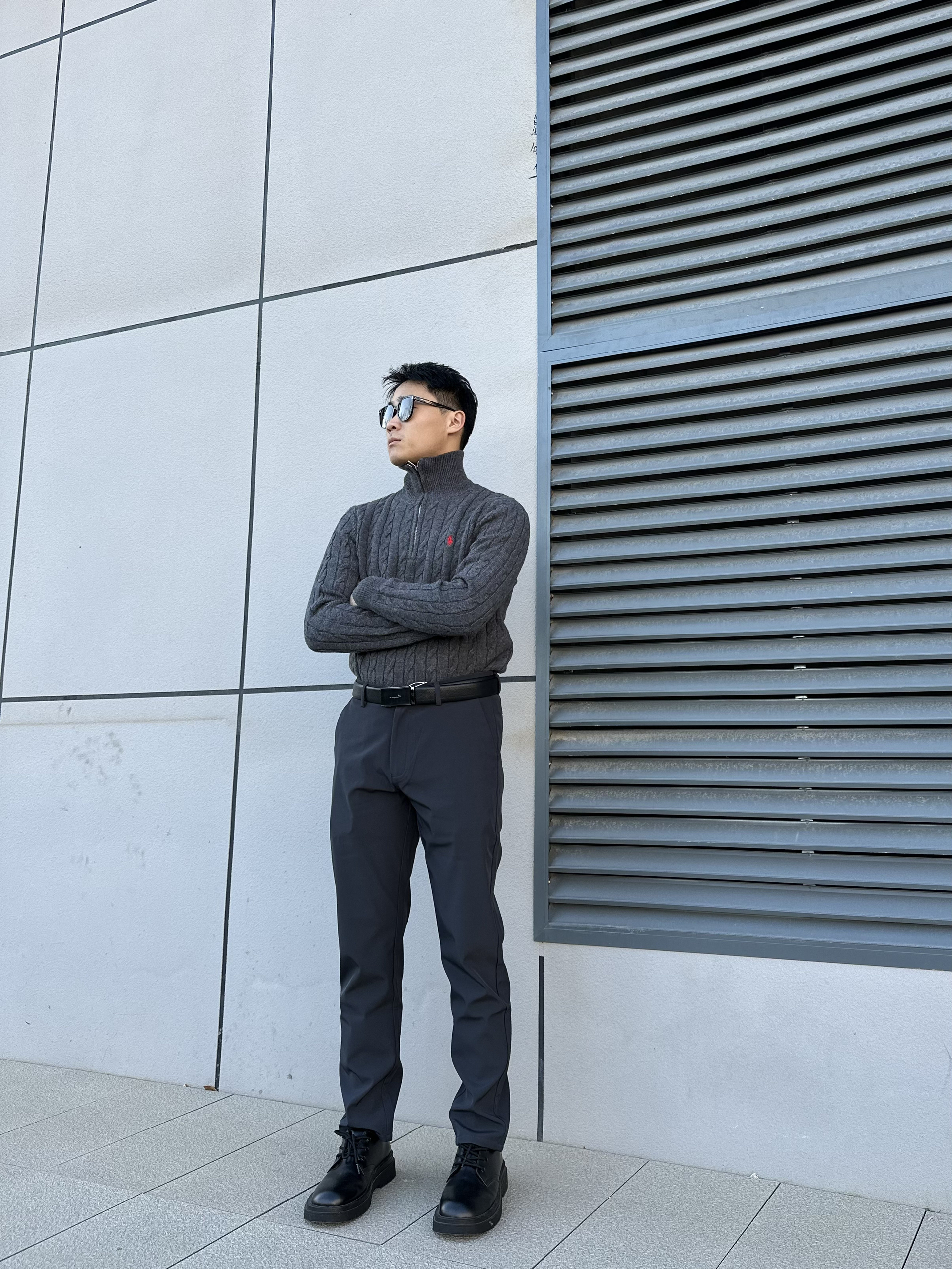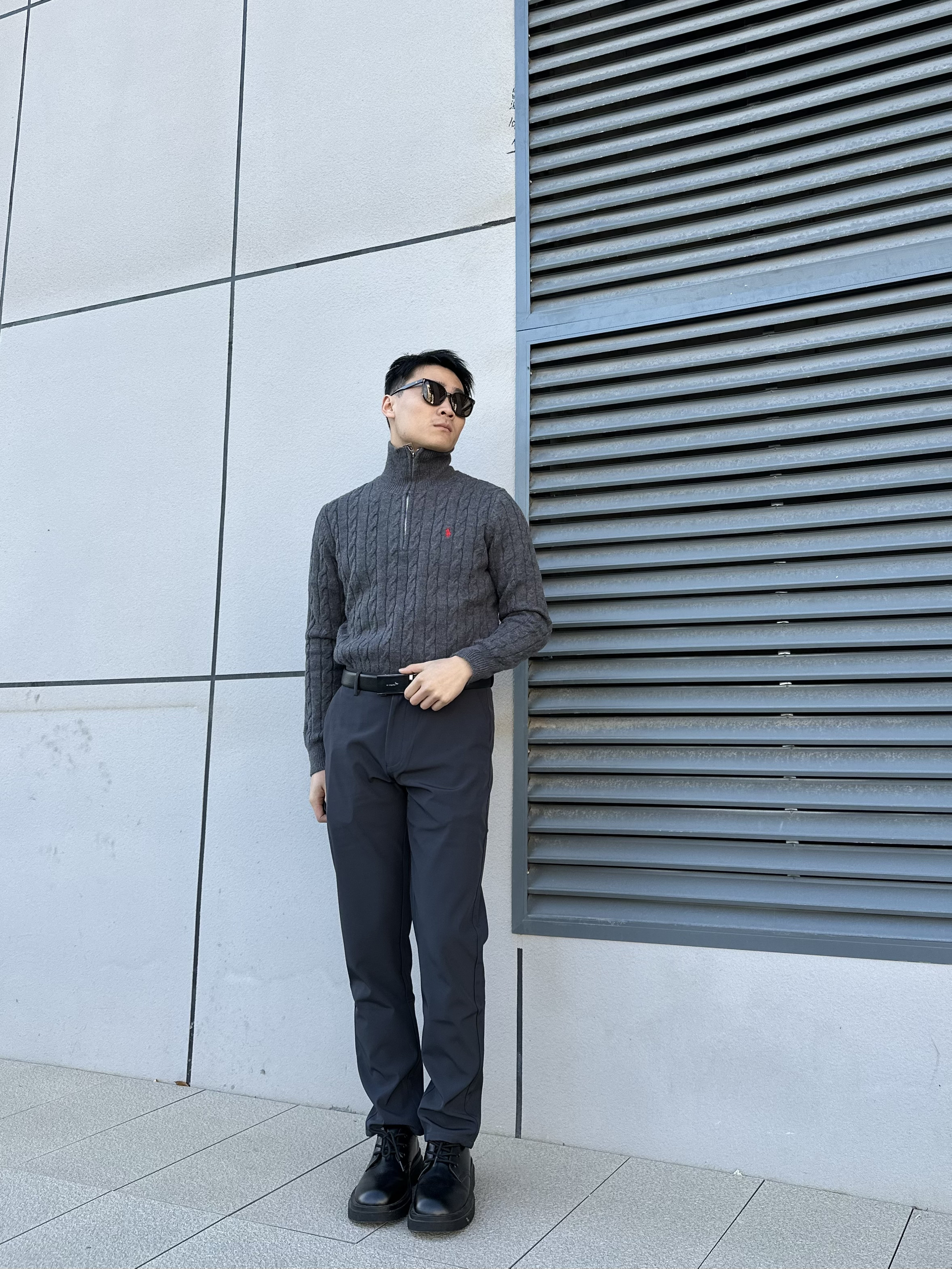 喽 这里是阿峰的穿搭分享 今天带来单品皮带👉 来自红蜻蜓的皮带还蛮不错👍 经典款式的设计 性价比还挺高 搭配上身拉夫针织衫 下身一件灰色西裤👖 这一套主打的黑灰色系 沉稳成熟的感觉扑面而来😎 #时尚简约皮带 #宝藏皮带穿搭 #皮带届的质感天花板 #令男生心动的皮带 #分享高级宝藏皮带