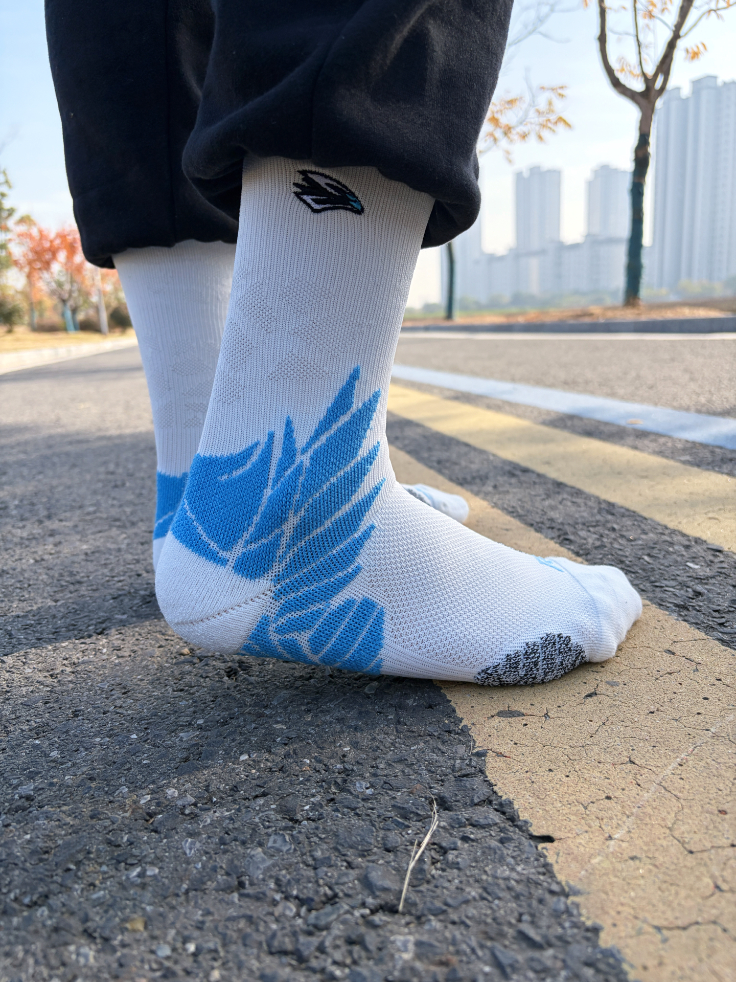 今天穿的袜子是来自维动的隼系列篮球袜,设计和特点很鲜明。 主色调是白 + 浅蓝,中段有大面积的 “羽翼” 图案,袜口还有小鹰标识 脚底有防滑纹理设计,兼顾耐磨和包裹性 适配篮球、跑步等运动场景,也能日常搭配运动鞋穿。 #维动 VEIDOORN @维动VEIDOORN #运动开燥装备焕新 #篮球袜子维动 #2025跑鞋年终盘点 #高颜值的袜子 #一脚蹬进冬天