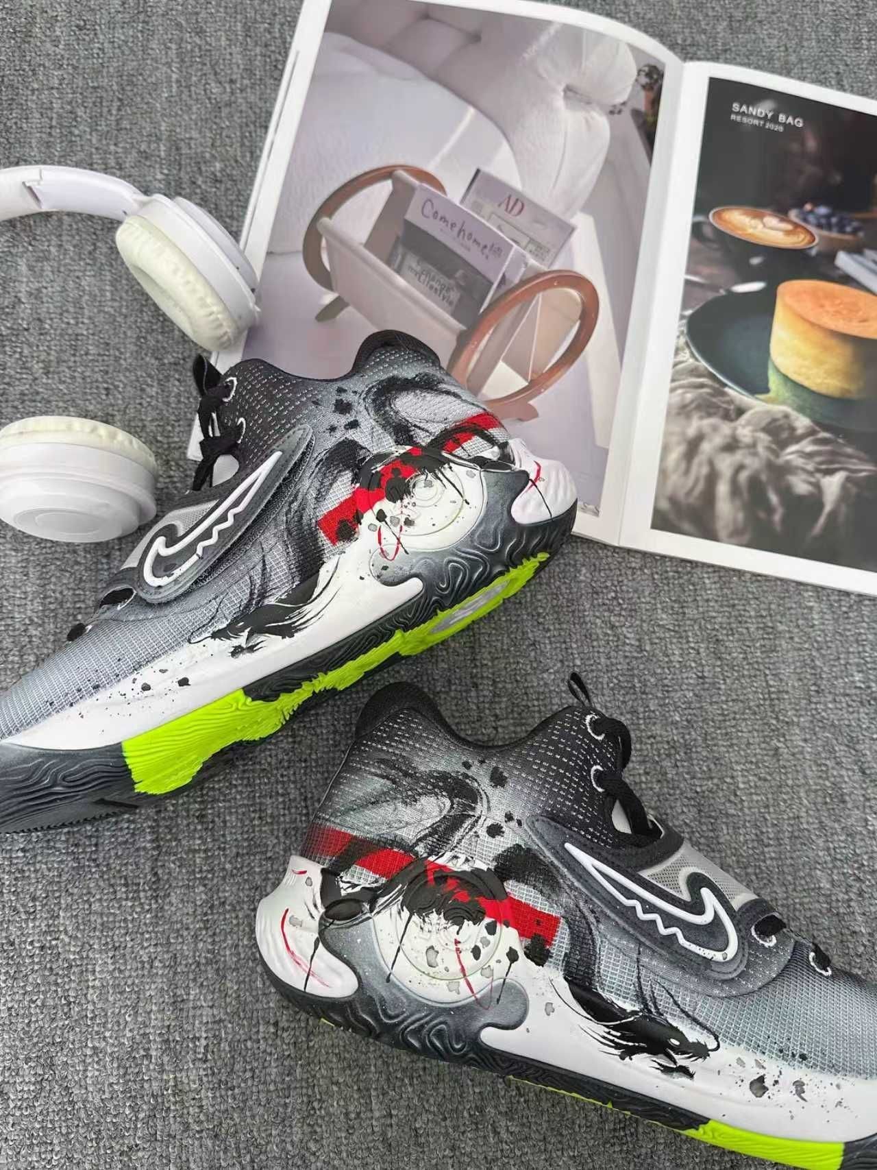 拿到手拆开鞋盒的瞬间就惊了,实物比图片还能打!鞋身主体是纯黑打底,鞋头到鞋帮蔓延着浅灰到白色的渐变,不是那种死板的色块拼接,而是像水墨晕染开的质感,搭配侧面若隐若现的涂鸦线条,既有新中式的韵味,又带着街头文化的酷感 实战方面:这双鞋包裹感,低帮设计但脚踝处的填充特别饱满,系紧鞋带后脚踝被牢牢固定住,不会有松动的感觉,做变向、急停时也不用担心崴脚。中底的缓震效果超出预期,我体重150斤,平时跳投落地...