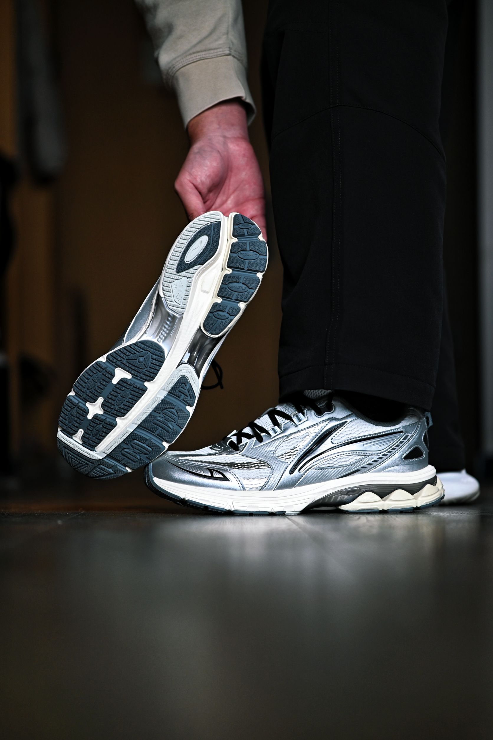 如何挑选一双又酷又好穿的复古慢跑鞋❓ 预算两张上下可以看看这双扶摇2.0 复古氛围十足的白银配色,搭配上专属定制的中底科技 不止是耐看,脚感这块也没落 特地穿了两天,跑鞋该有的素质一点没缺 大面积的网眼透气方面也很到位,主要还是颜值高 出门来条工装或者伞兵裤就可以很帅了