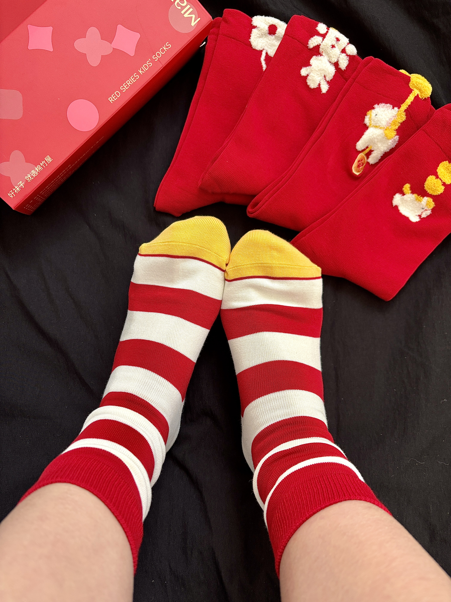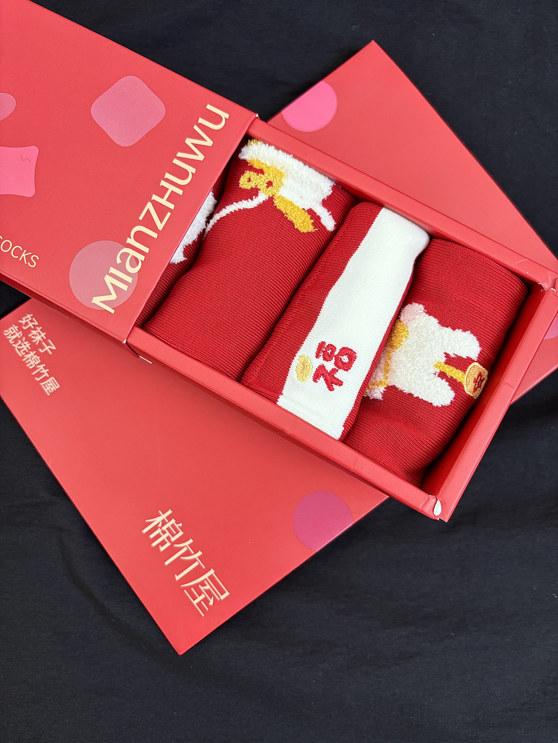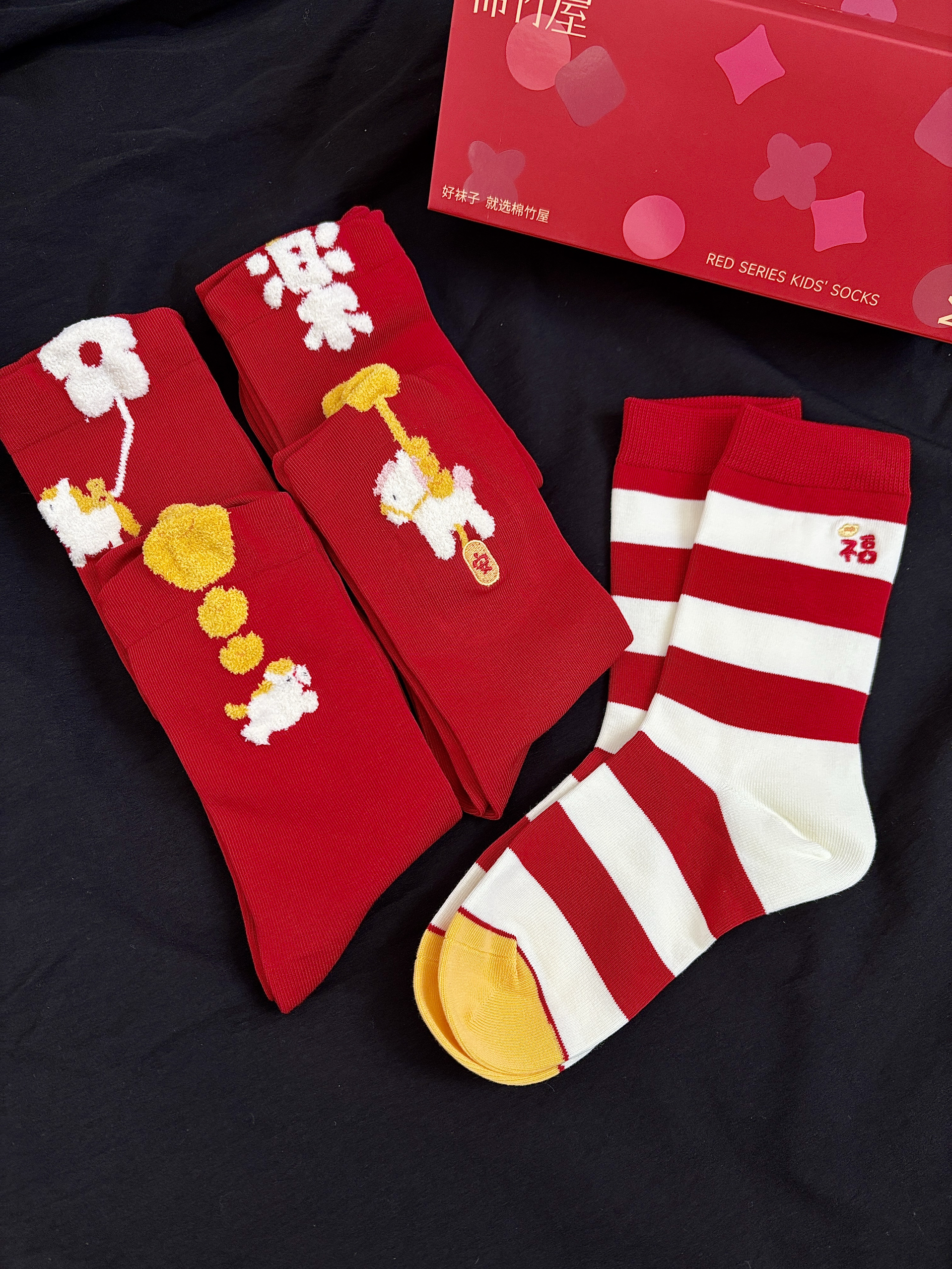 我挖到了这个红袜大人小朋友都可以穿! 尺码很多新年的时候全家人一人一双好有氛围感的 立体小木马、小花刺绣可可爱爱软乎乎 袜子是新疆长绒棉 ju 厚实冬天穿到脚脖子好暖😌 无骨袜头不顶脚趾细节做的狠不错 洗两次也没掉色起球环保染色安心👍 还有礼盒包装自留送礼都合适 我真的是太会挖宝啦~