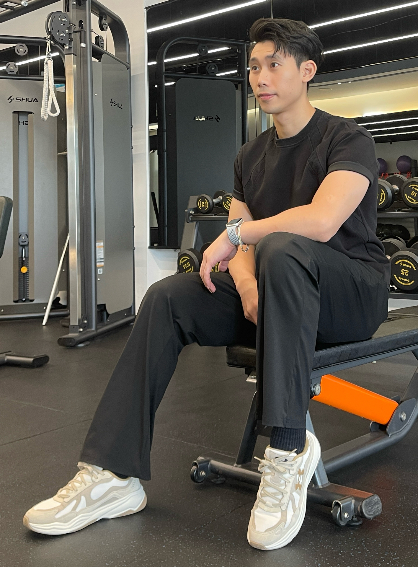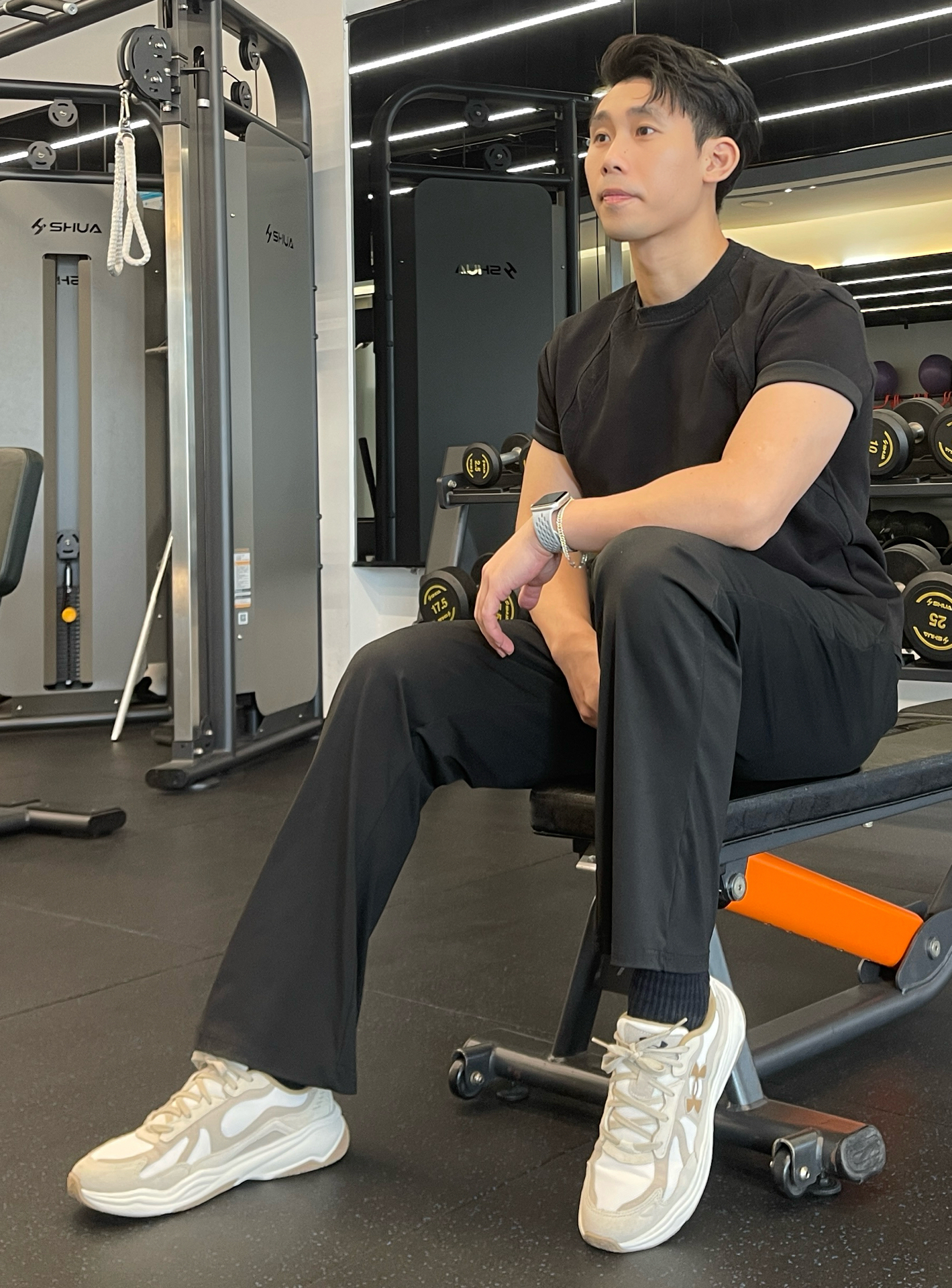 今天训练穿了一双新鞋 上脚的第一感觉就是比较柔软 鞋底比较硬就是了 脚感还是不错的 用来做简单力量训练也不错的 身高180|体重76|鞋码43 👕:编织短袖 👖:纯棉长裤 👟:UNDER ARMOUR ASPIRE #我的城市这么穿 #交出你的鞋靴链接 #力量训练鞋 #健身鞋穿搭 #宝藏运动感鞋子分享