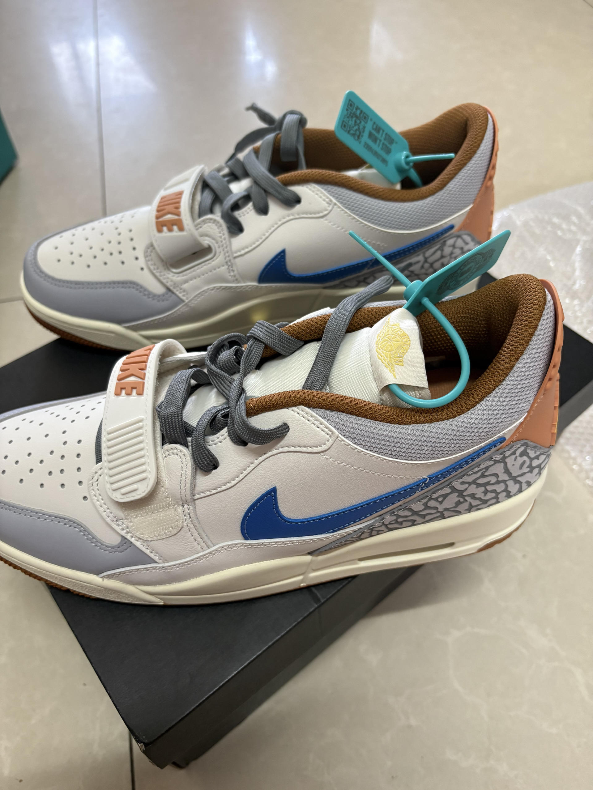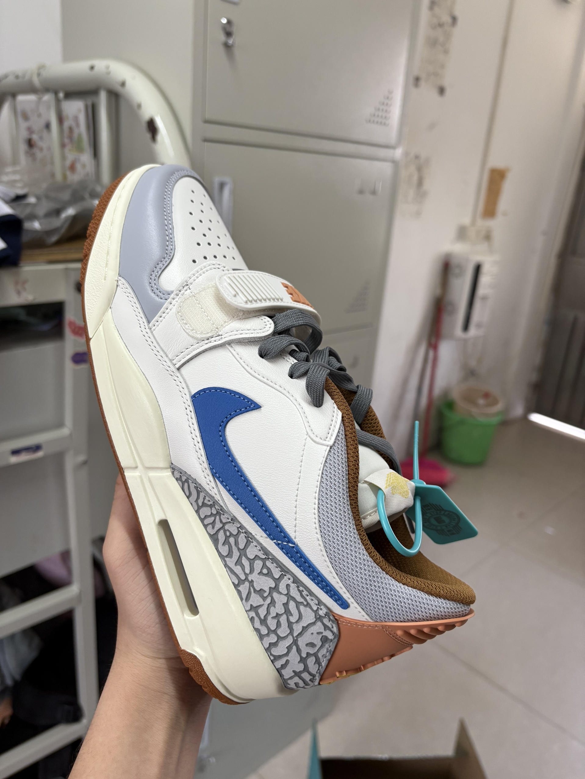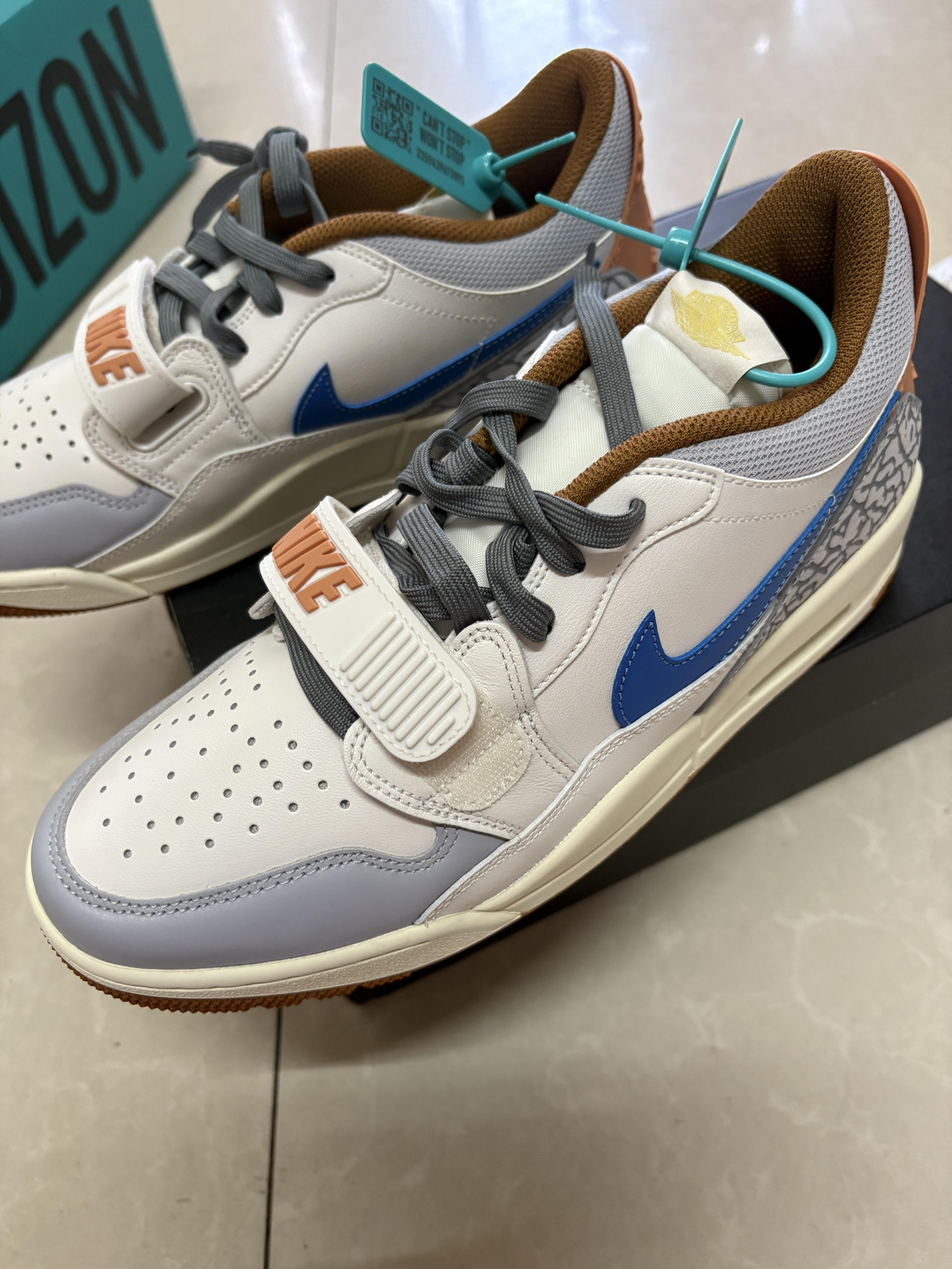 入手这双米中灰的Jordan Legacy 312 Low有段时间了,说说真实上脚感受吧😐 首先是脚感,鞋身的皮质摸着手感还不错,整体重量不算沉,日常走路不会觉得累。灰调的配色确实百搭,配牛仔裤、运动裤都不违和,鞋侧的爆裂纹细节也挺有辨识度的。 但缺点也很明显,鞋头的皮质偏硬,刚上脚那几天磨脚趾,得穿厚袜子过渡一下🧦。另外鞋码有点偏窄,脚宽的朋友建议选大半码,不然前掌会挤得慌。还有魔术贴的设计...
