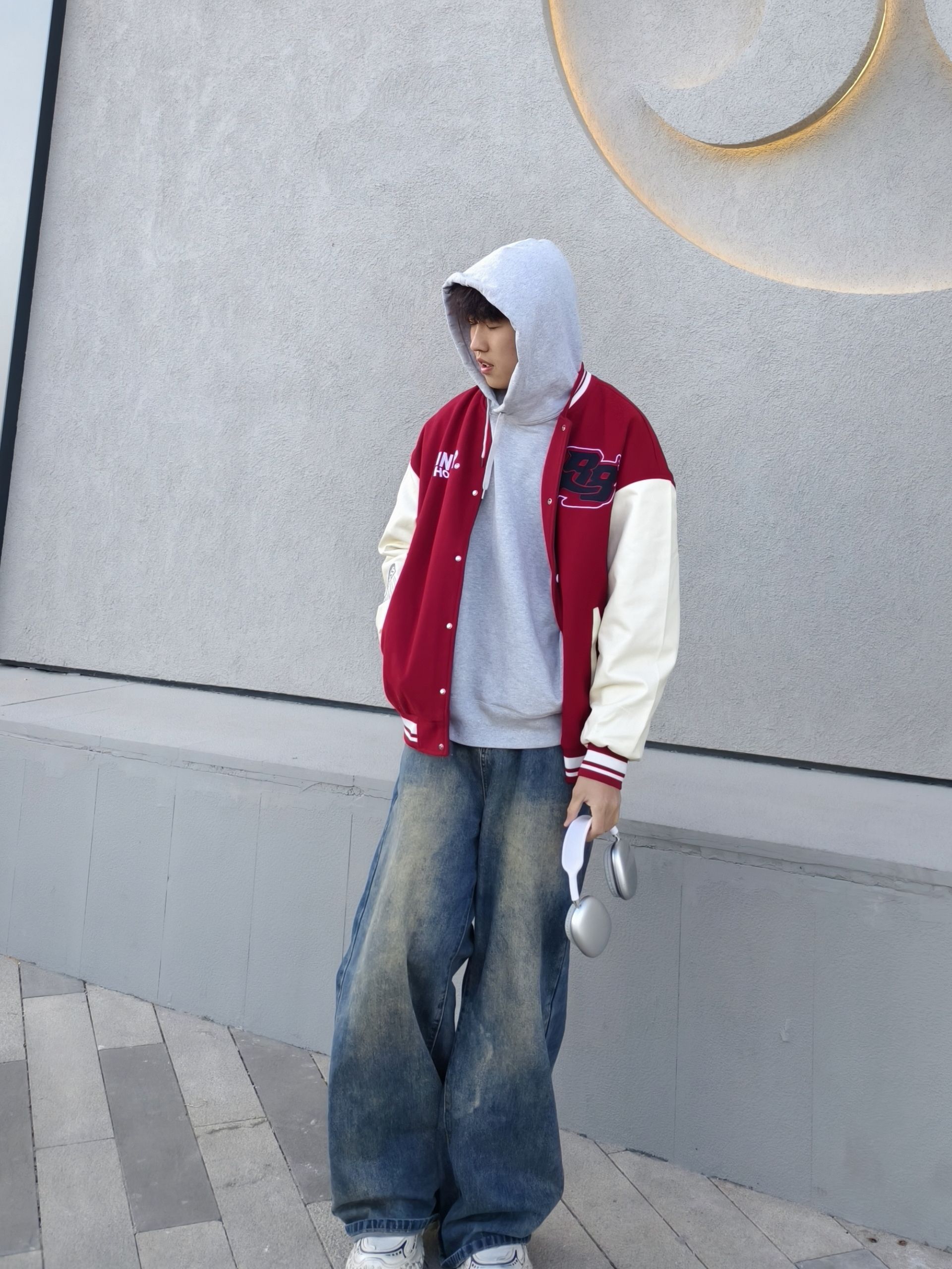 #年度穿搭关键词 复古美式叠穿 2025的穿搭记忆,被这件红棕棒球夹克承包了✨ 叠穿浅灰连帽卫衣弱化棒球服的硬朗感,搭配做旧阔腿牛仔裤,不管是街头随手拍还是日常出门,舒适度和时髦度都在线,这组LOOK也成了我今年出镜率最高的穿搭,把美式复古的松弛感焊在身上~