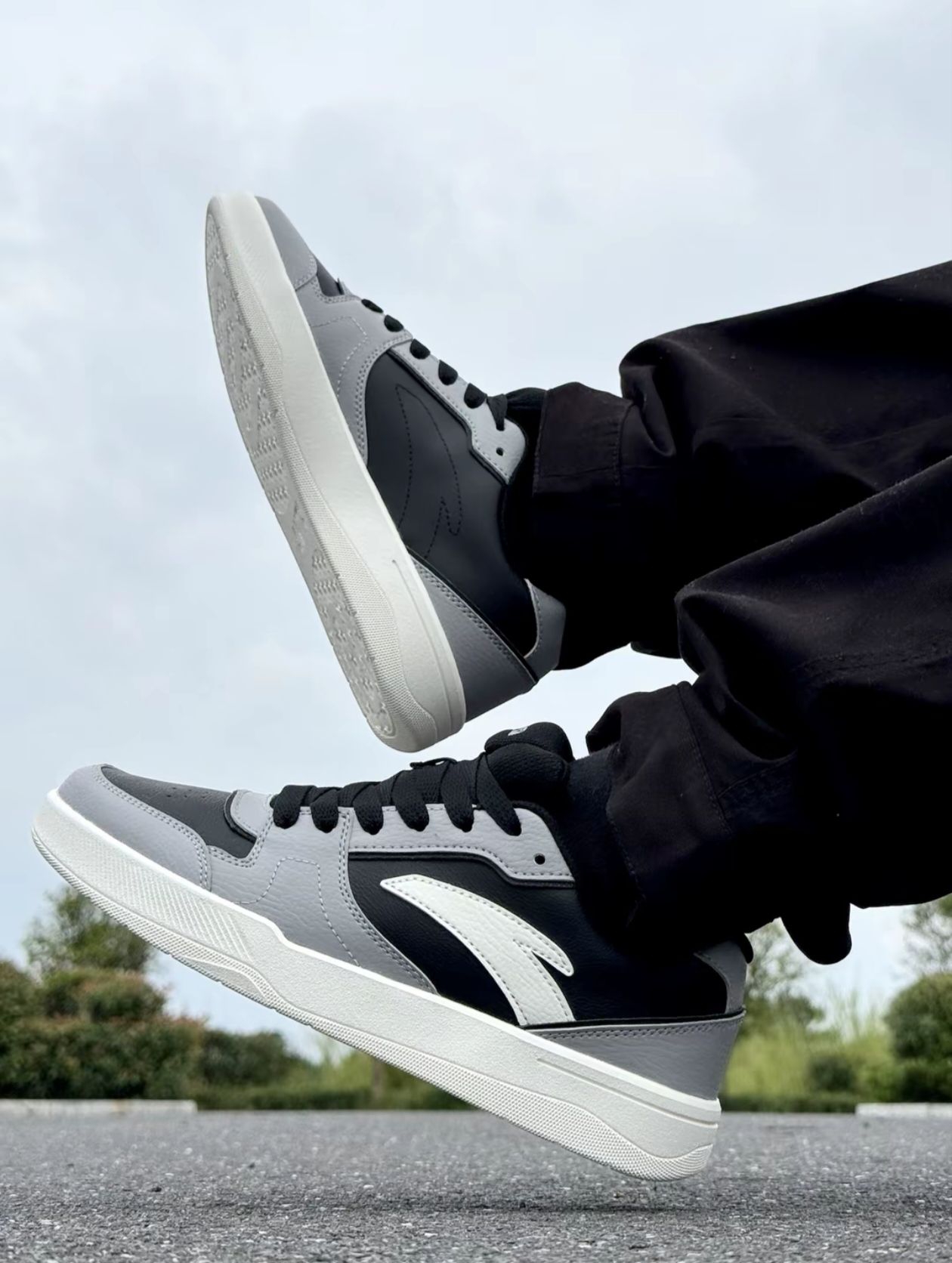 家人们,我刚拿到这双安踏陆冲板鞋的时候,就觉得这个配色很有“影子灰”的味道~ 黑白灰的搭配低调简约得很,日常不管是搭配休闲裤、牛仔裤,还是短裤和长裤,都不容易出错,怎么搭都好看!属于是长期主义单品了~ 皮质鞋面的质感挺不错的,挺适合接下来秋冬季穿~还有这脚感,我上脚石感觉挺轻便舒适的,最关键的是,它才一百出头,性价比很高!