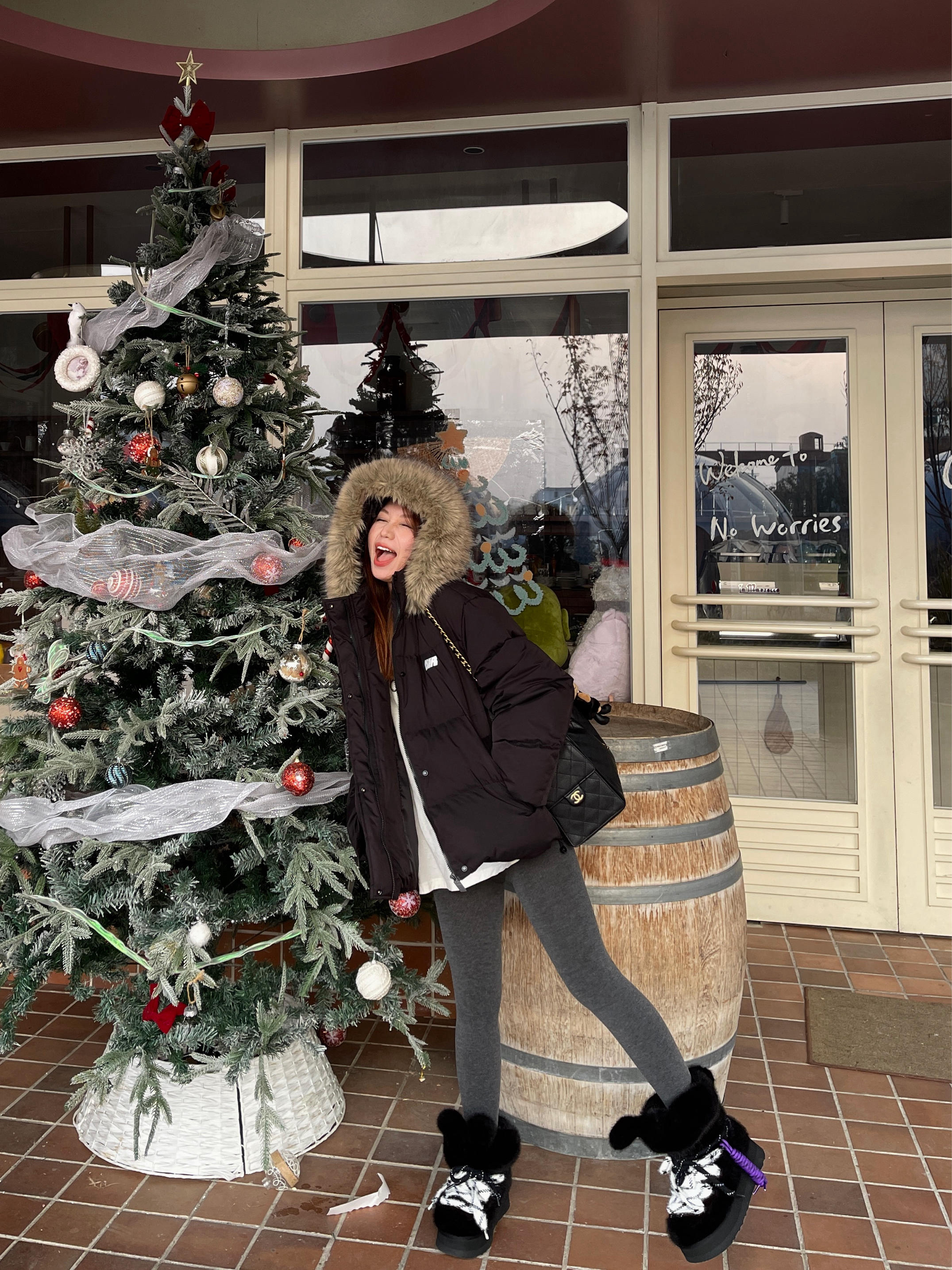 天气越来越冷了! 室外逛街羽绒服请焊在身上~ 冬天的穿搭,可以简单点 但不能不时髦🫡🫡 看我的超大毛毛领羽绒服,显瘦又保暖,黑色真的很百搭 搭配我的新鞋子👟,谁还不是个可爱“兔”🐰 厚底增高 而且超级暖,冬天少不了的雪地靴,兔耳朵还可以拆卸,能可爱也能酷🆒