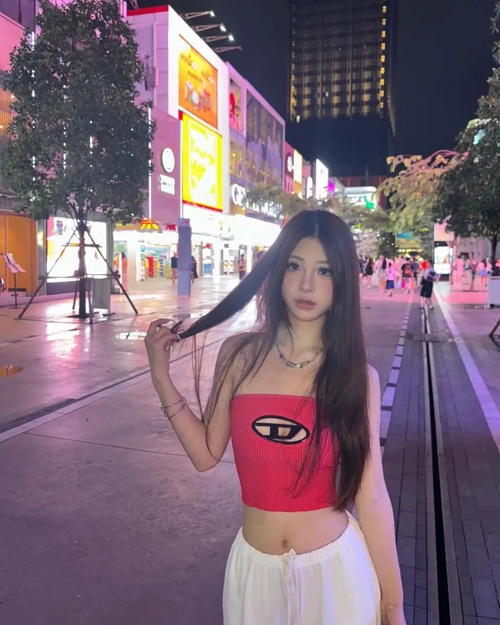 这件亮红抹胸自带吸睛buff,搭配Jeep牧马lifestyle的宽松阔腿裤,做旧水洗面料摸起来质感拉满,松紧腰抽绳+垂坠版型瞬间撑满随性气场。 街头霓虹一衬,复古又不羁的潮酷范儿直接溢出屏幕,不管是夜逛商圈还是出街炸场,轻松穿出美式高街的松弛时髦感