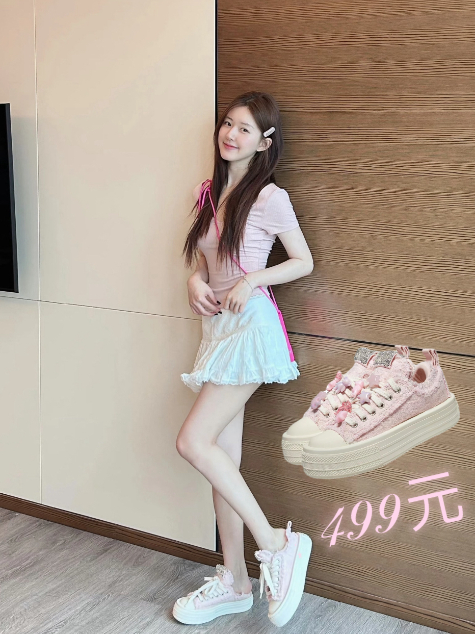 露丝同款厚底鞋也太好穿啦 粉粉嫩嫩的配色真的很好看 鞋带上的小熊配饰也很萌 鞋子整体穿起来很舒服 增高的设计也很让人喜欢