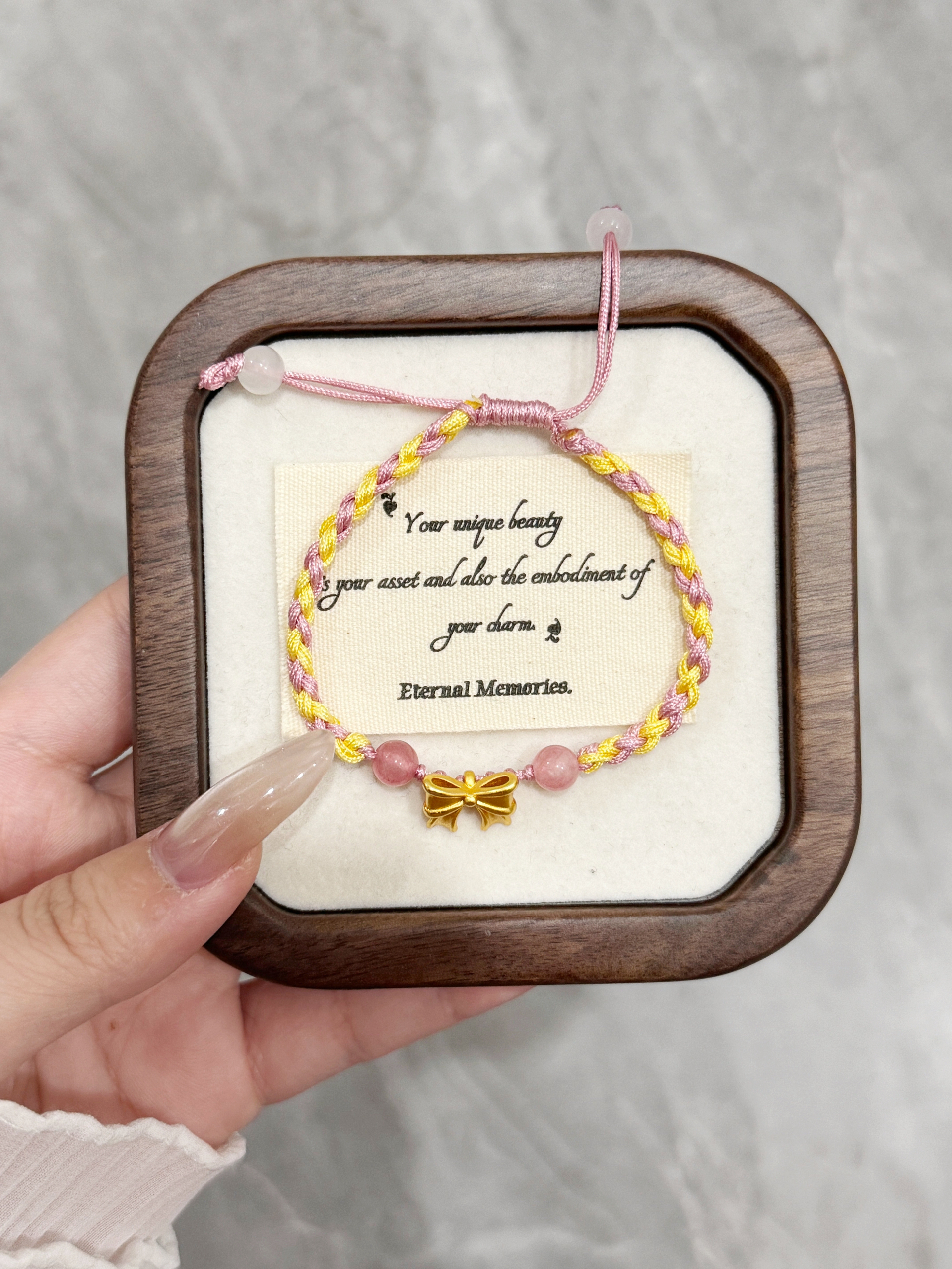 本篇笔记关联了老凤祥 在逃公主蝴蝶结纪念日礼物足金一口价手绳 YMA1599240327A 粉色、中国黄金 幸运守护四叶草足金手链 金色等商品,为用户提供真实的使用体验和购买参考。