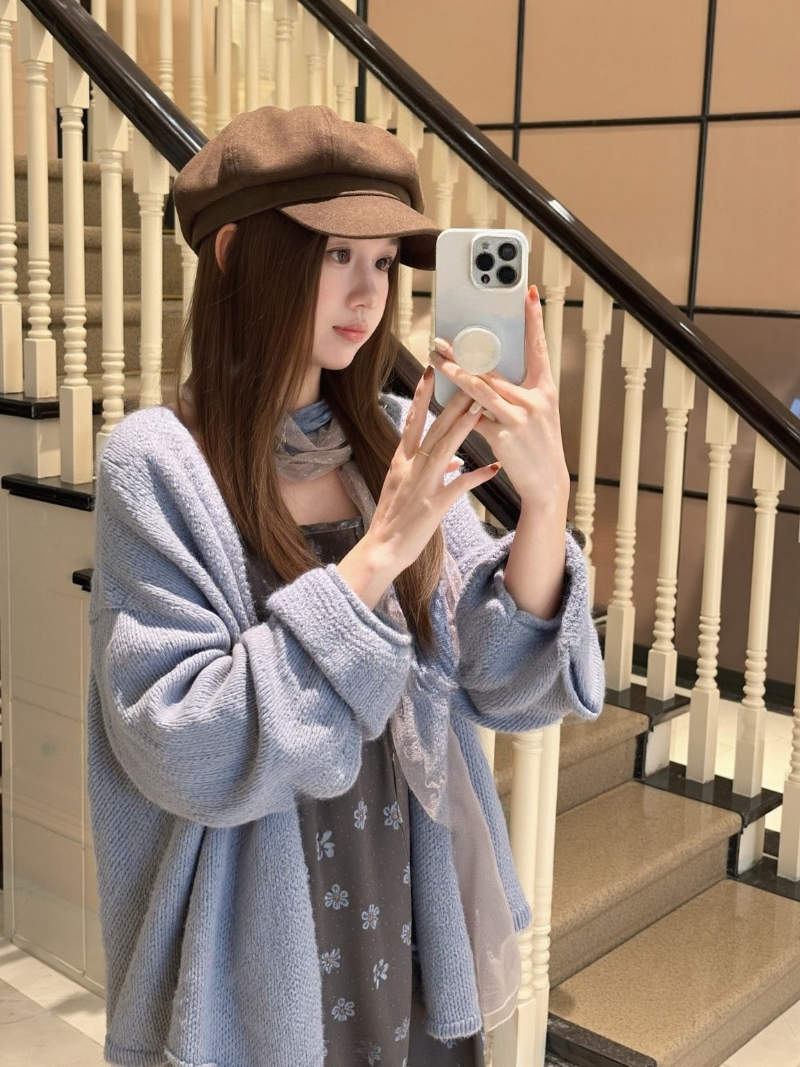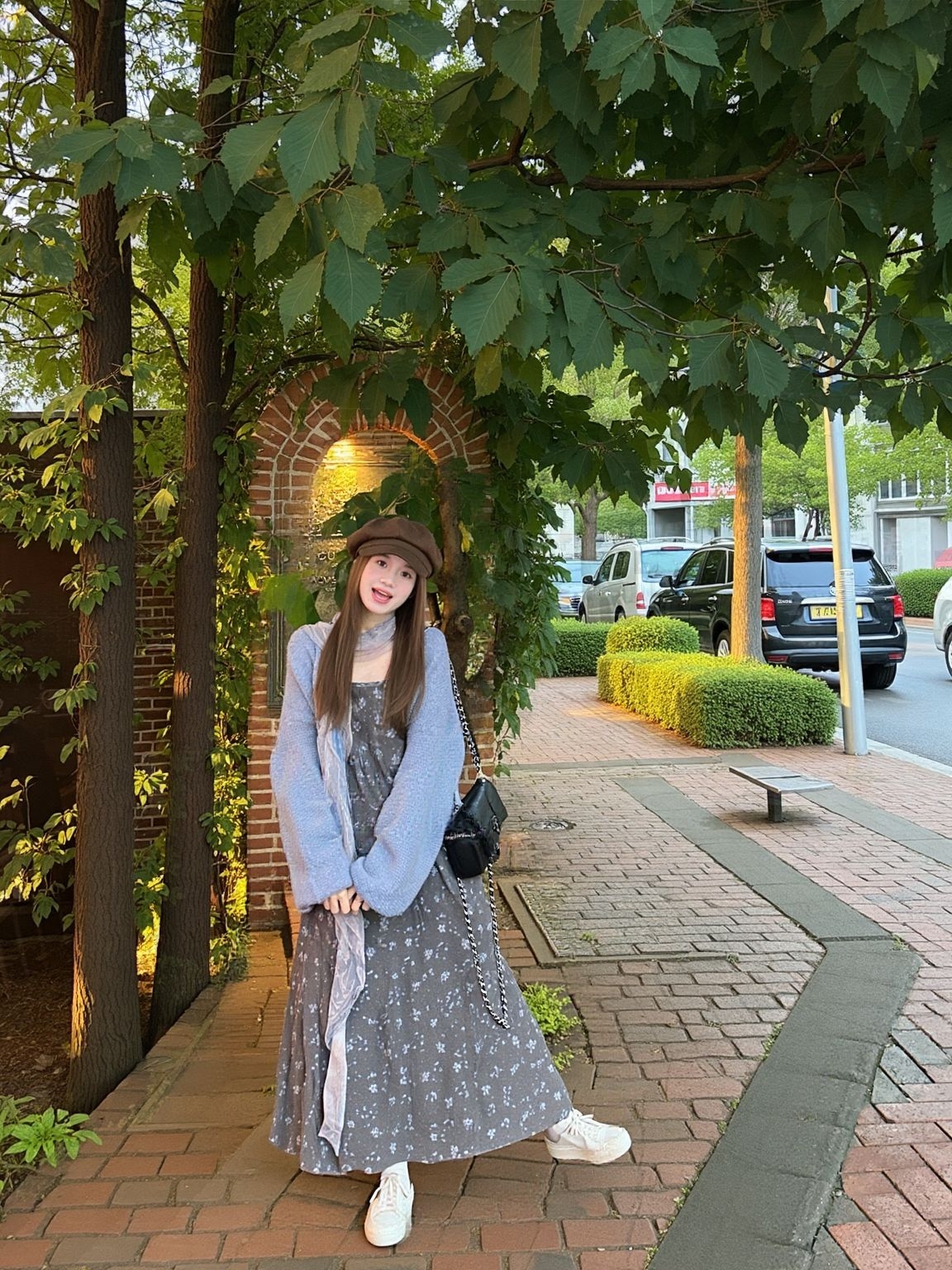 ——软乎乎的开衫+碎花裙,配上贝雷帽,,楼梯间自拍、路边拱门随手拍、📷不管是街边还是咖啡店☕,随手拍都自带滤镜,这慵懒感谁穿谁美! 秋天穿法已解锁~