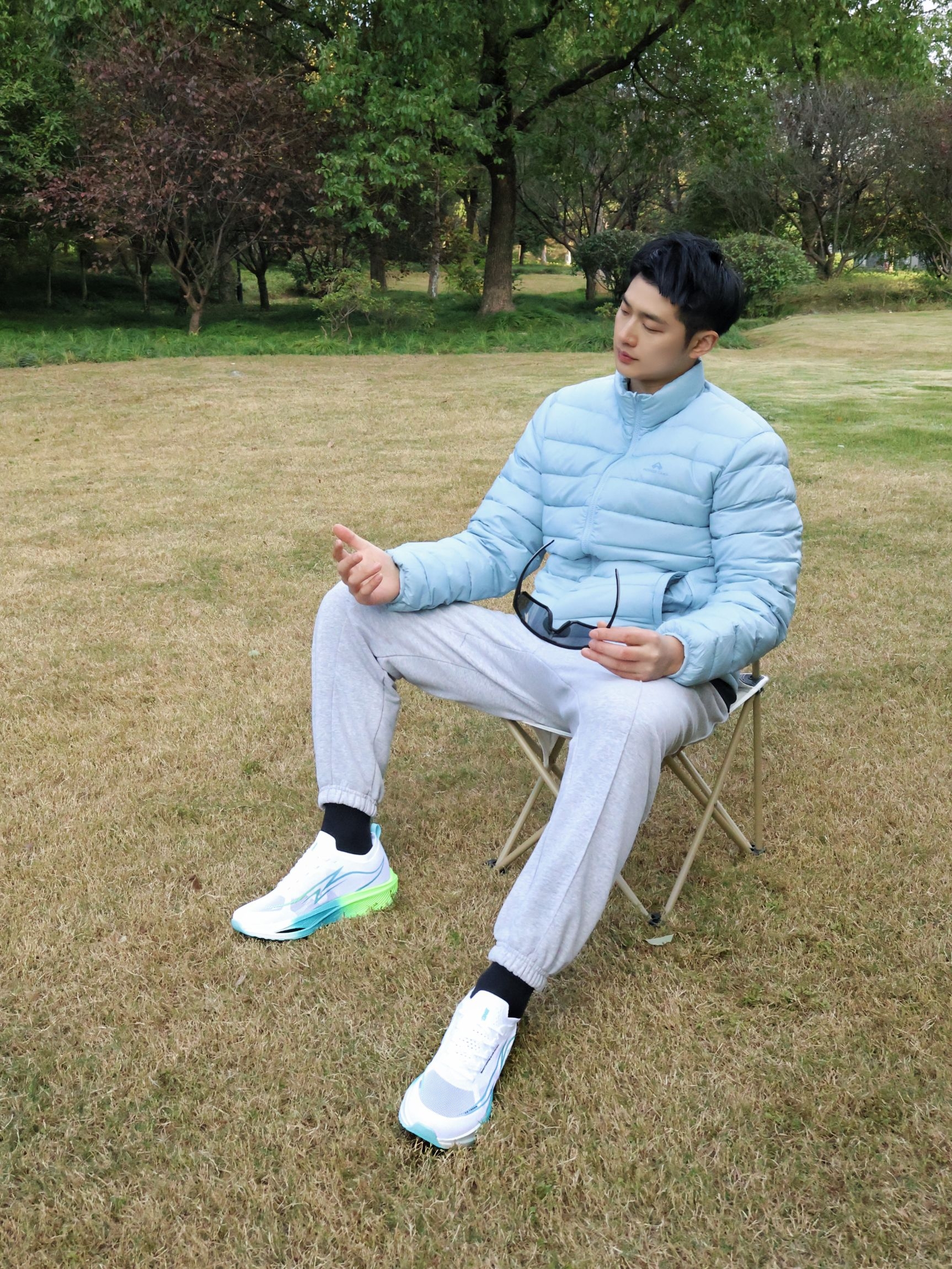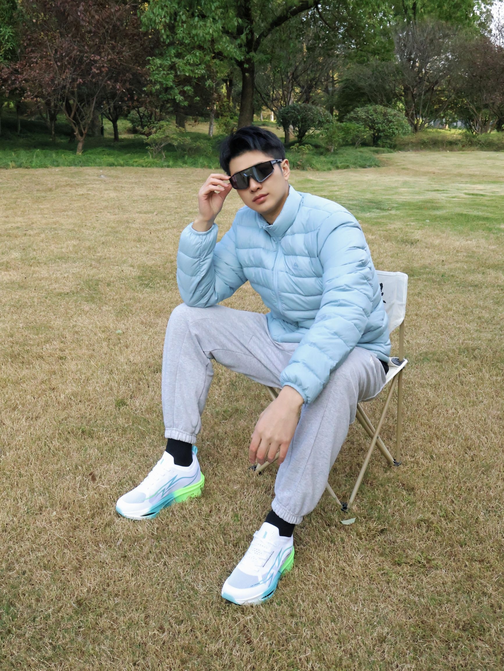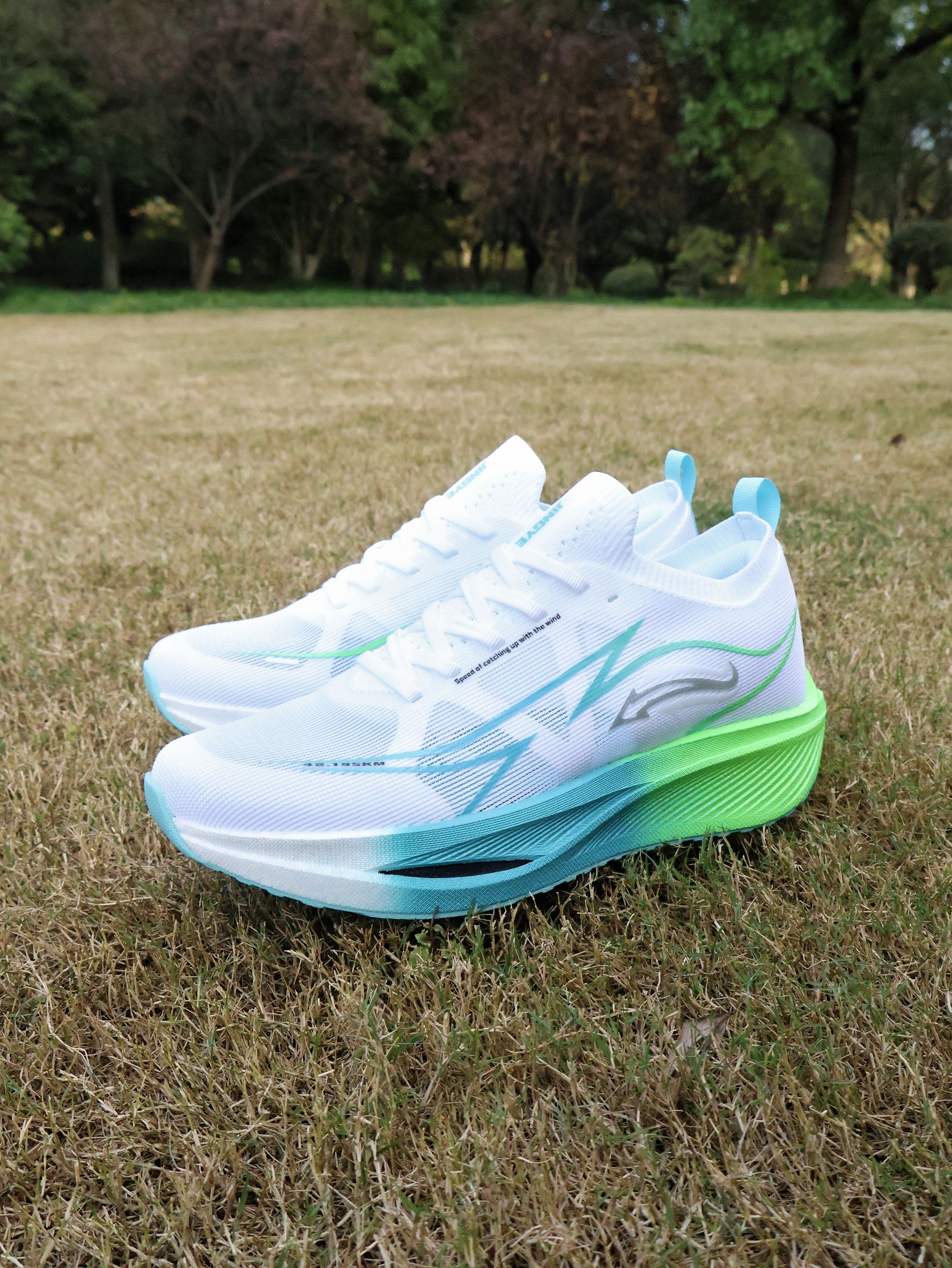 户外帅气的跑鞋|运动怎么能少了它~ 冬日户外运动跑鞋是我的好搭子~ 今天在公园户外活动下~ 上身简约排骨羽绒服~ 干净配色很帅气~ 搭配简约束脚卫裤~ 自竞也 舒适碳板跑鞋~鞋子的版型是很有型的~ 白蓝绿的拼色很帅气~ 整体的回弹也是很好的~ 适合冬日的户外和运动~ 尺码可以正常选码哦~不偏码哈~ 冬日户外跑鞋就穿它辣~