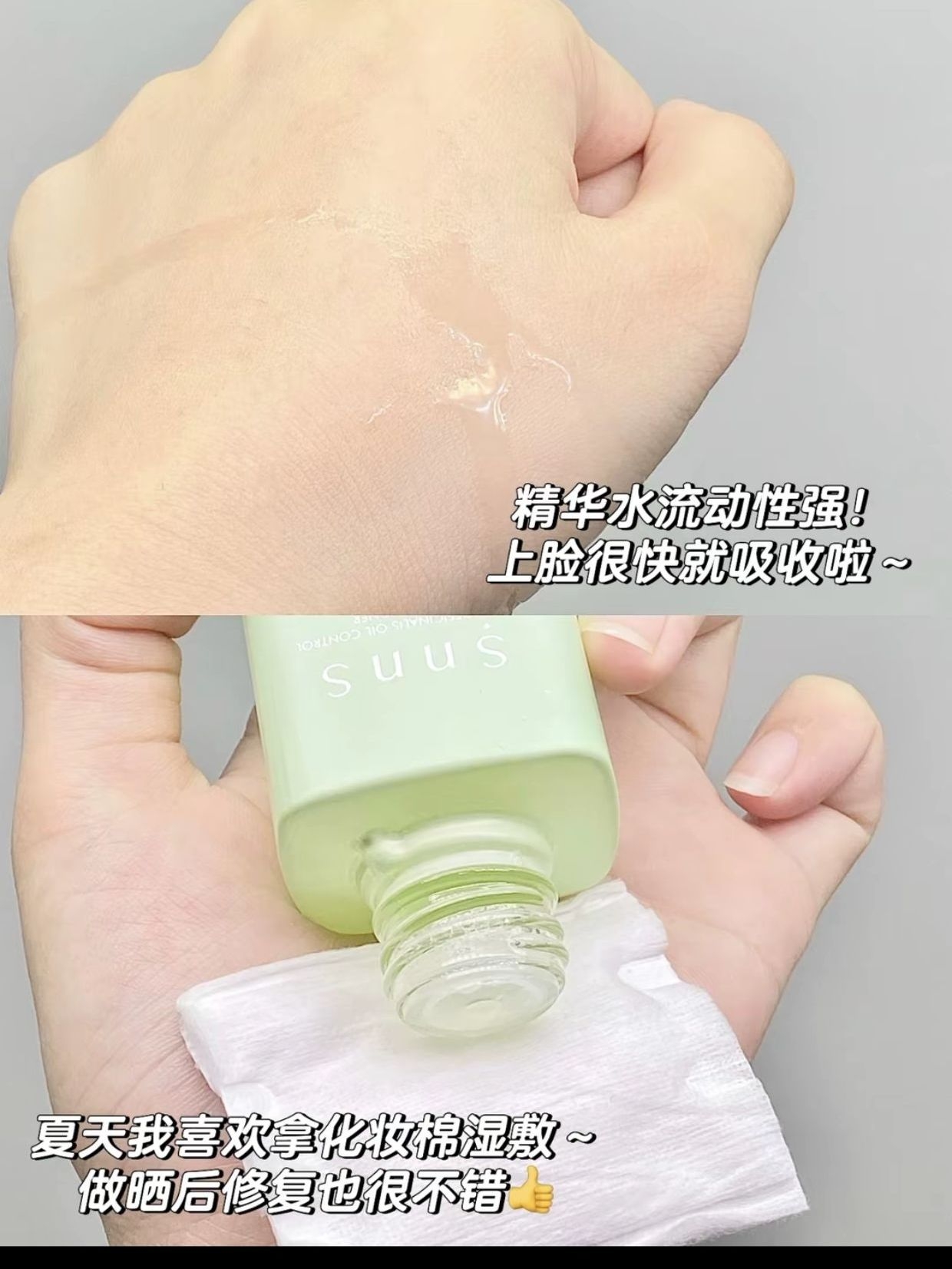 谁懂啊!大油皮一年365天天天油光满面的痛苦 最近入手了snns层孔菌水乳 控油修护效果还是不错的 用完一套直接水油平衡了,痘痘闭口都不咋爱长了 精华水的流动性强,上脸很快就吸收了 我经常用来湿敷,做晒后修复也很不错~ 乳液是白色啫喱质地,一抹化水,质地很清爽,上脸很快就吸收啦~ 想要控油修护的学生党姐妹尊嘟可以去试试~