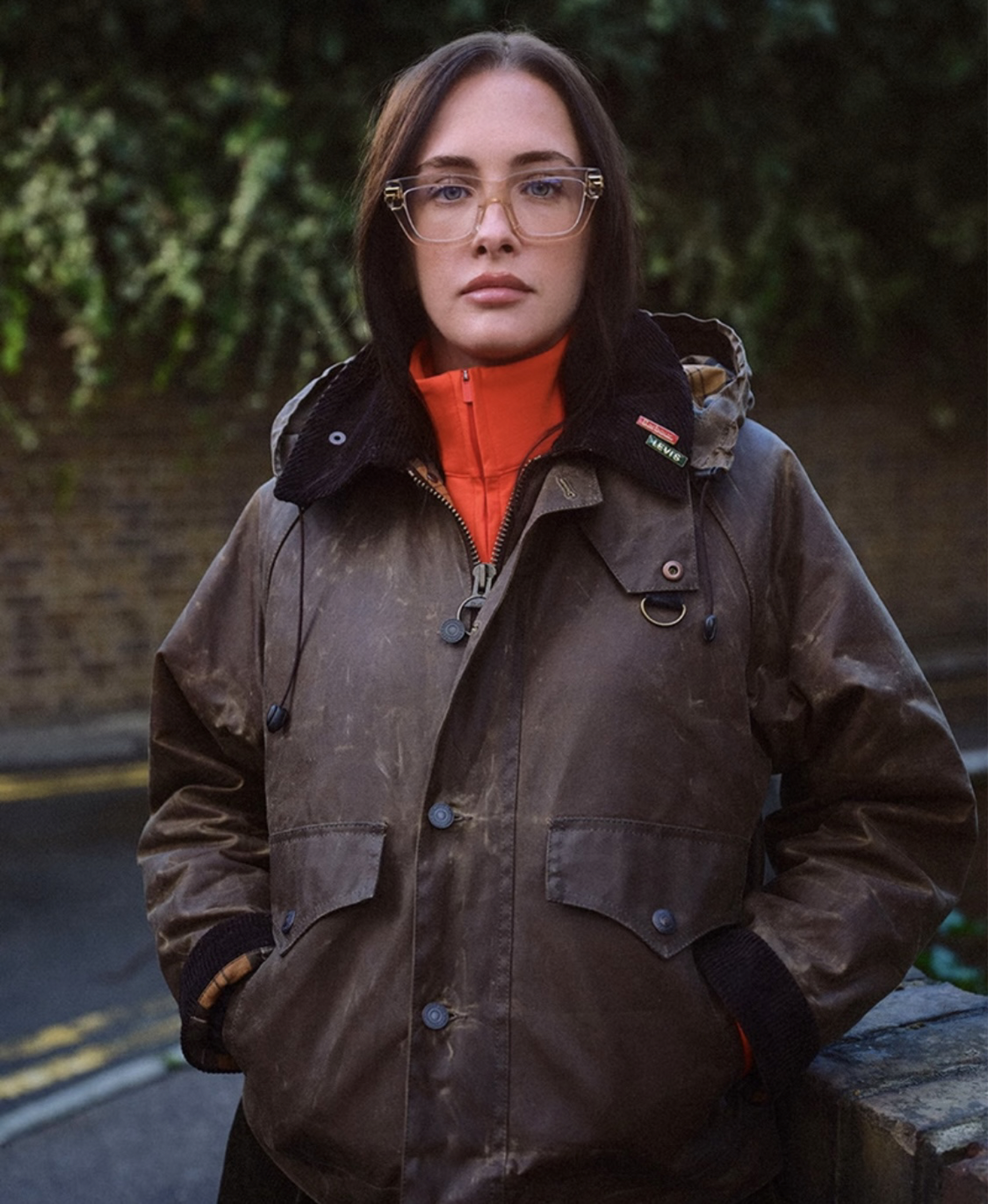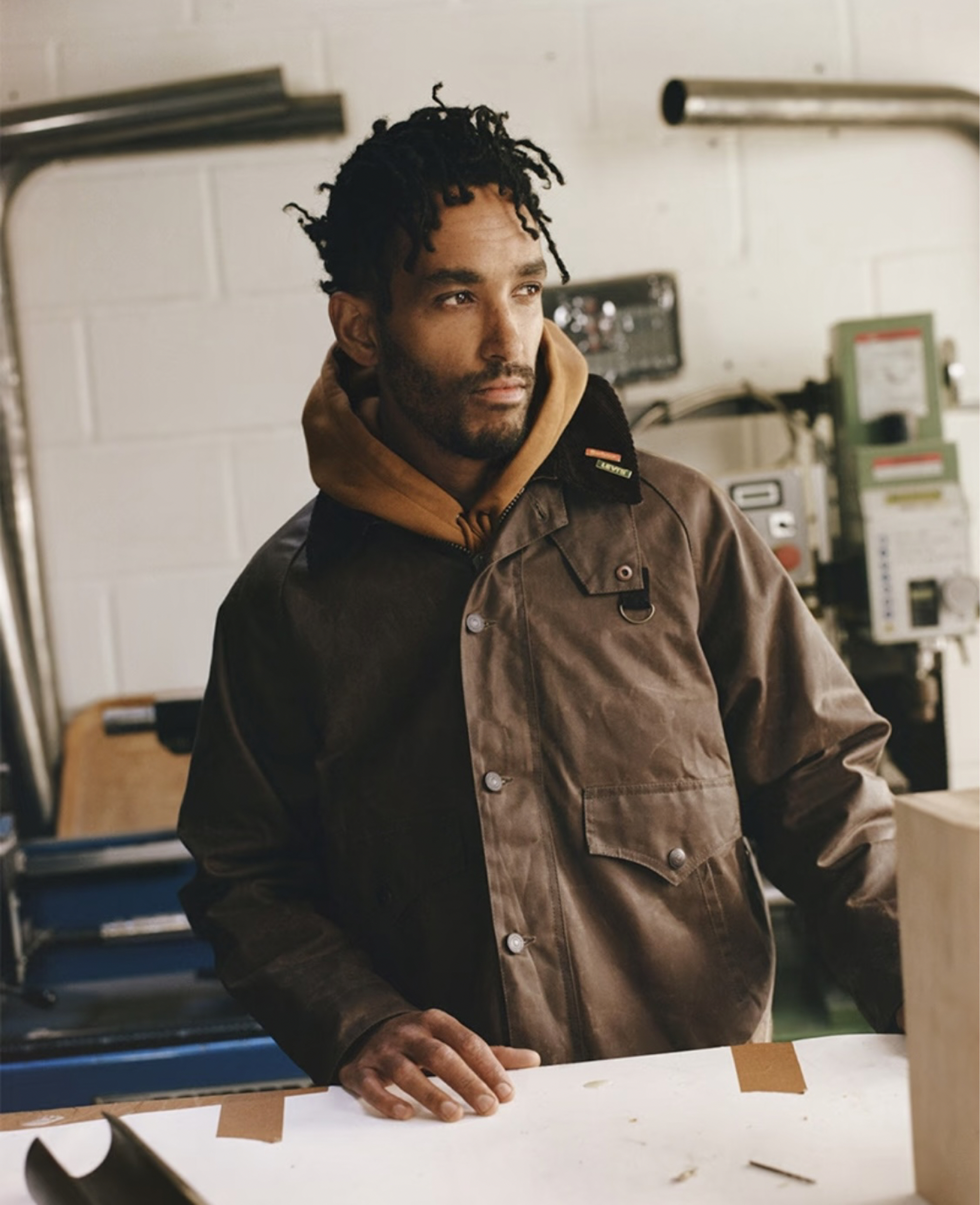 Barbour的经典夹克款式 Spey和 Bedale,现糅合了源自 Levi’s牛仔夹克的卡车司机式袖口或三针缝线设计,展现出别样风貌。此外,还有一系列名为 “Re-Loved”的服装,将复古 Levi's牛仔布与 Barbour的旧蜡染面料拼接,旨在突显两种面料各自优雅的岁月痕迹。