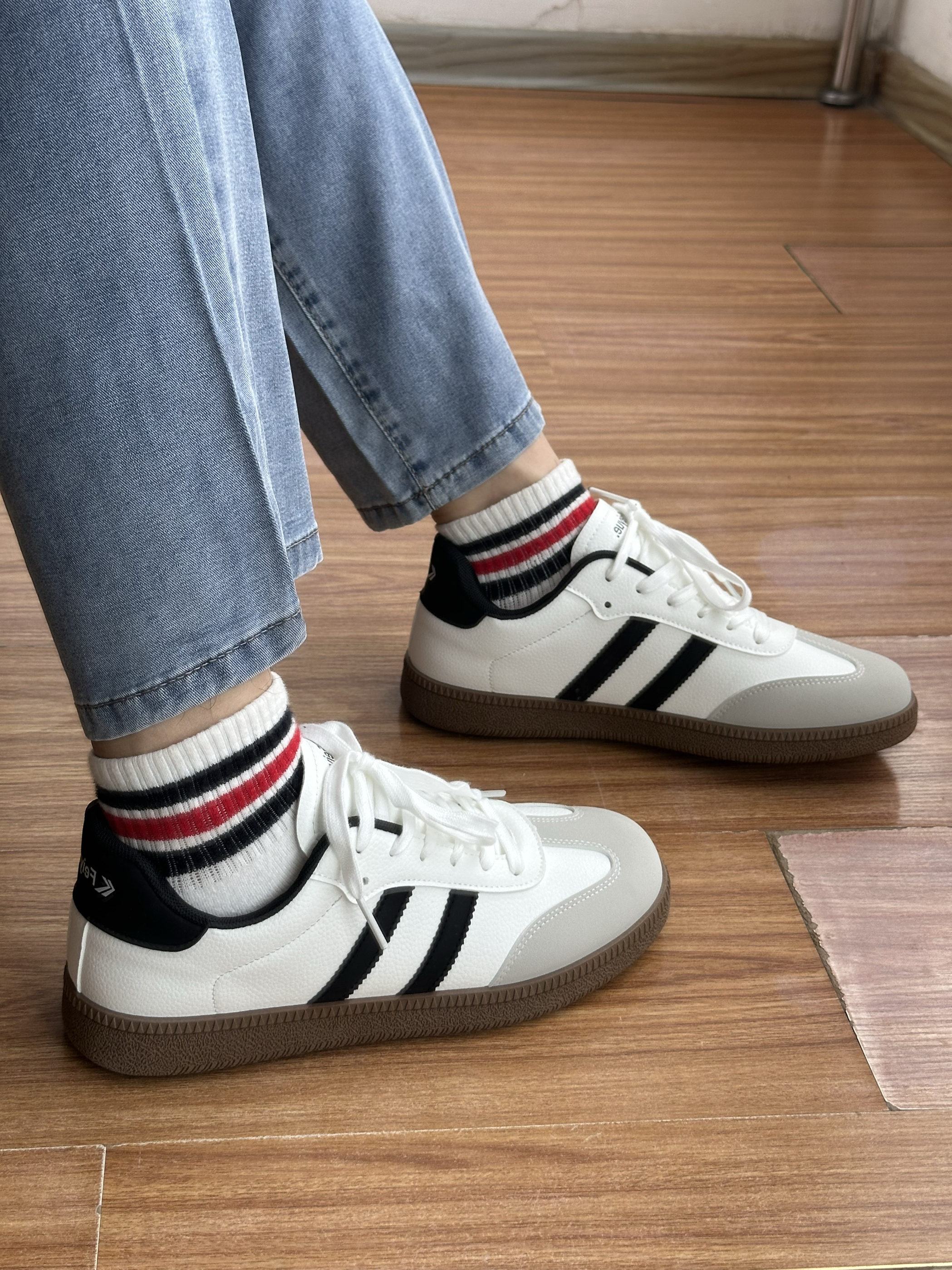 鞋子脚感是偏硬的那种 但包裹性还不错✓ 脚在里面不会晃来晃去 侧面看线条挺流畅 上脚不费力的酷👌🏻