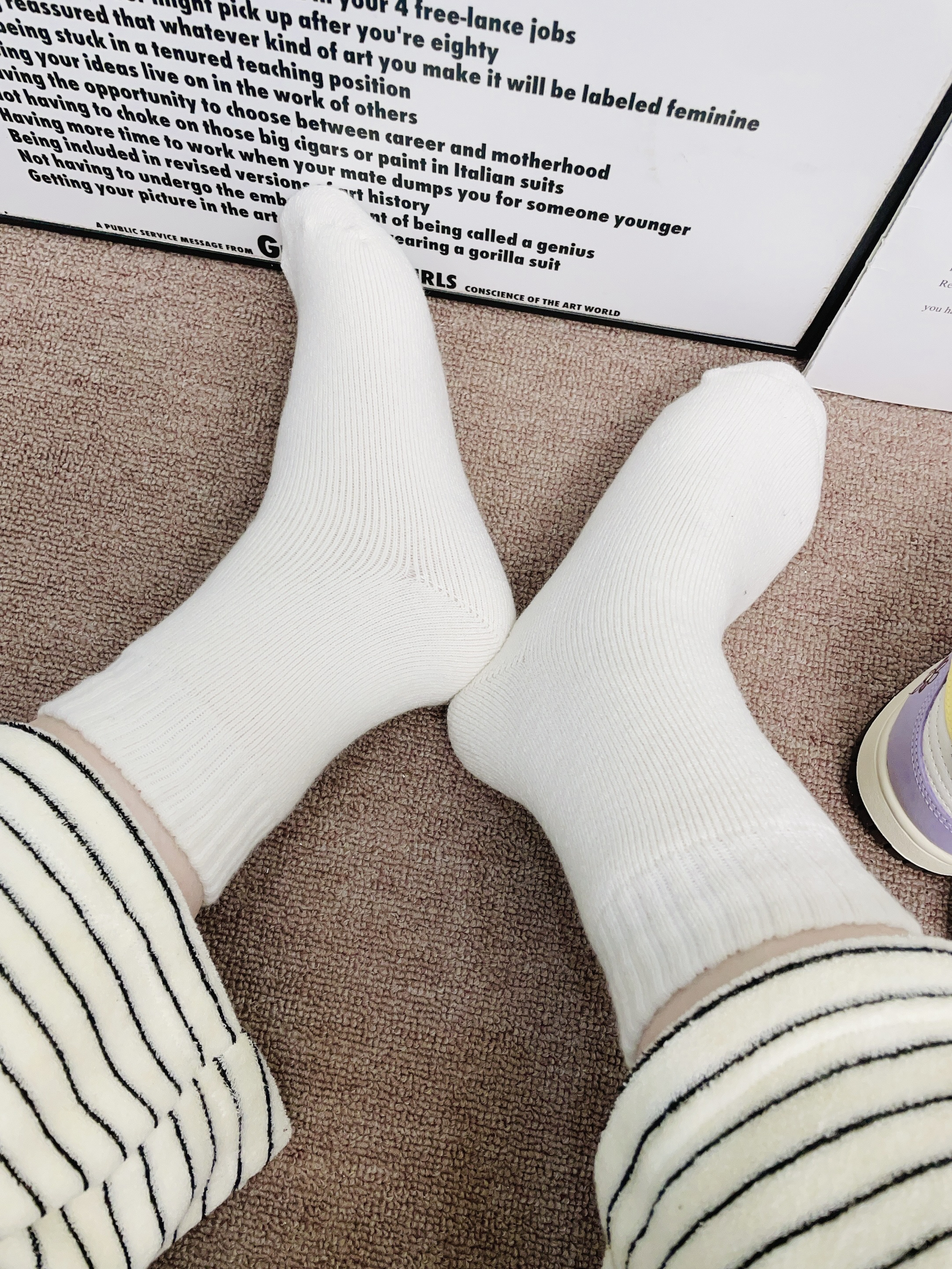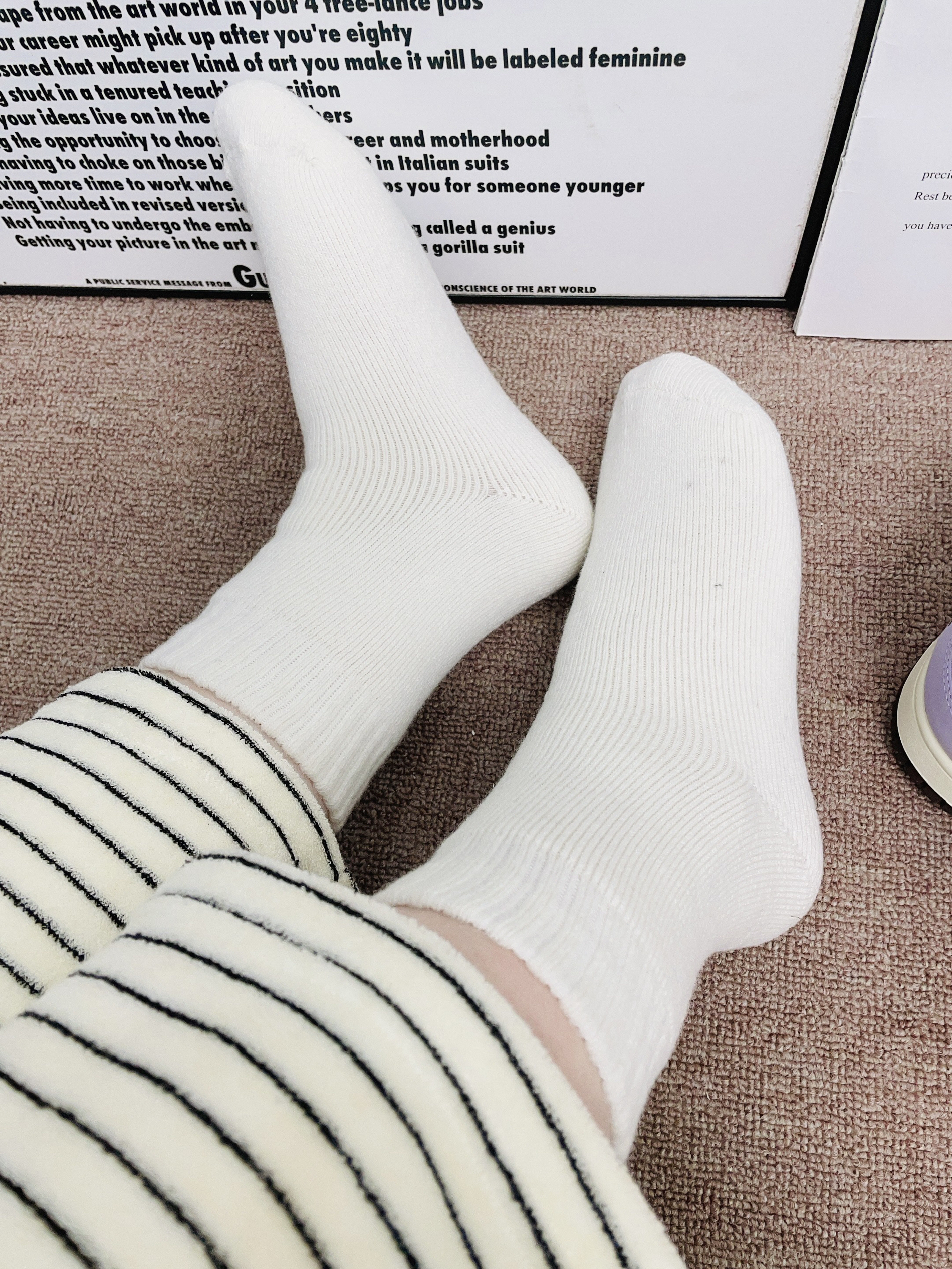 十二月份啦年末了又要开始新的一年 加上过年要回老家比较冷 我给自己安排了新袜子穿 卡拉美拉这款厚袜子配色简约干净蛮好看的 我用手摸着面料感觉hin柔软又蛮厚实的 里面都是毛茸茸的 上脚我穿着感觉蛮舒适又暖和 不用担心下雪天会冻到jio 在家随便搭鞋子都可以的