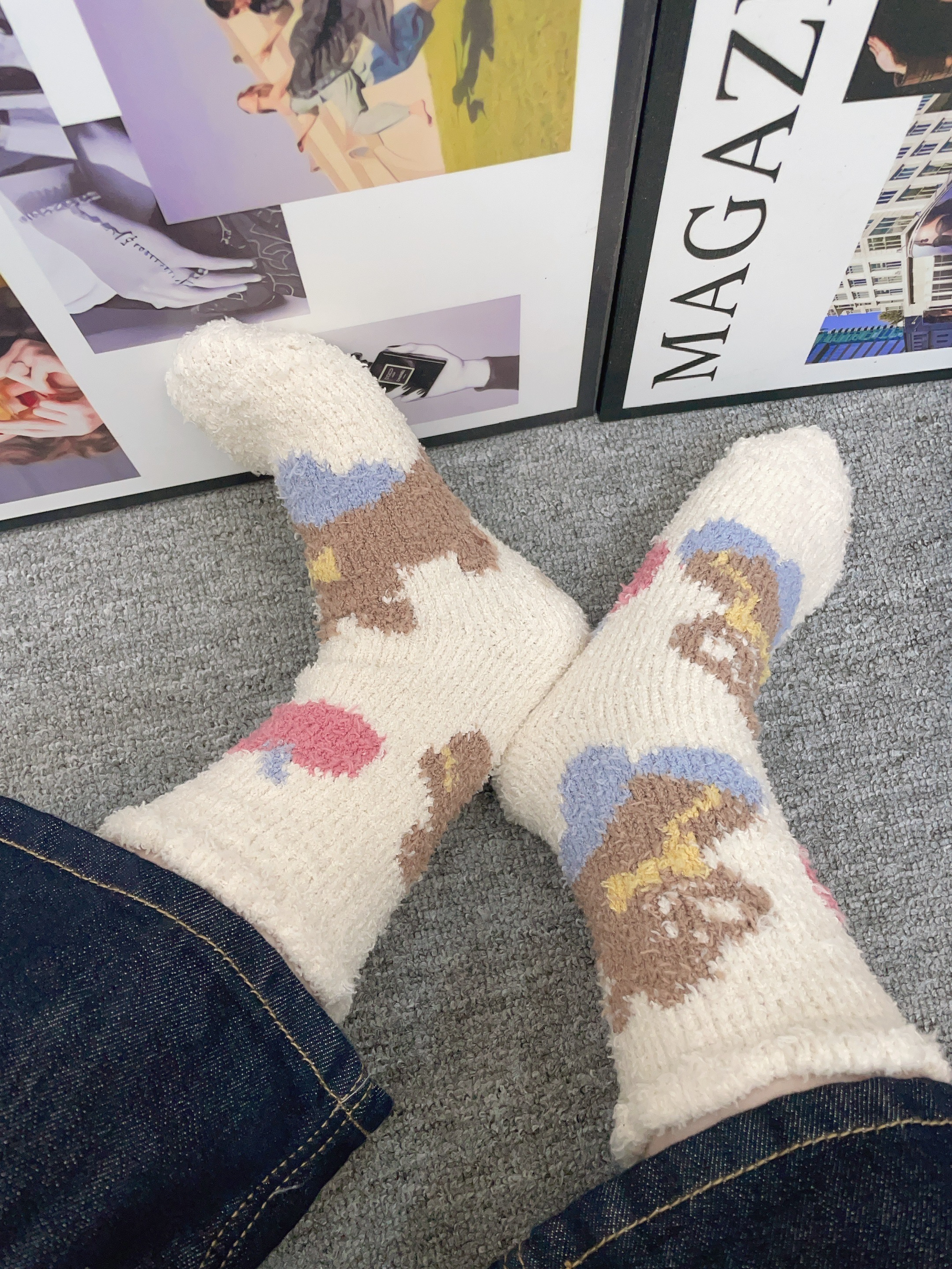 十二月份啦年末了又要开始新的一年 加上过年要回老家比较冷 我给自己安排了新袜子穿 派米这款厚袜子配色蛮好看的 我用手摸着面料感觉hin柔软又蛮厚实的 上脚我穿着感觉蛮舒适又暖和 不用担心下雪天会冻到jio 在家不穿鞋子都可以的