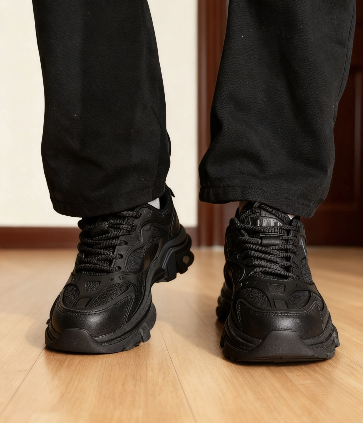 今天给大家分享JJeep 家的鞋子 这双黑色配色真的很帅啊 从鞋面到鞋底清一色纯黑,没有多余花哨设计 网布与皮革拼接的鞋面层次感十足, 侧边低调的细节点缀打破单调, 低帮版型穿上脚真的很舒服, 秋冬❄️搭配运动裤,工装裤,甚至配休闲西裤通勤也毫无违和感,鞋底也比较软,走路也不会硌脚疼 如果大家没有找到合适的黑鞋,这双一定一定考虑一下,上脚真的很舒服,包裹感也很nice