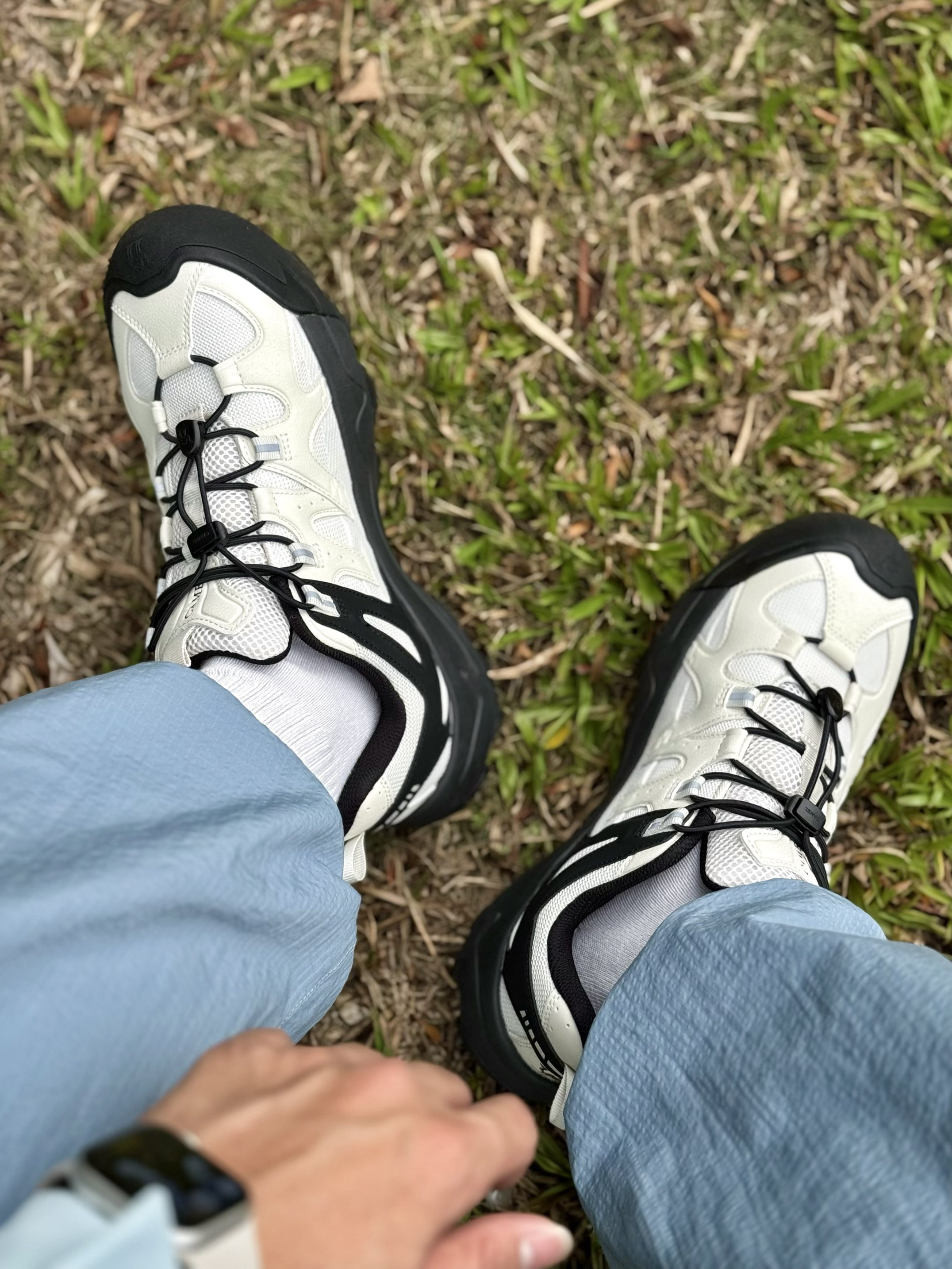 hey哥们!是我,阿b仔 分享一双黑白配色徒步鞋,我来简单聊聊.. 👟外观有点像熊猫🐼有木有,可可爱爱嘟,上脚还挺好看的。穿着舒服轻轻的,脚感我也挺喜欢的。一脚蹬我爱了,在户外都不用担心鞋带掉咯。 🦶🏻我是44的脚,这双穿的44码okk刚好合脚。 👔穿搭的话,我搭了“蓝色冲锋衣+蓝色伞兵裤”,山系户外风get,看起来还蛮小清新的咧。 💡清洁小tips,这双鞋子从户外回到家里后我会清洁下,鞋面用的是...