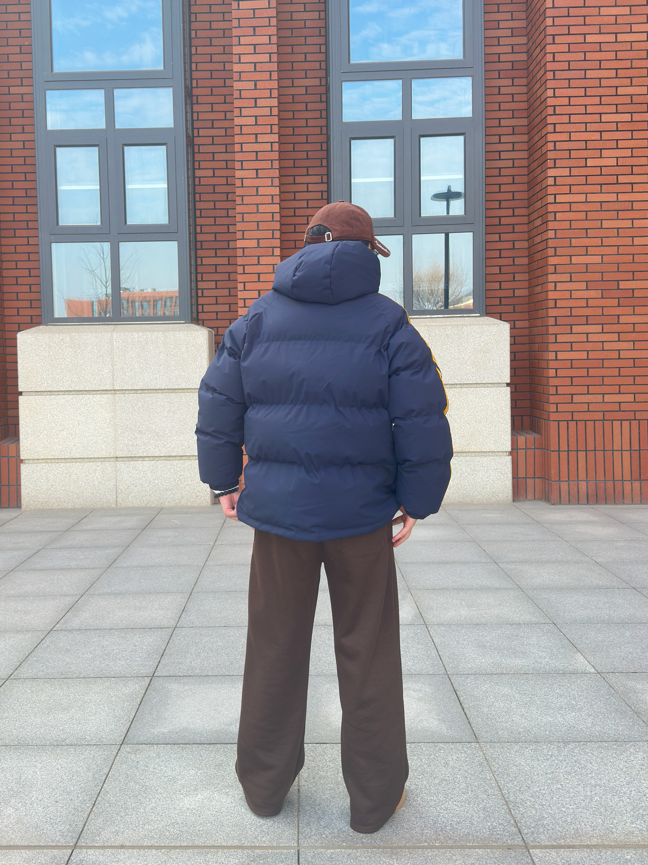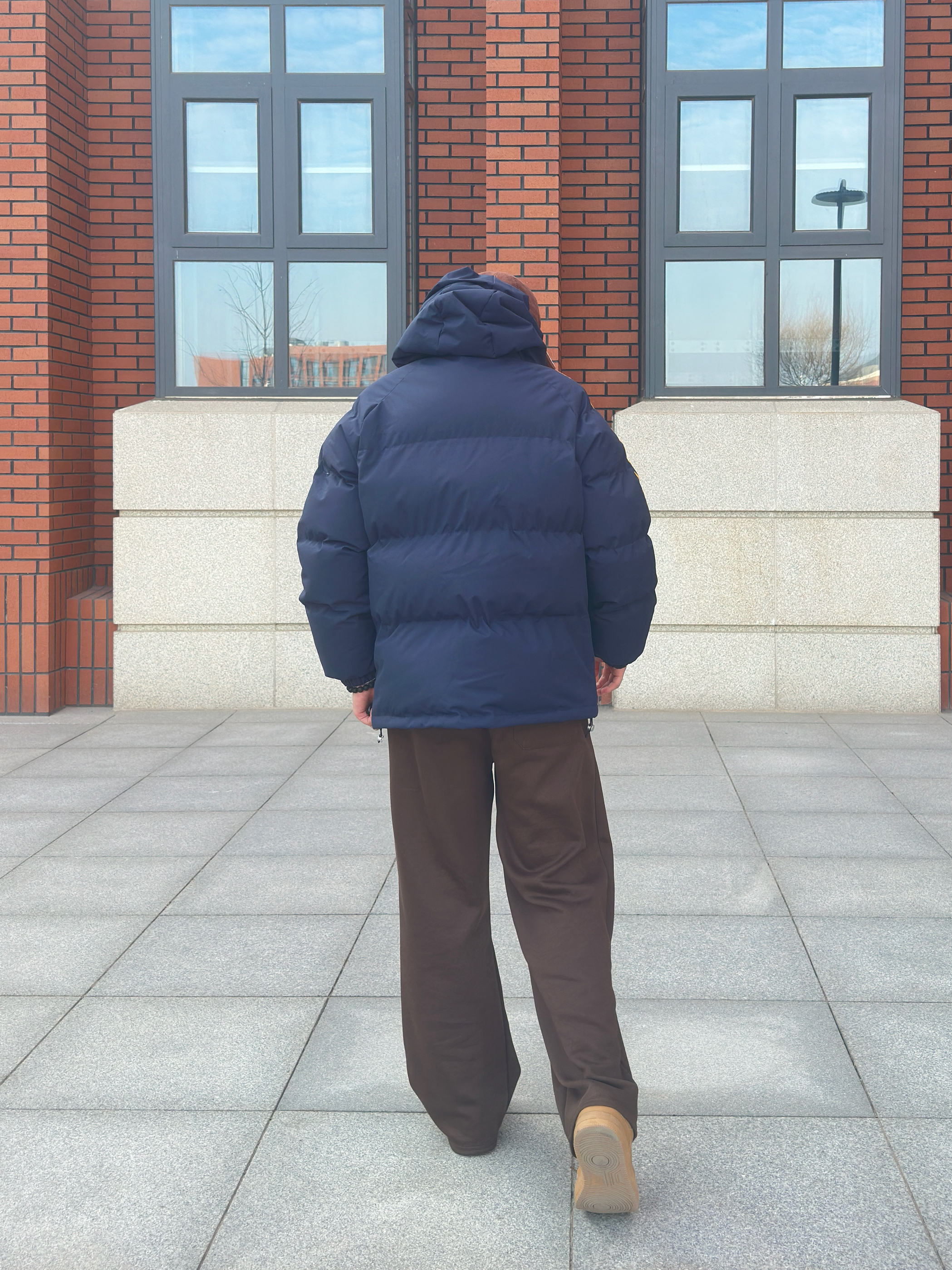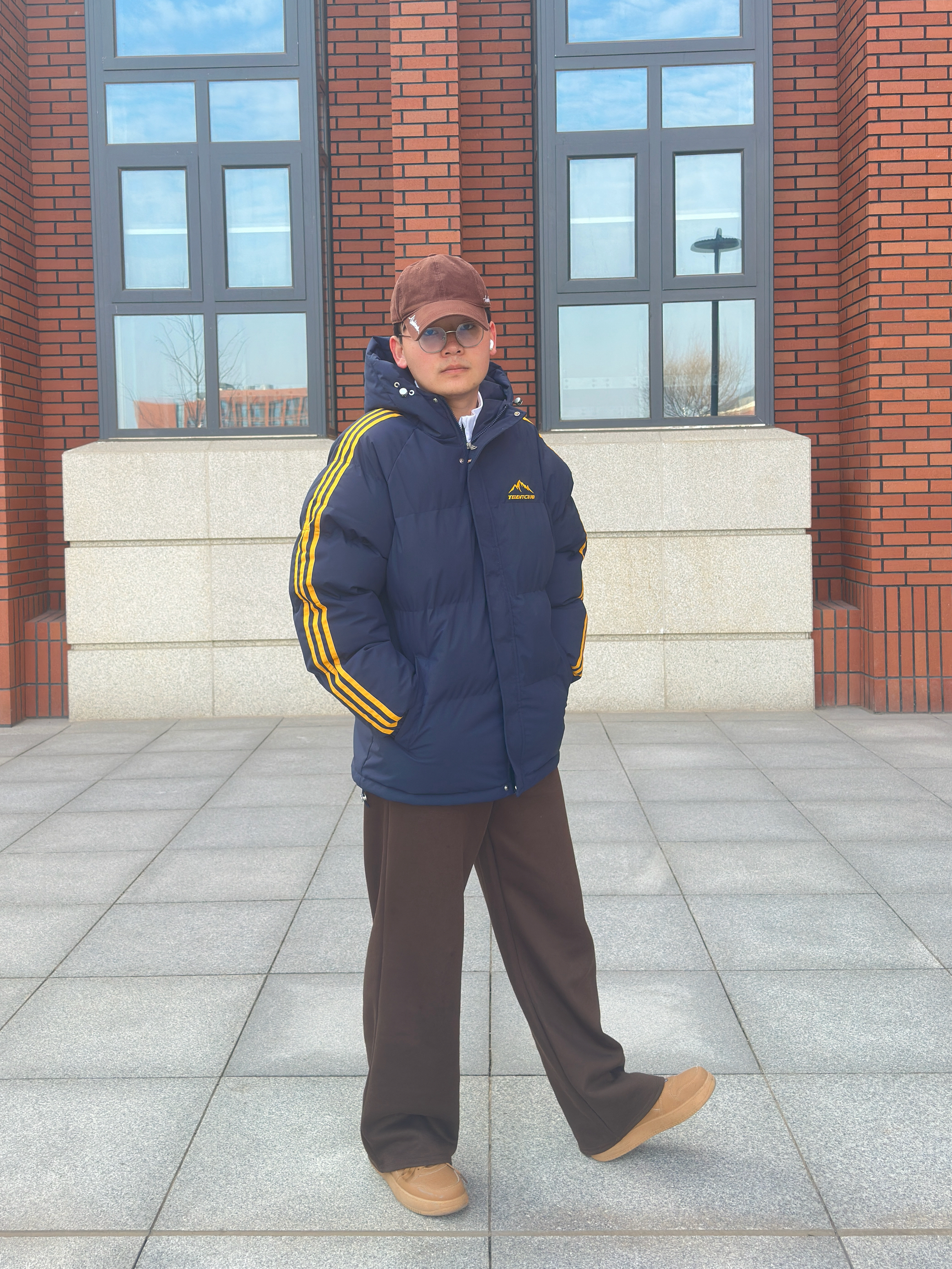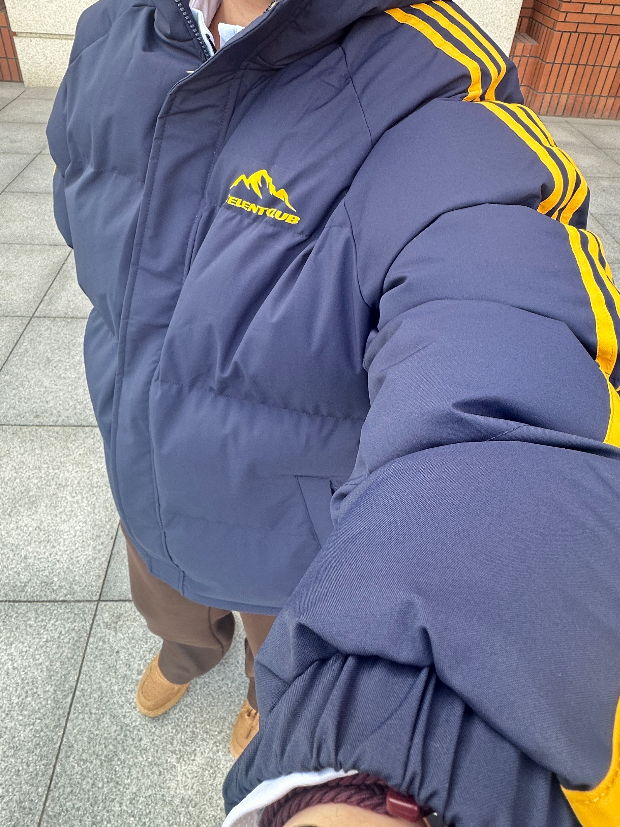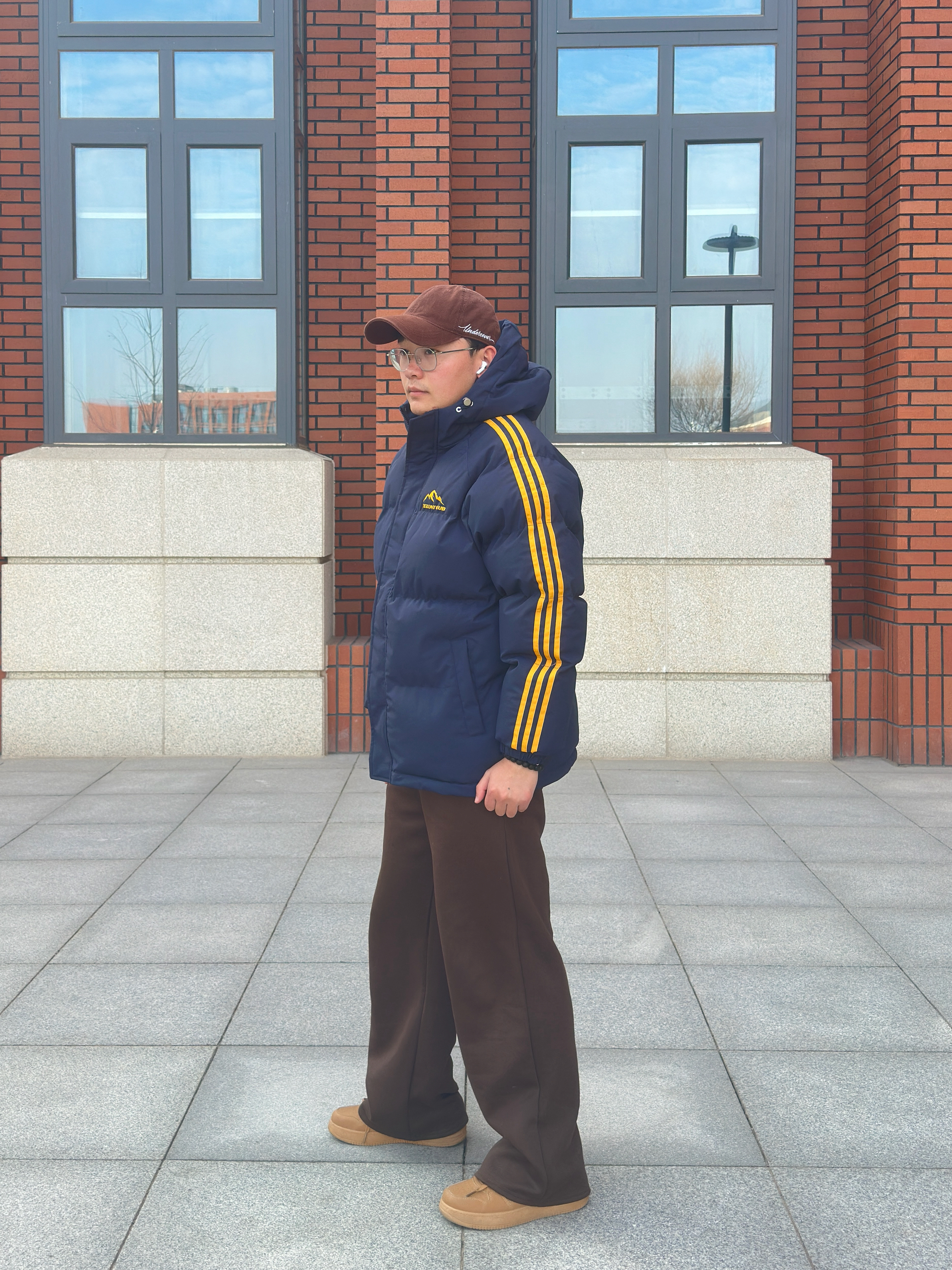 今天这套是藏青面包服+棕咖阔腿裤 秘诀是选短款面包服配垂感阔腿裤能中和蓬松感 再搭同色系帽子+鞋,全身顺色看着就舒服👌 上身是真暖,冷风刮过来都跟隔了层墙似的 袖子上的黄条还偷偷加了点活力~ 搭配心得: 1.选择色系不同深浅:像我这身藏青+棕咖,属于低饱和邻近色,视觉和谐不单调😌 2. 用小面积配饰呼应:帽子和裤子同棕,鞋子和衣服同暖调,细节能让整体统一 3. 松紧/长短平衡:蓬松面包服(松)+垂...