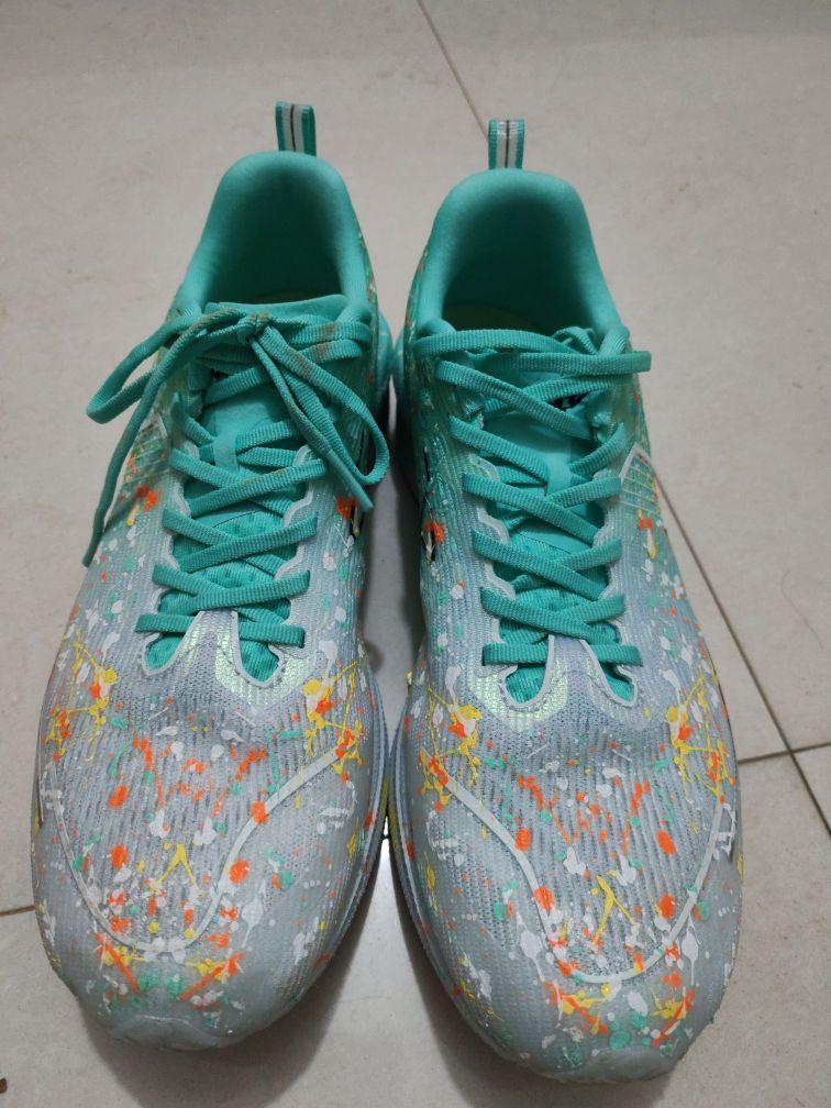 后掌十分软弹,前掌偏韧弹,我100斤都踩得动。大底有加宽,过弯道十分稳定,前掌跑法跑起来激劲十足,后掌跑法享受极致的回弹。夜光配色颜值很高,适合新手