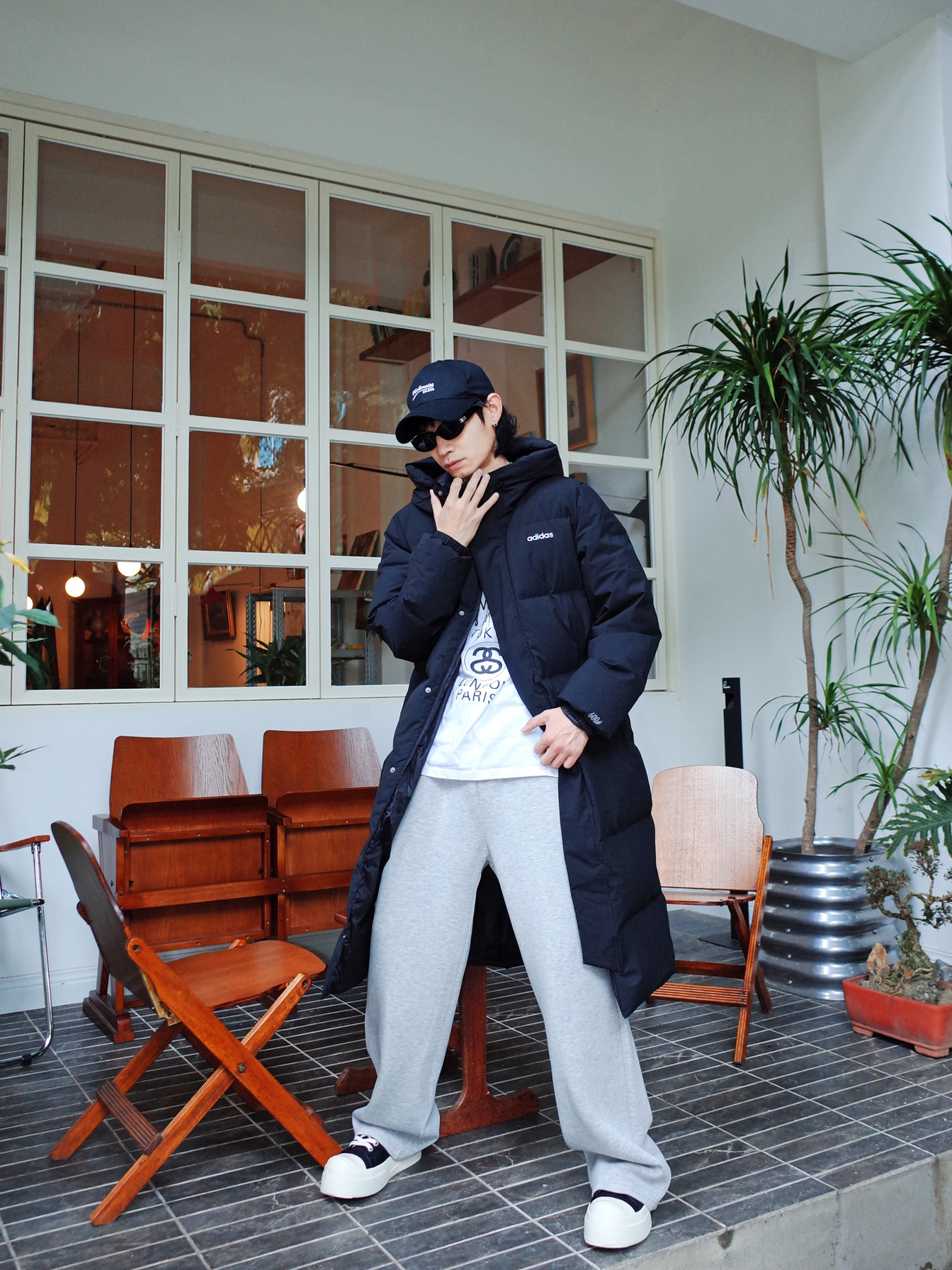 冬天想要保暖又保帅❔ 可以试试涵哥这身穿搭哦⚡️ 上身 adidas 的连帽羽绒服, 防风又保暖的同时, 长款设计还修身显瘦✨ 600 蓬松度让我就是冬日行走的小太阳☀️ 搭配一条花灰色的直筒卫裤, 黑灰配简约又高级! 脚上一双🐼黑白撞色的板鞋, 保暖又保帅的秘诀你学会了吗❓