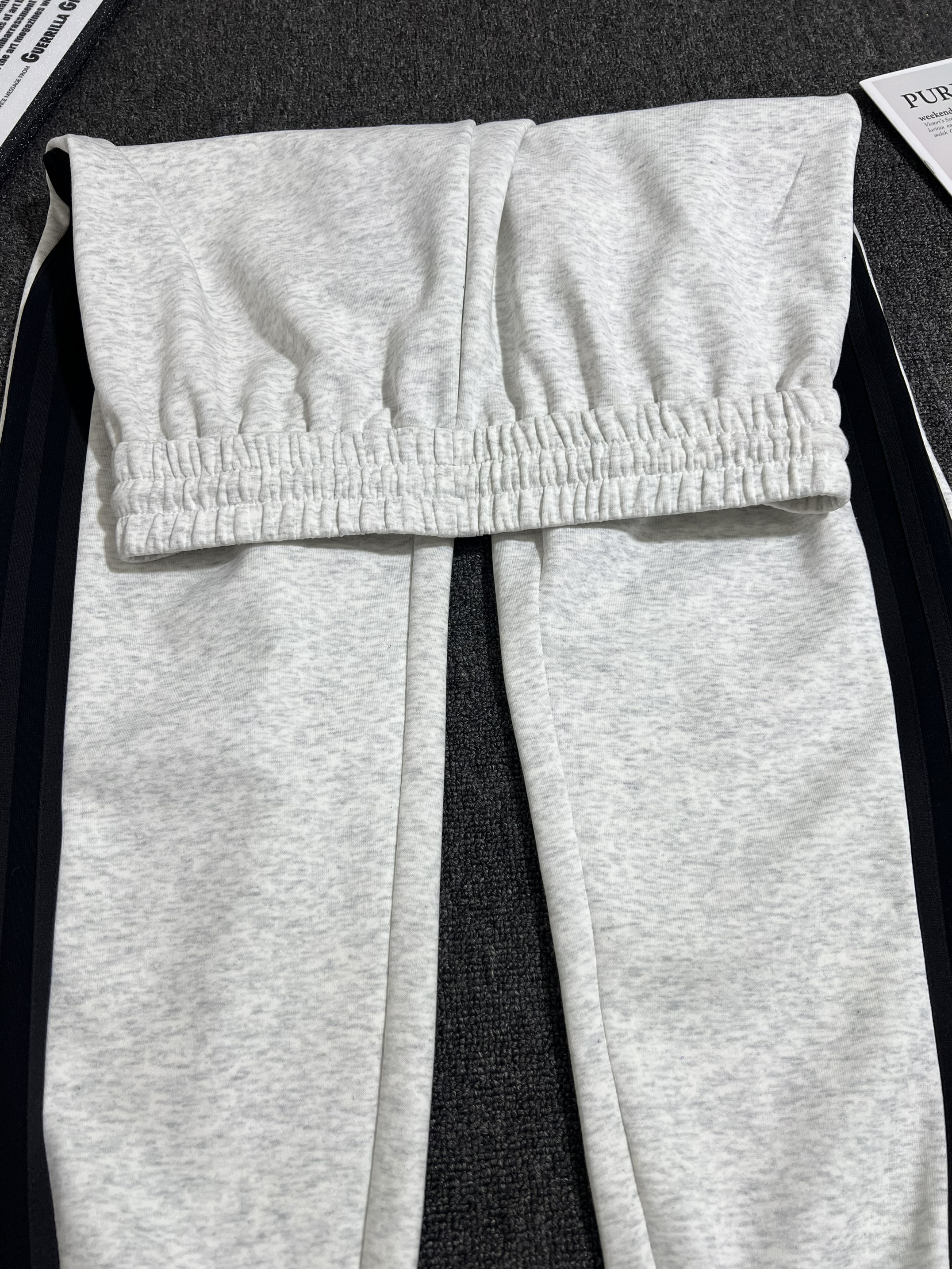 实物很有质感~面料软软糯糯的很舒服!三条杠设计很修饰腿型!束脚上身干净利落~微宽松上身也很舒服,黑色也很好搭配,上衣随便穿都好看!!
