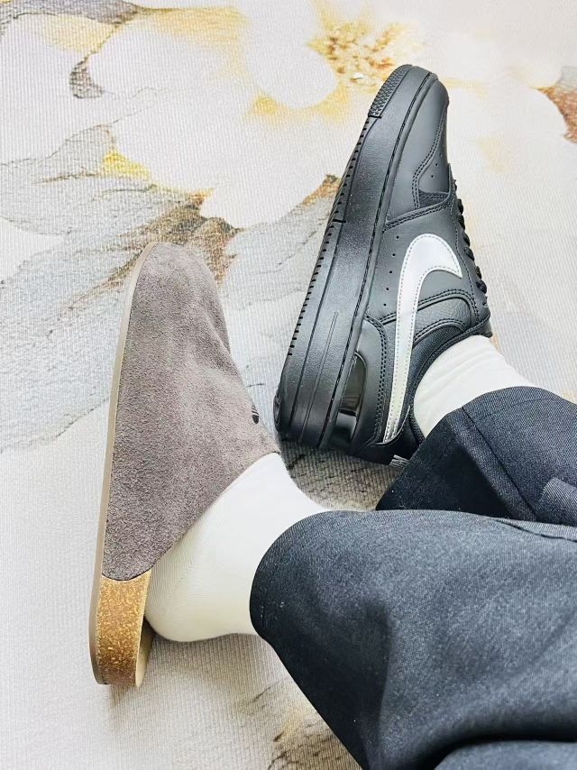 这双鞋穿了快两周,先说实在的: 左边这只麂皮款,踩上去软度刚好,走半小时路脚底板不会发僵,但麂皮是真难打理——昨天沾了点奶茶渍,拿湿纸巾擦完留了印子,得专门买清洁剂🫠。右边的皮质款更省心,溅了灰拿布一擦就干净,鞋型也挺板正,配牛仔裤和休闲裤都不违和,就是刚穿那两天,鞋帮有点磨脚踝,贴了个创可贴才好点。 鞋底的抓地力还行,上周下雨踩了点水,没怎么打滑,但软硬度属于中等,长时间站着还是会有点累...