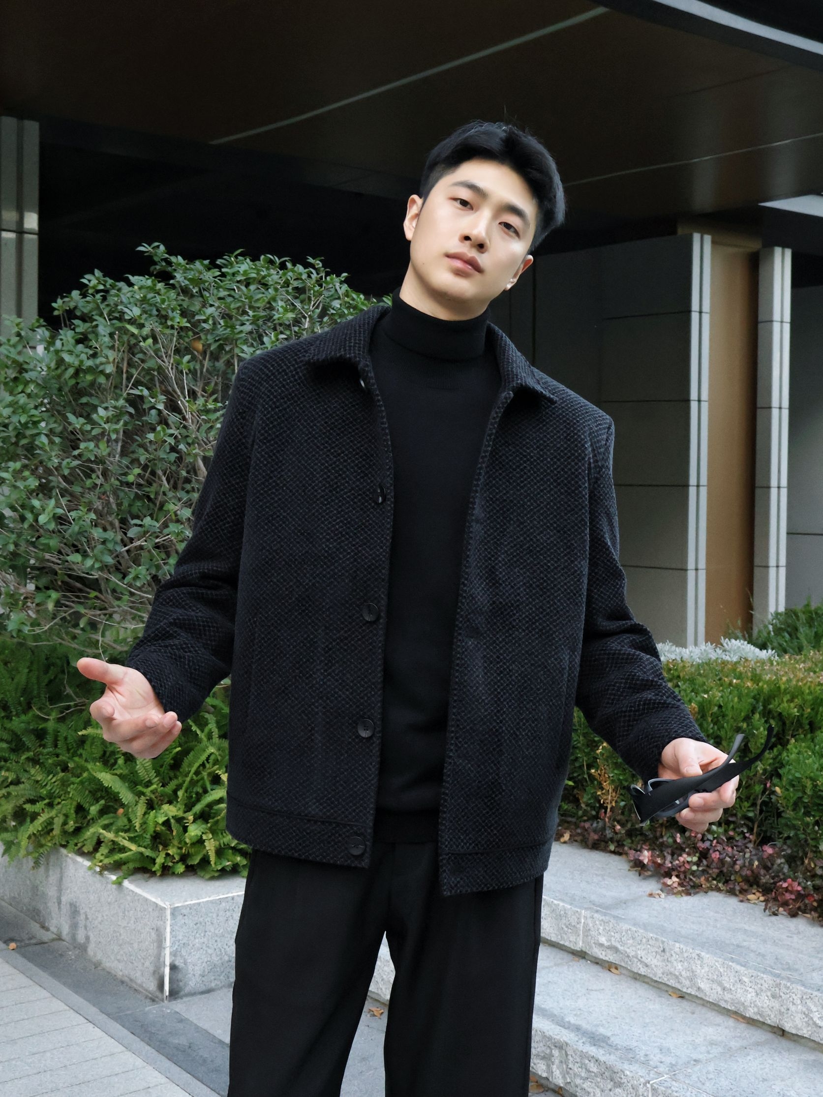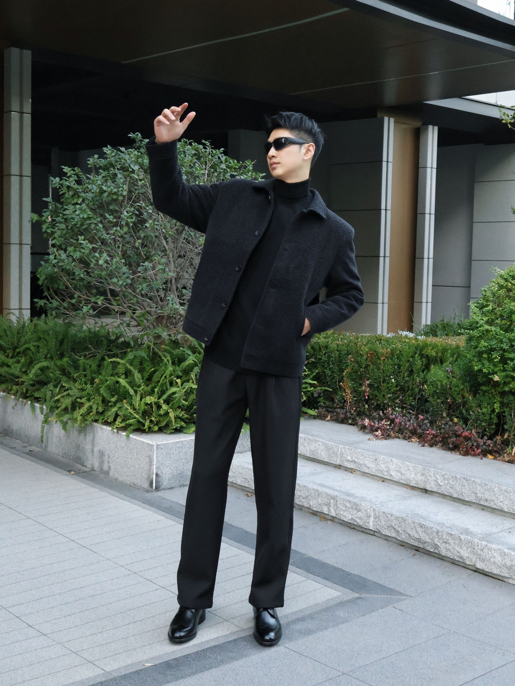 一身黑的穿搭OOTD|商务夹克就是主流~ 冬日的穿搭夹克是不能少的主角~ QZHIO 商务加绒夹克外套~衣服的版型是跟帅气的~ 整体的质感满满~ 细节做工也是很好的~ 加绒加厚的保暖舒适~ 整体细节很到位~ 面料贴肤高级~ 适合冬日ootd~ 小倪:181cm 70kg 上身2xl可参考~ 搭配简约西装裤~ 黑色高级百搭的~ 简约尖头皮鞋~ 时尚高级又舒适的~ 这一身黑穿搭职场通勤很帅气啦~