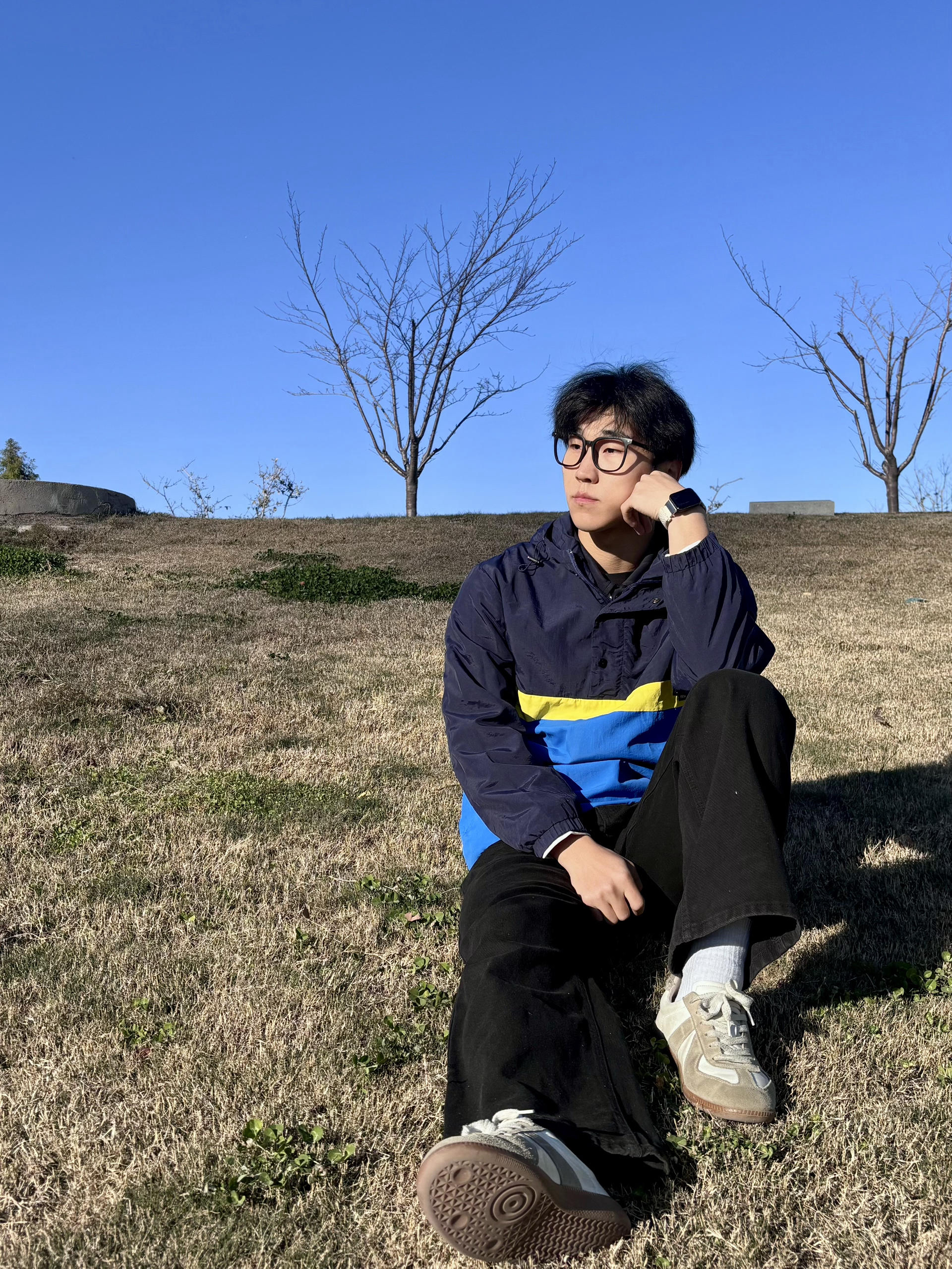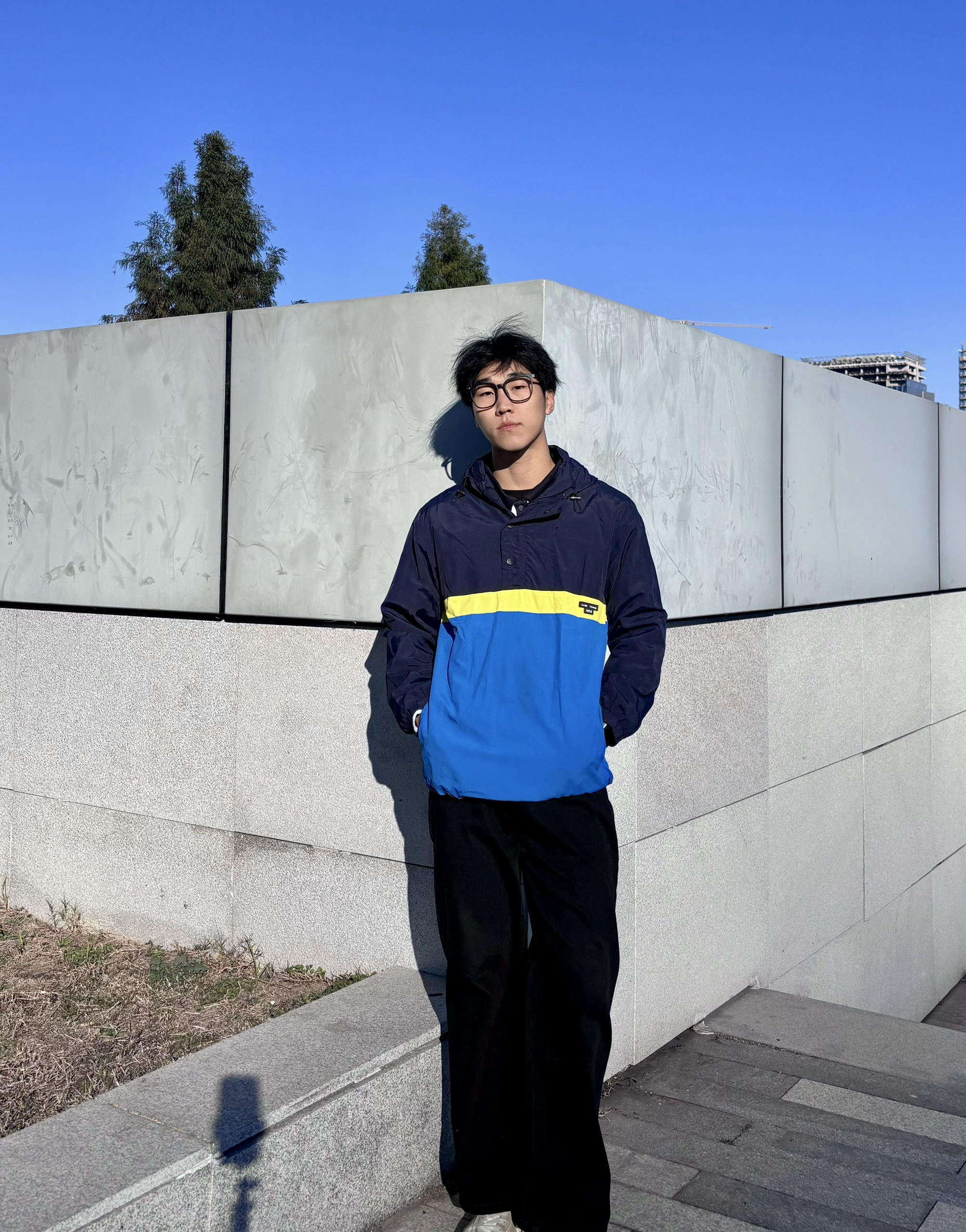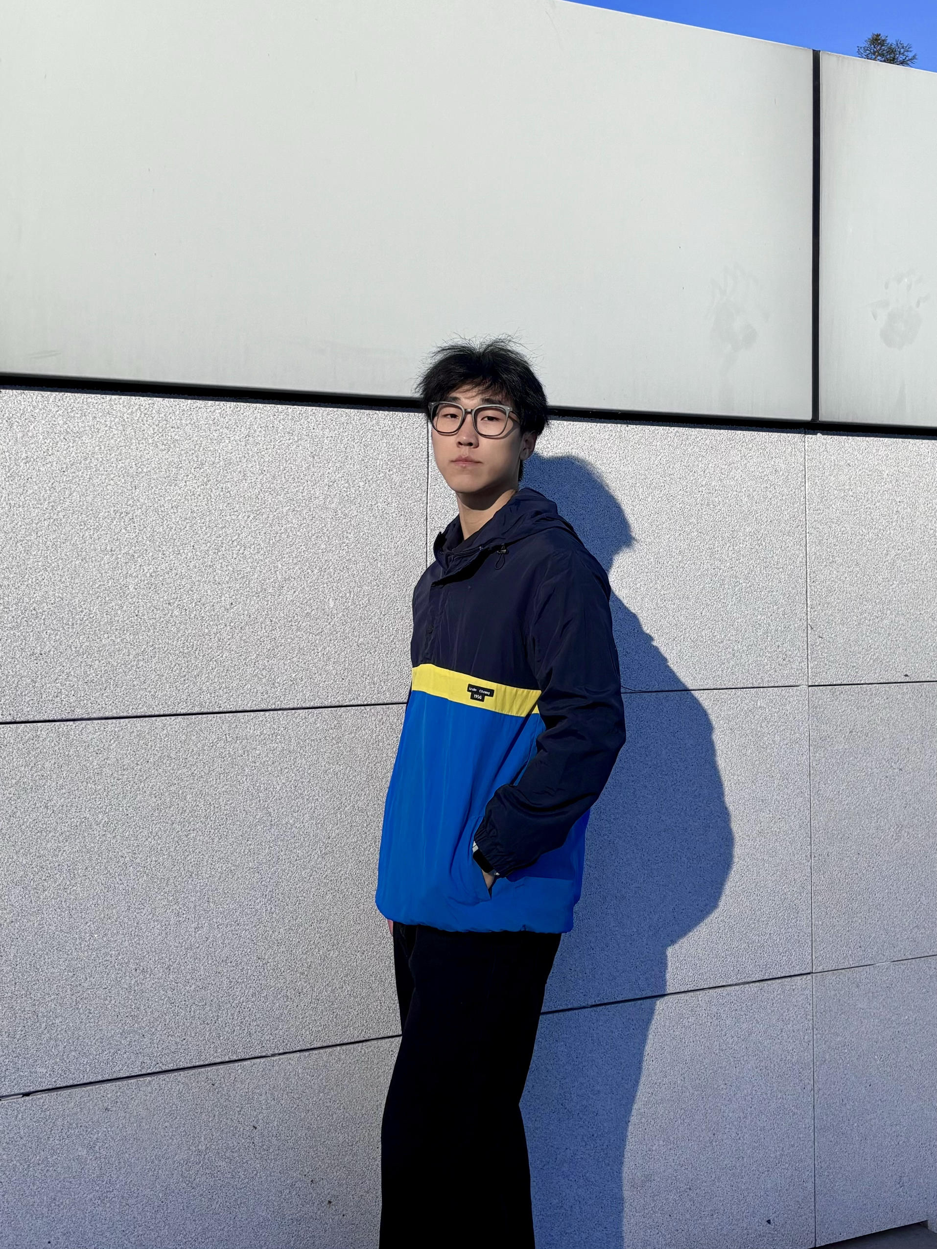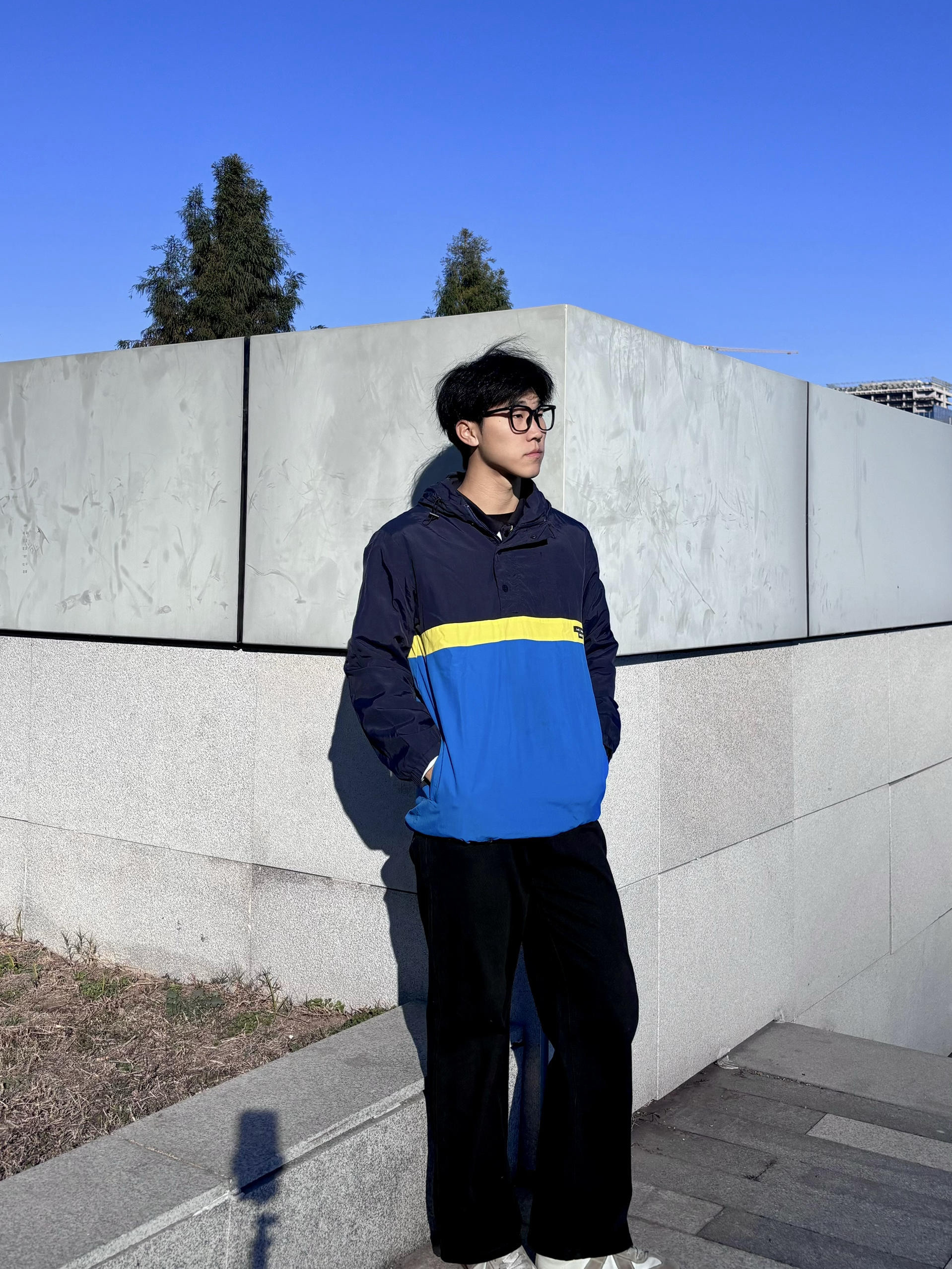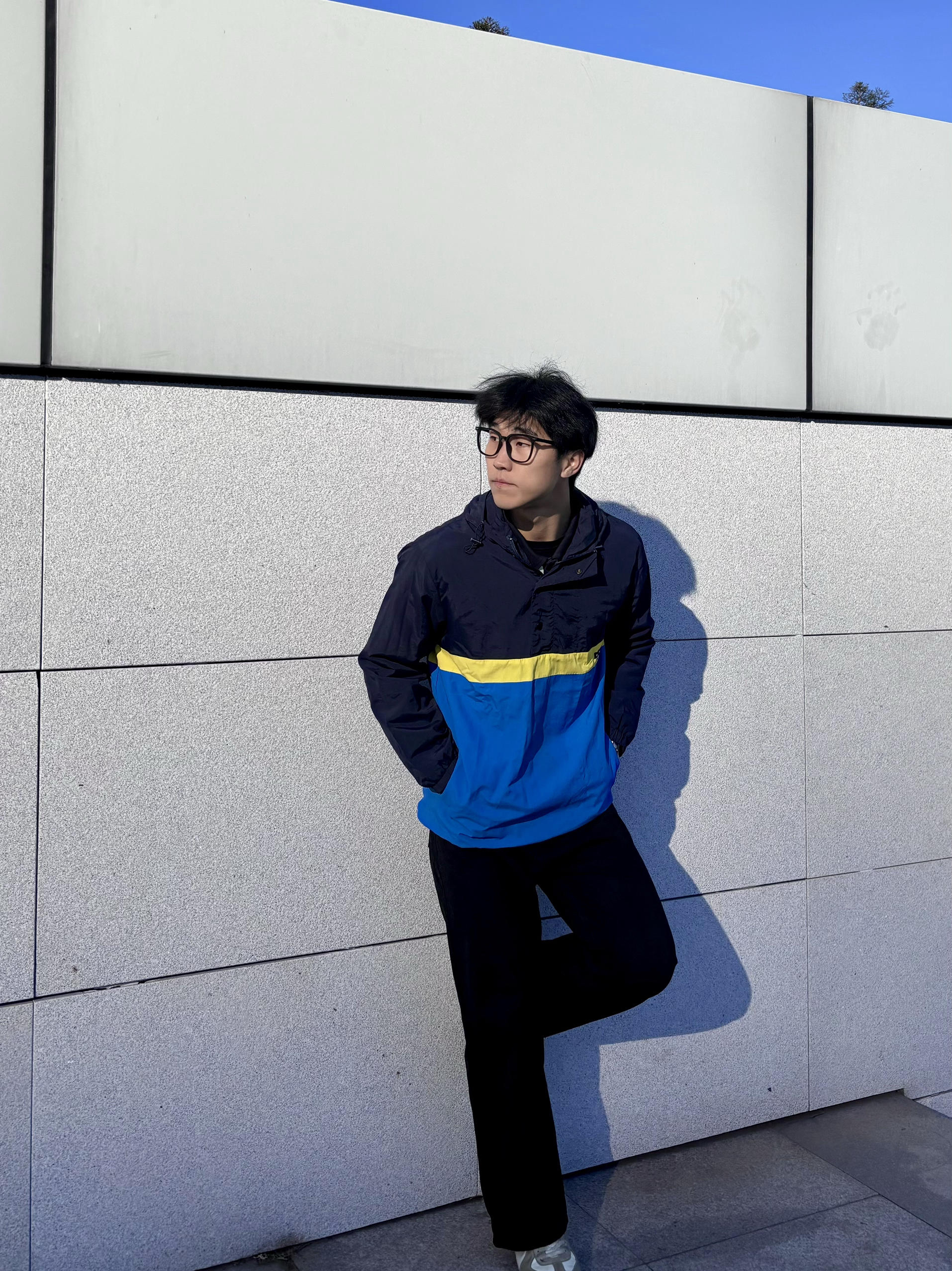 放了很久的衣服拿出来更新一下 张国荣同款拼色外套 拿到手质感比想象中好,藏青+宝蓝+明黄的撞色特别有90年代港风那味儿,版型是宽松的落肩款,随便搭条黑裤都很出片 今天穿出门晒太阳,面料轻还挡风,秋冬当内搭或者单穿都合适,复古党真的会爱这种有故事感的单品