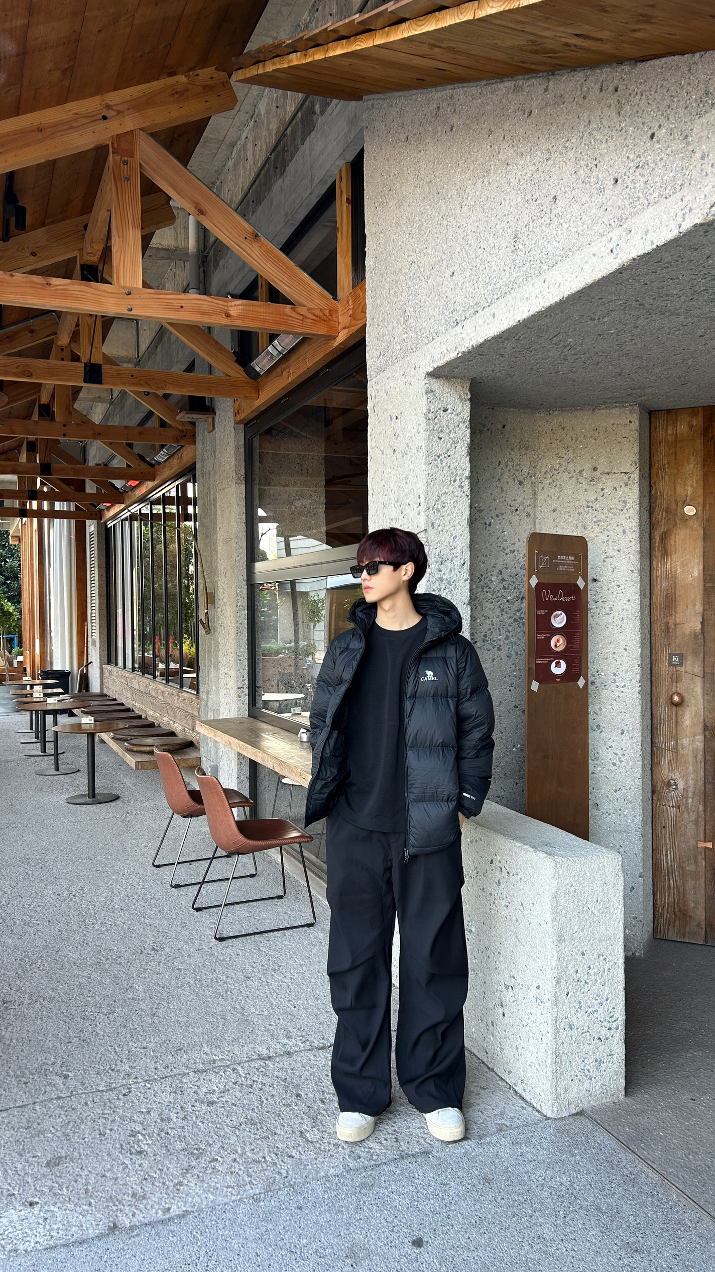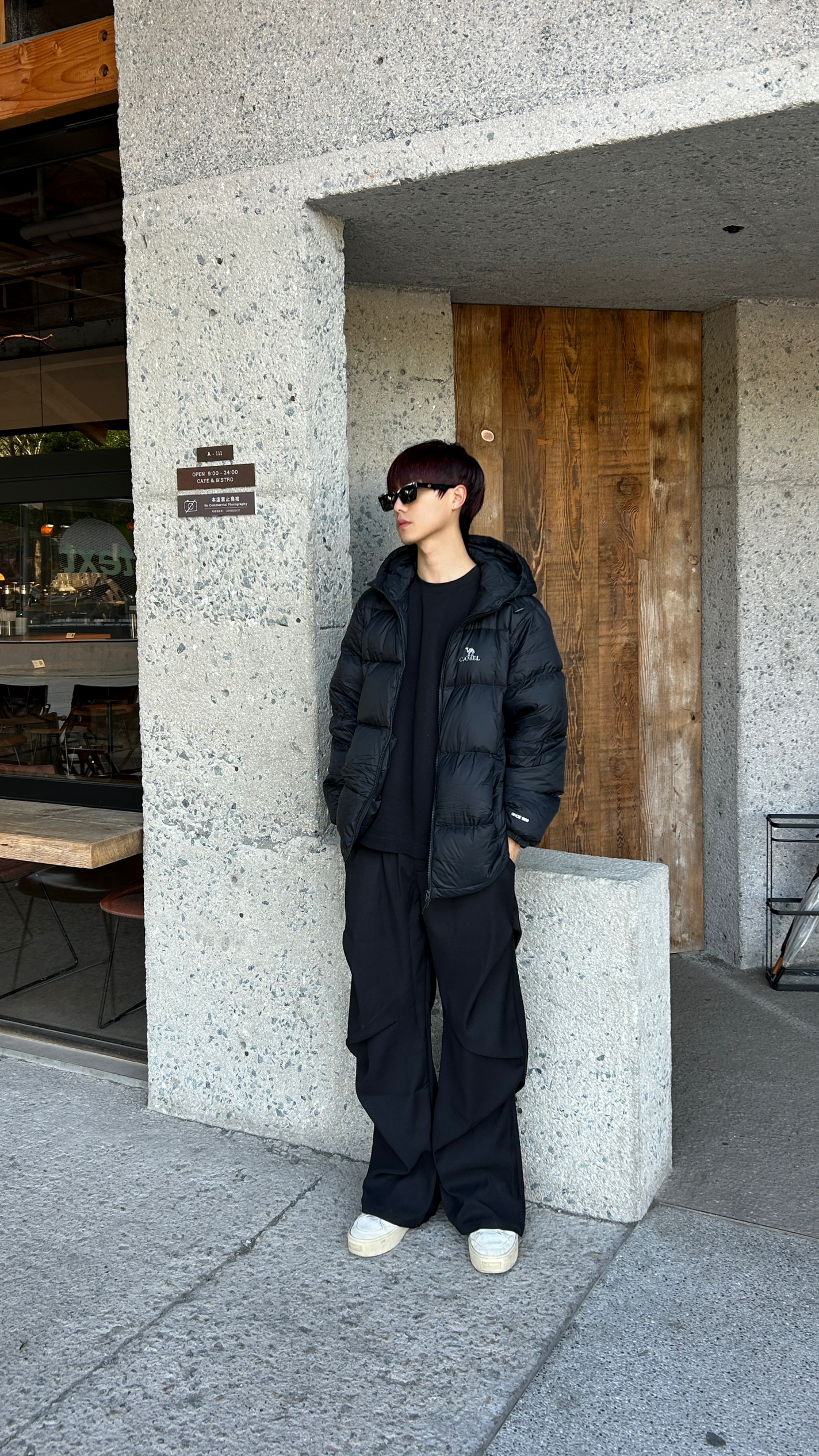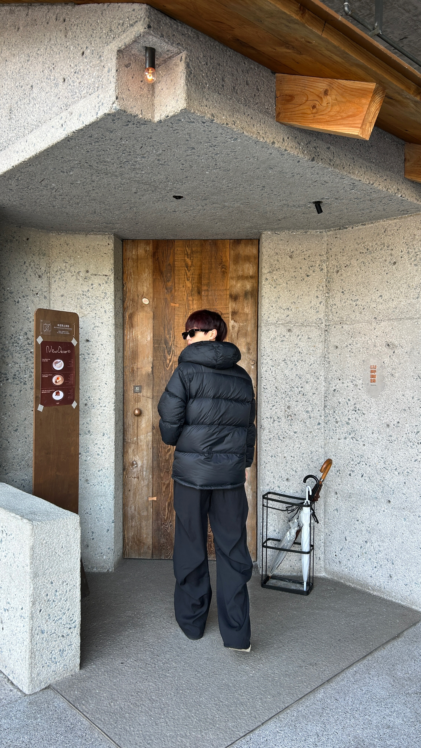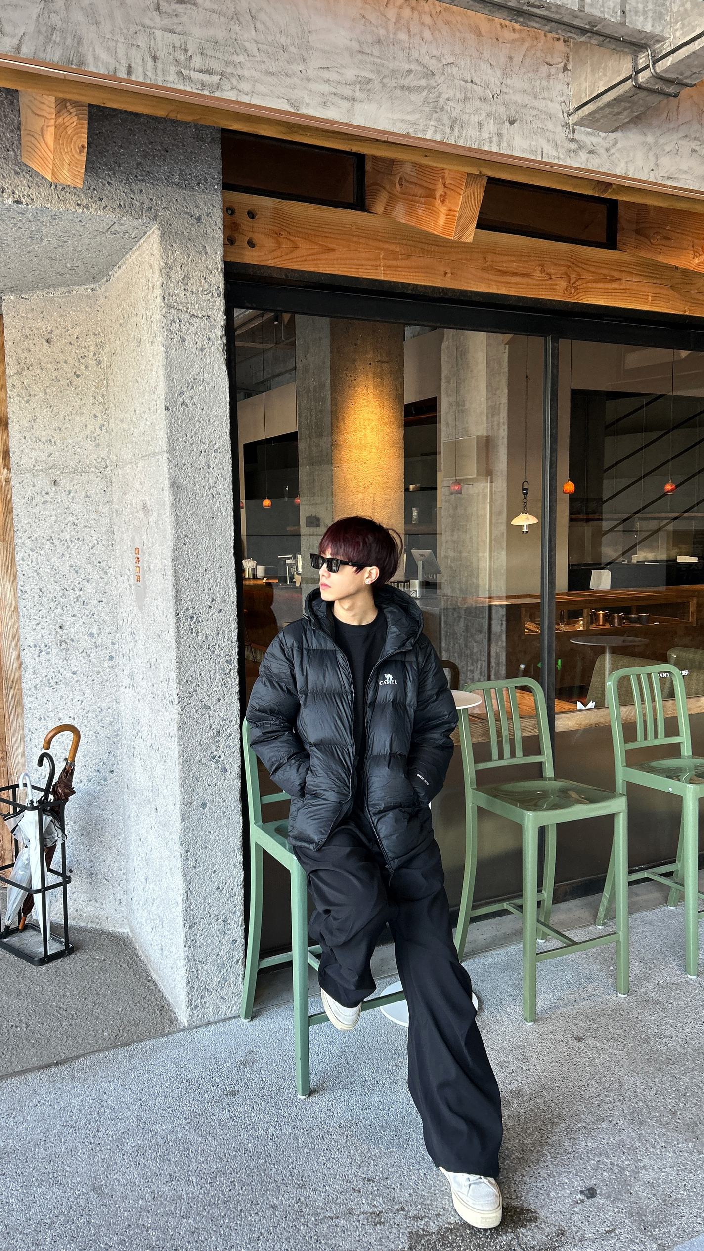 早早出门去喝咖啡 不想费力搭配穿搭一身黑准没错 今天的look即使是同色系也很有层次感 一件蓬蓬穿着很暖的羽绒服 再搭配一条垂直感很不错的西裤 裤子就是我今天穿搭的点睛之笔 褶皱设计就很有层次感 宽松的版型穿起来更挺括更舒服 简单又有效的All black你学会了嘛