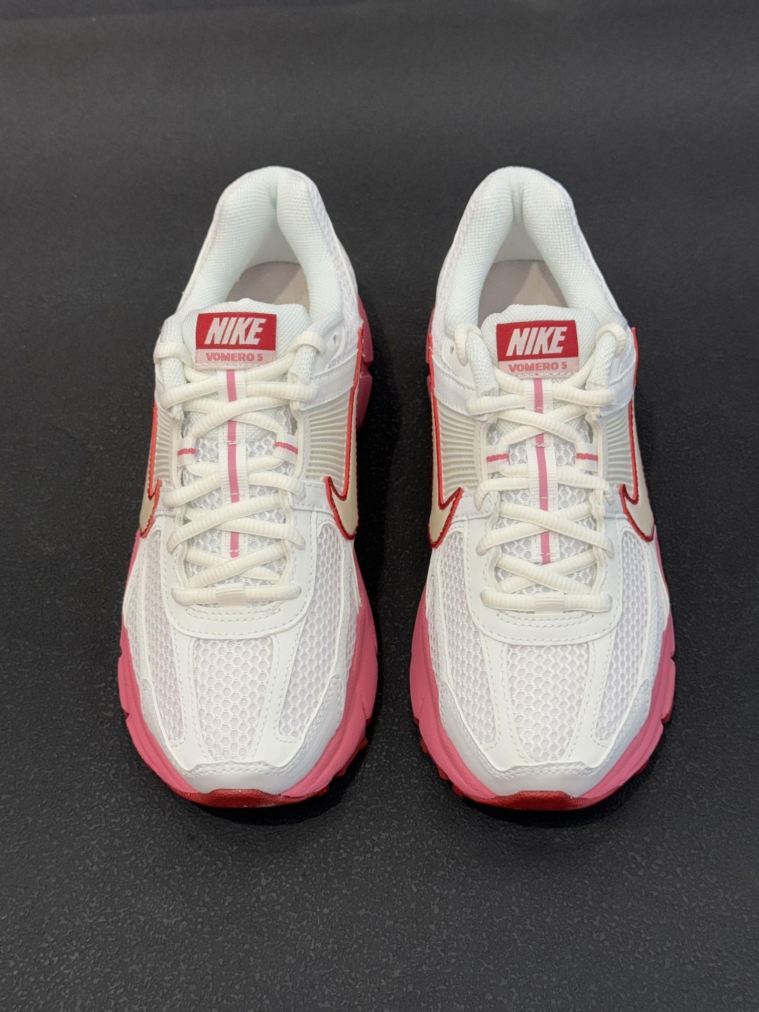 本篇笔记关联了Nike Zoom Vomero 5 跑鞋 舒适缓震网面透气百搭复古支撑训练轻便 情人节限定/峰白色等商品,为用户提供真实的使用体验和购买参考。