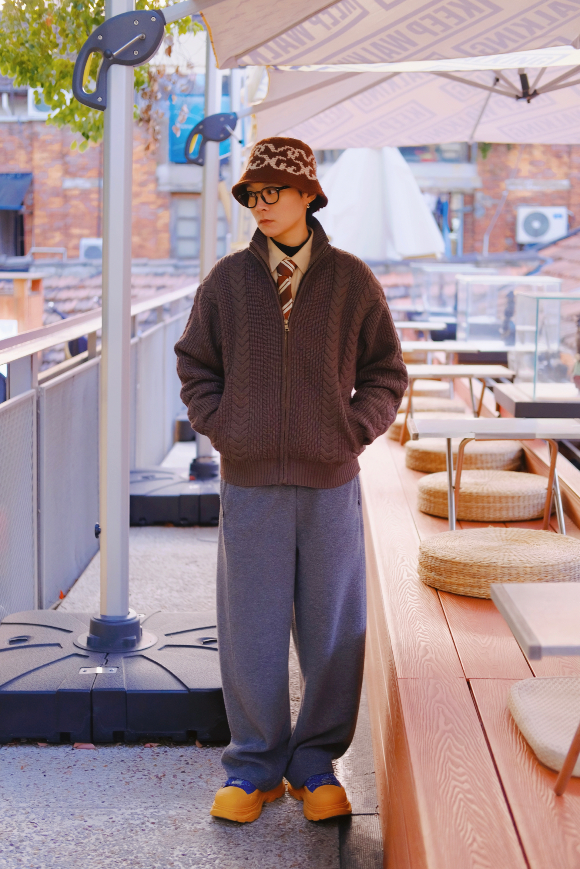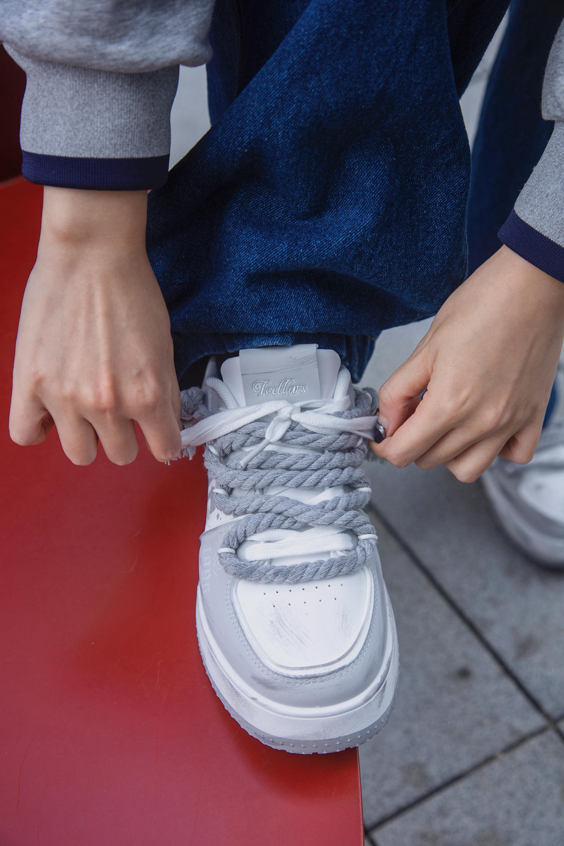 今天出门穿什么? 来套年度穿搭不可少的高智感穿搭 穿搭指南: 上身一件德绒打底 穿一件白色衬衫 叠穿一件灰色立领卫衣 打个领带 精神气十足 配一条蓝色牛仔裤 廓形的工装版型 痞帅街头感 上脚tcellars板鞋 灰白拼接配色 和上身呼应 鞋身做旧处理 双鞋带有设计感 穿这套 上下班一键切换