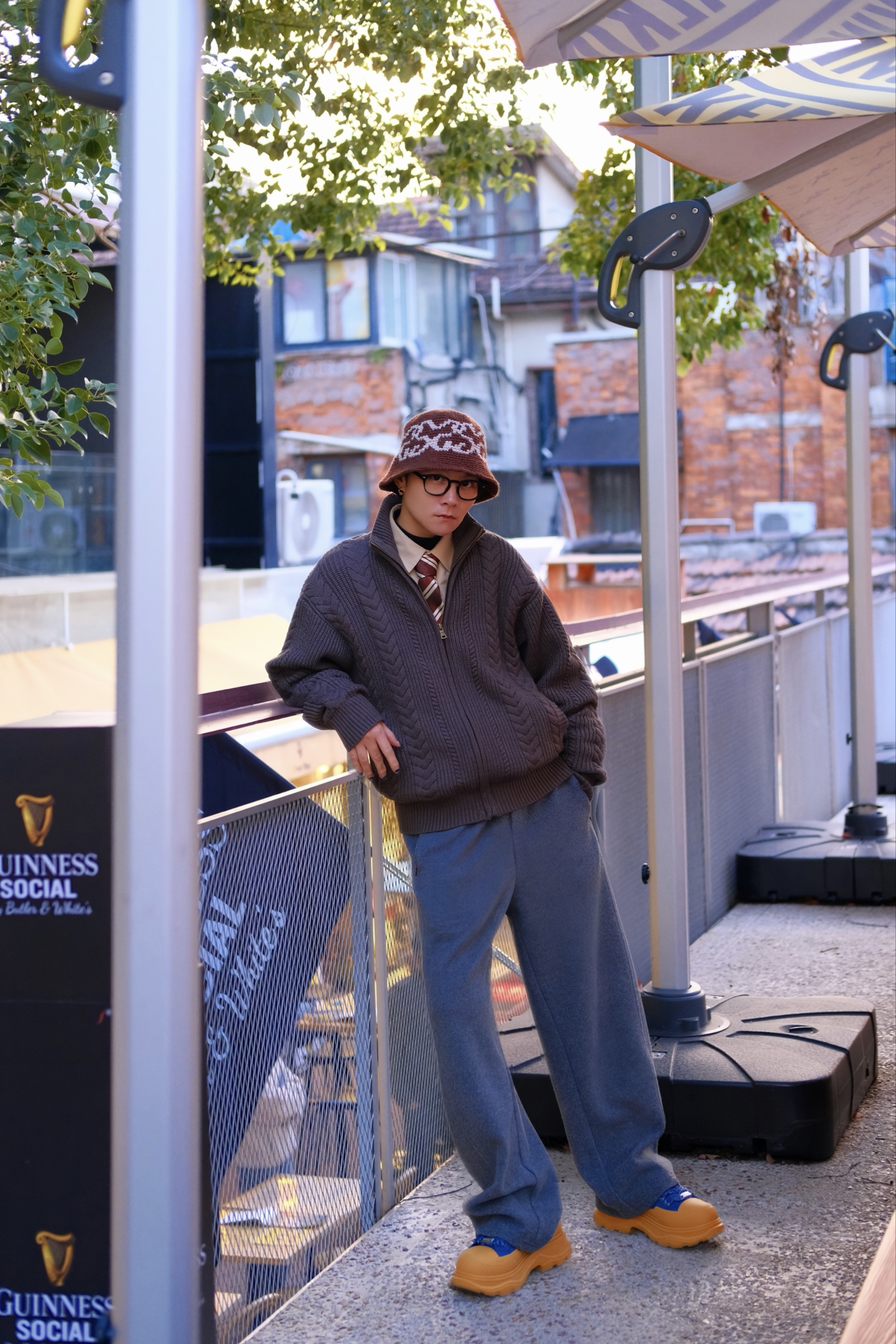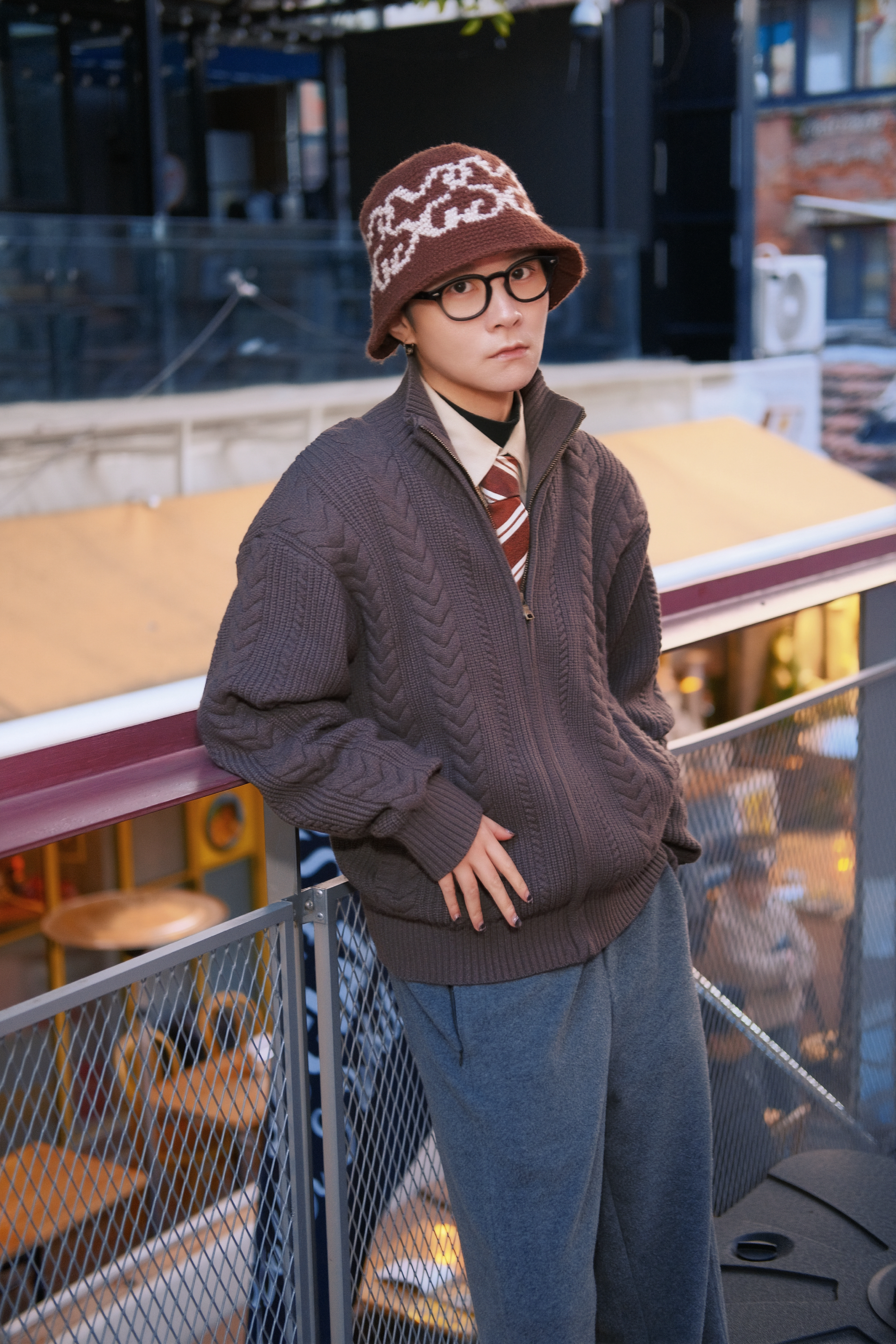 今年真的很好复古风穿搭 这个冬天也不例外 分享一套冬日复古英伦风穿搭 穿搭指南: 上身一件卡其色长袖衬衫 外搭一件棕色开衫毛衣 麻绞花编织 复古到细节里 打个酒红棕色条纹领带 很绅士哦 配一条深灰色休闲裤 呢面料 保暖又显高级 用牛仔拼接德比鞋收尾 戴一顶同色系的针织盆帽点缀一下 整体焦糖色系复古搭配 穿这套去吃个英式brunch可好?