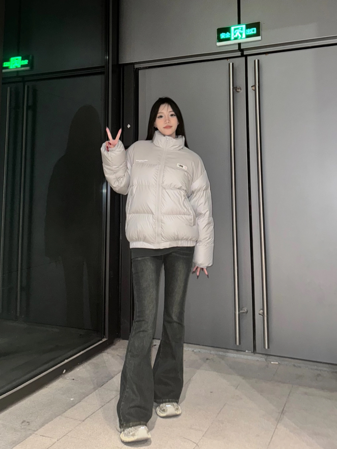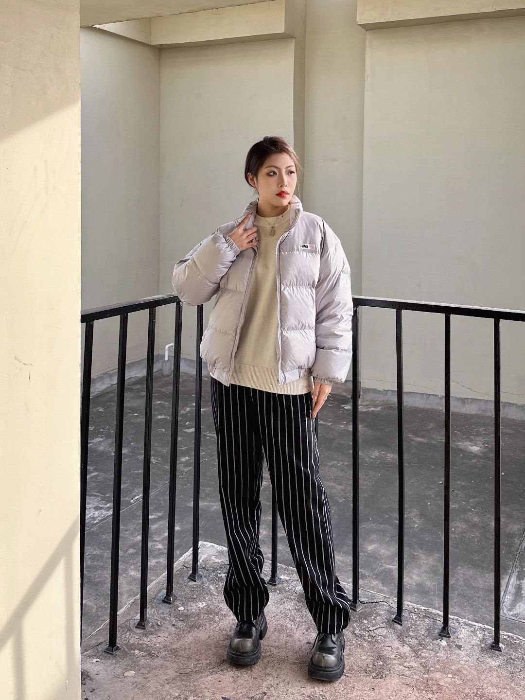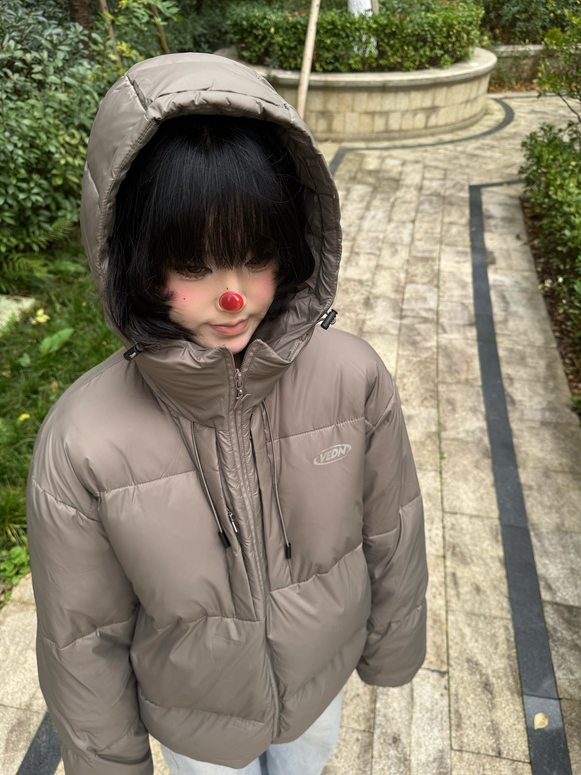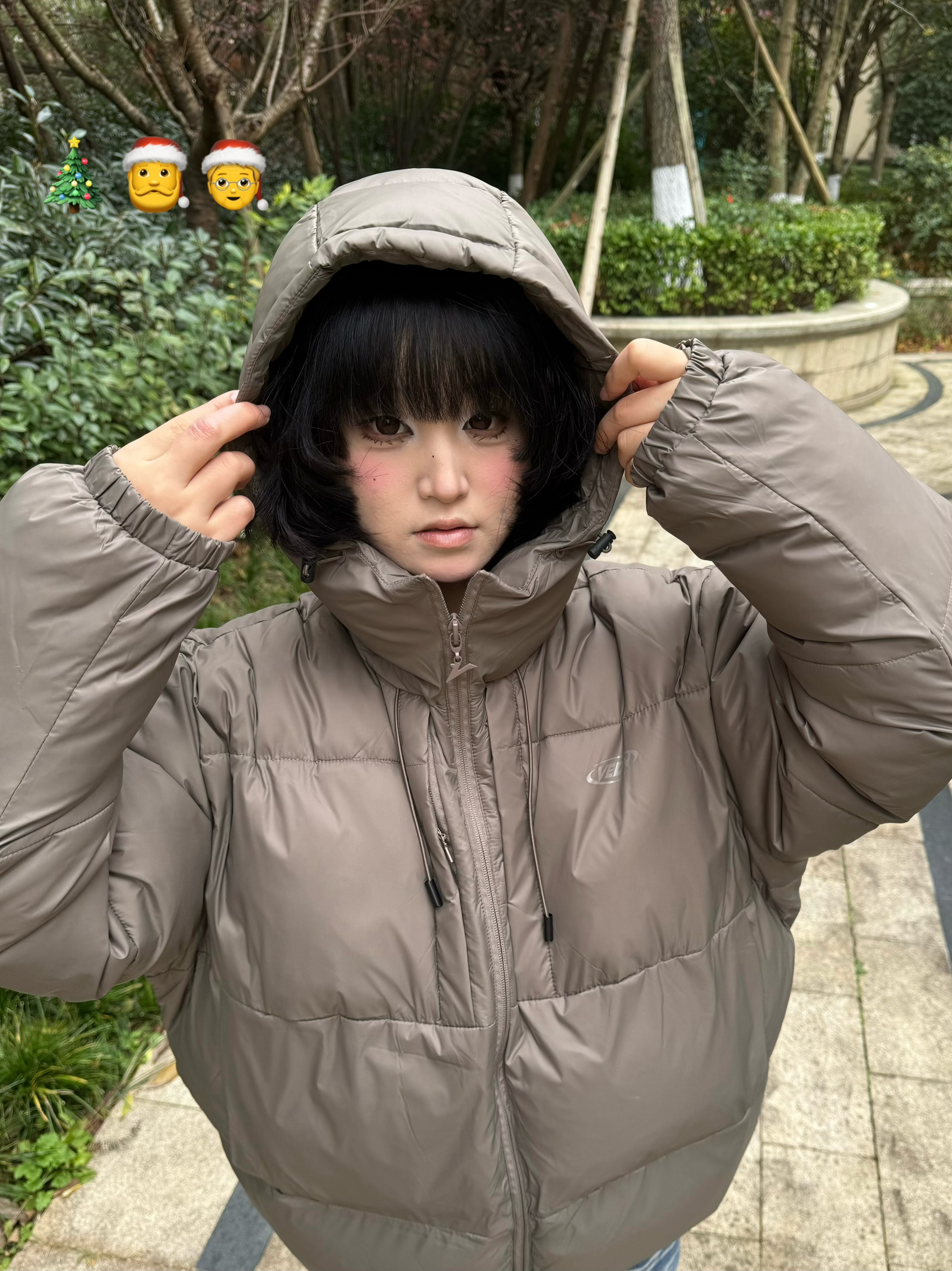 身高158cm体重47kg 穿的是M码 这灰面包服圣诞穿正合适 连帽一戴挺暖和 款式简单没花里胡哨的 过节穿舒服不扎眼 平时出门随便套上也好看