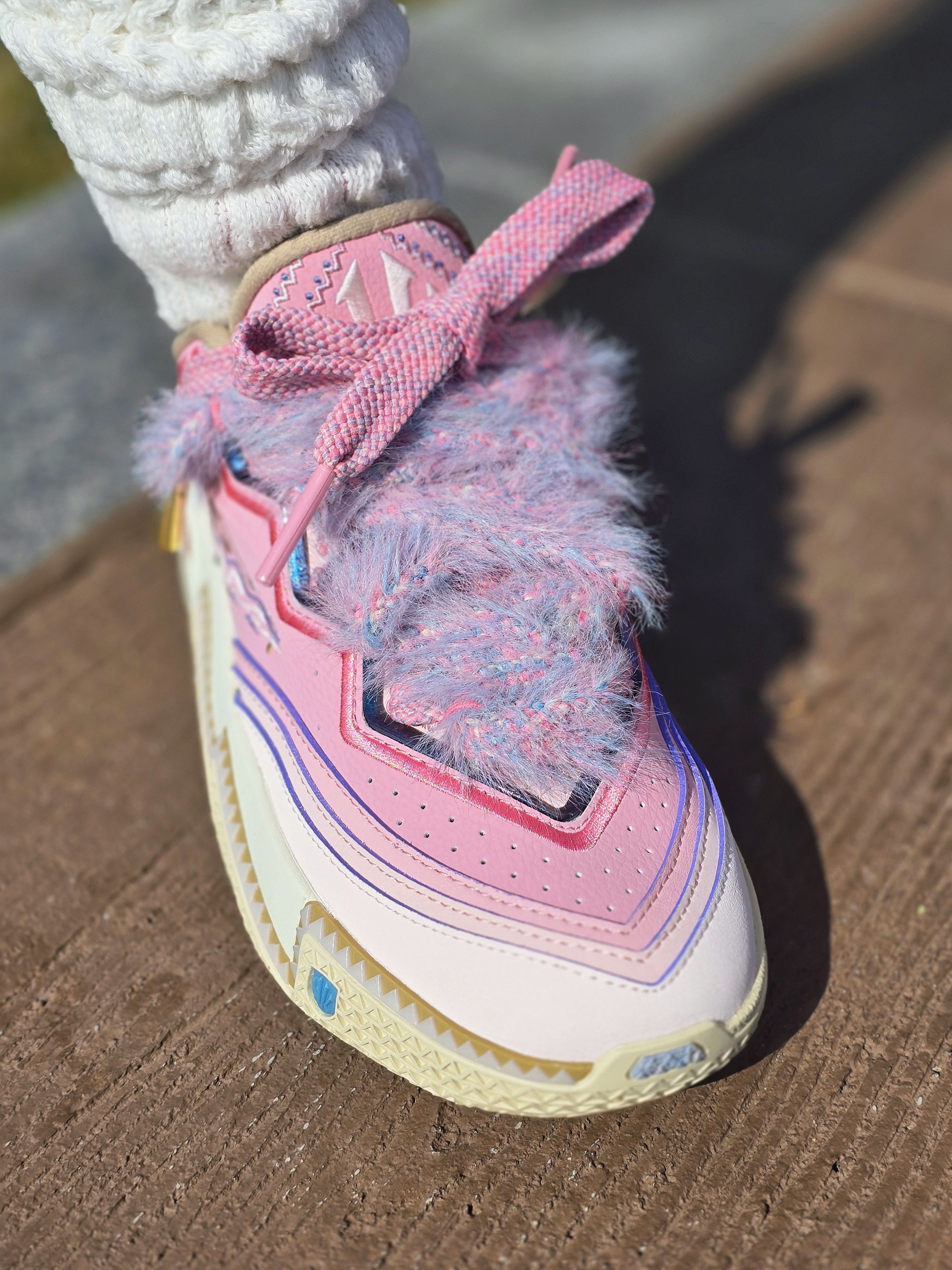 如果你滴女友是个运动甜妹,双旦的礼物准备好了吗?还没有滴话,可以看看我哟!鞋子是安踏欧文二代的小公主配色,毛茸茸的鞋带加上白粉配色,甜美度💯哦!再搭配凯蒂猫的毛绒卫衣和三叶草的粉色紧身裤,运动甜酷小姐姐就可以炸街啦!关键是预算也不高,一整套下来千元内全搞定啦😜!