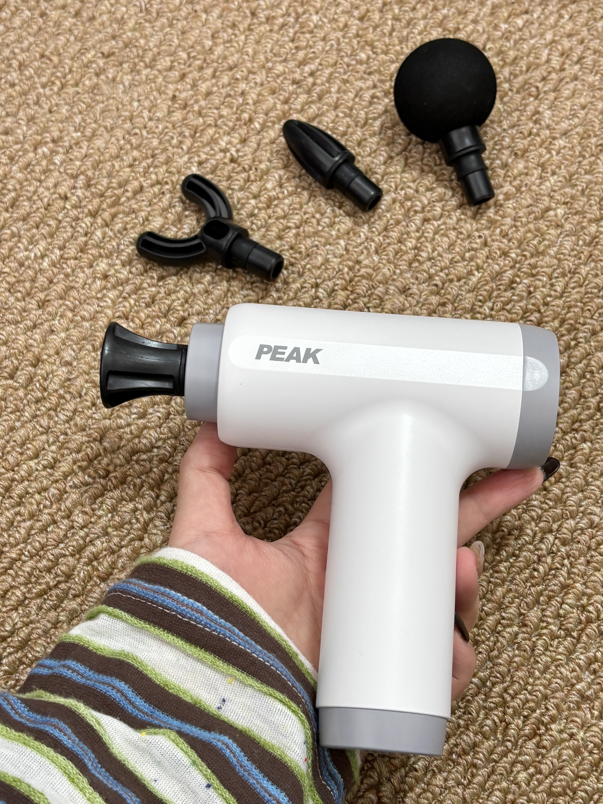 是匹克的筋膜枪耶 自带四个按摩头 男朋友平时打完球就喊腿疼、腰疼 按摩起来费时费力还不舒服 有这个筋膜枪按摩起来就方便啦 五档可以调节,操作简单,按摩力度正合适 我觉得圣诞送男朋友尊嘟很合适诶