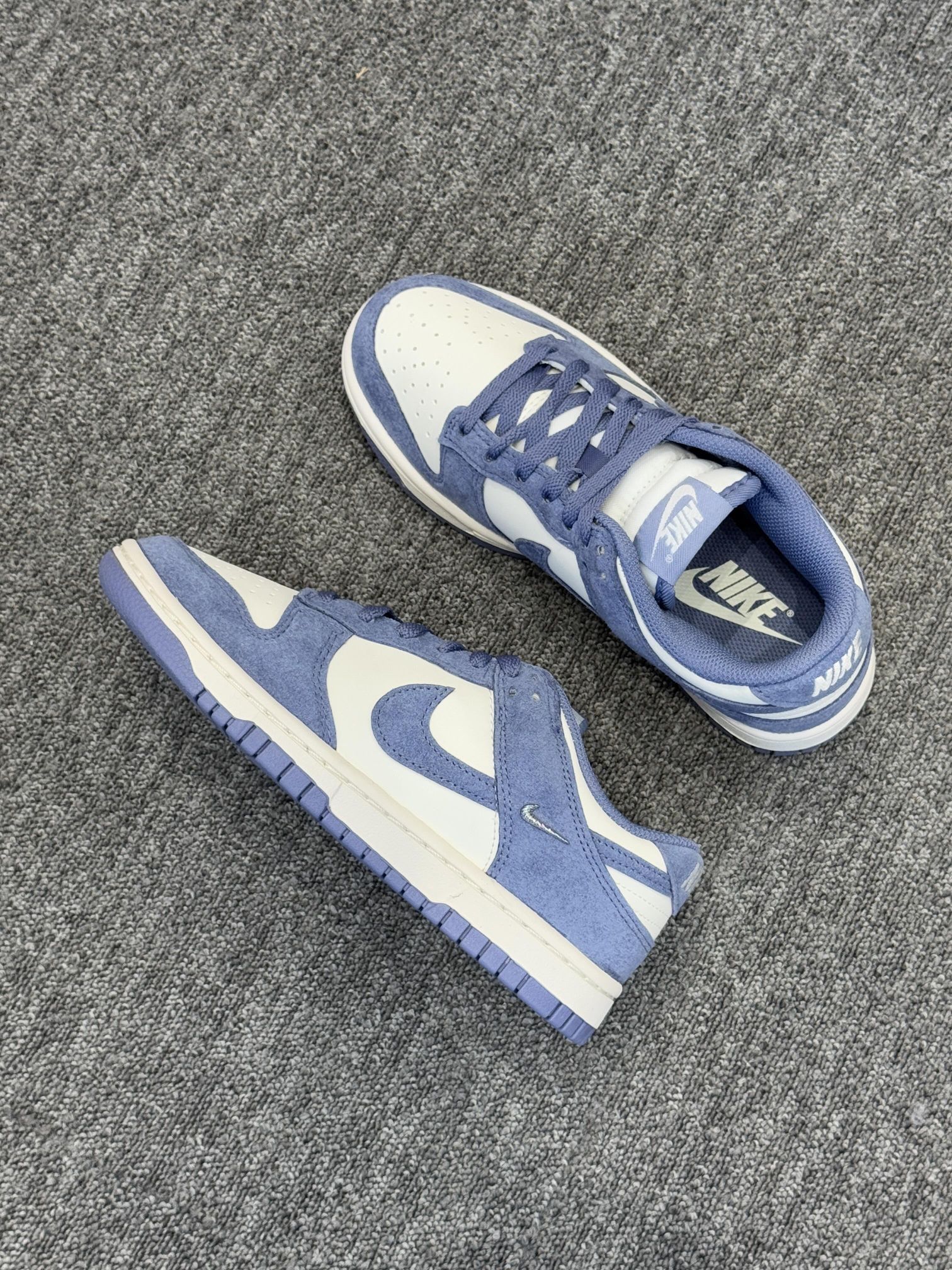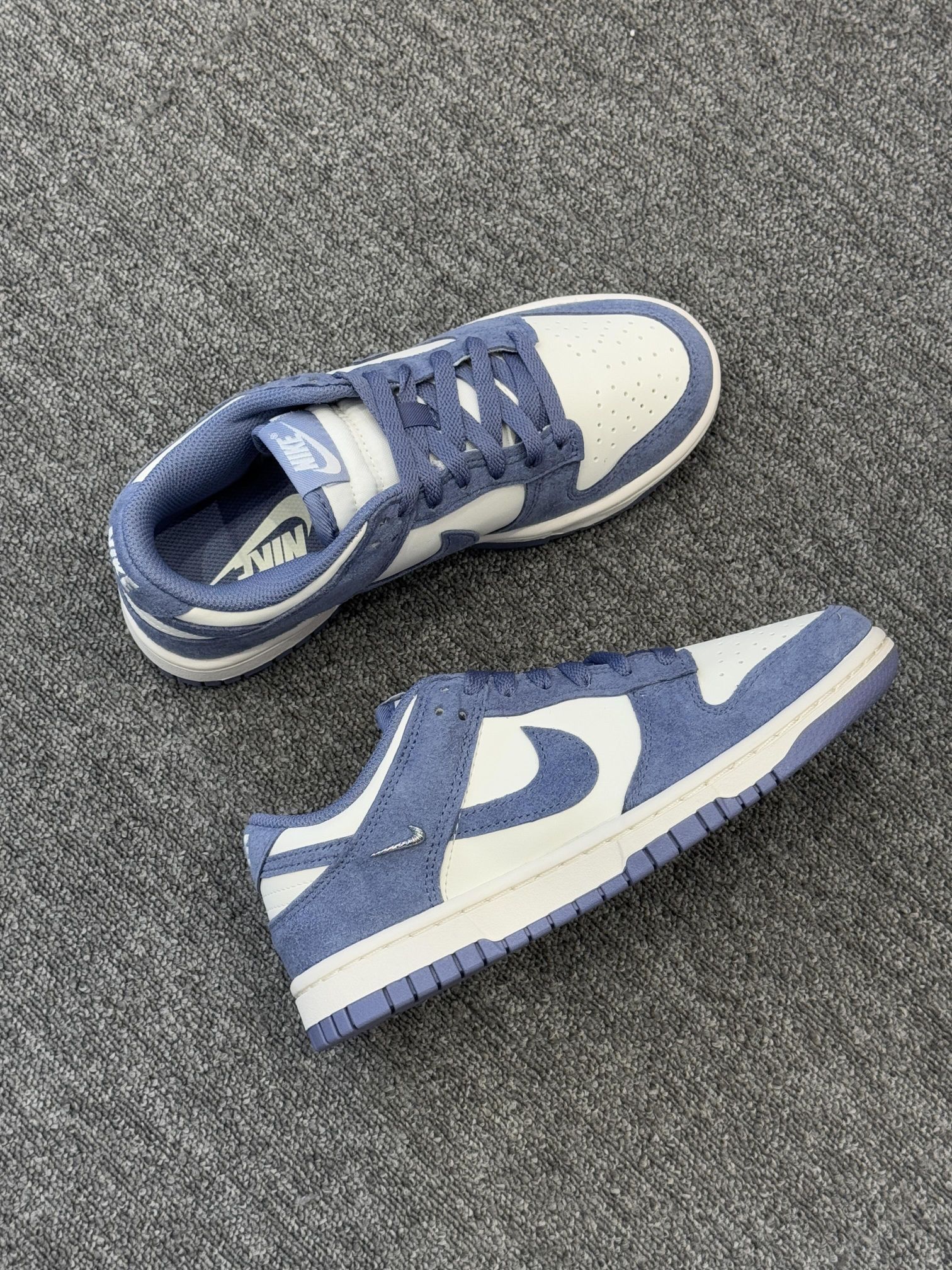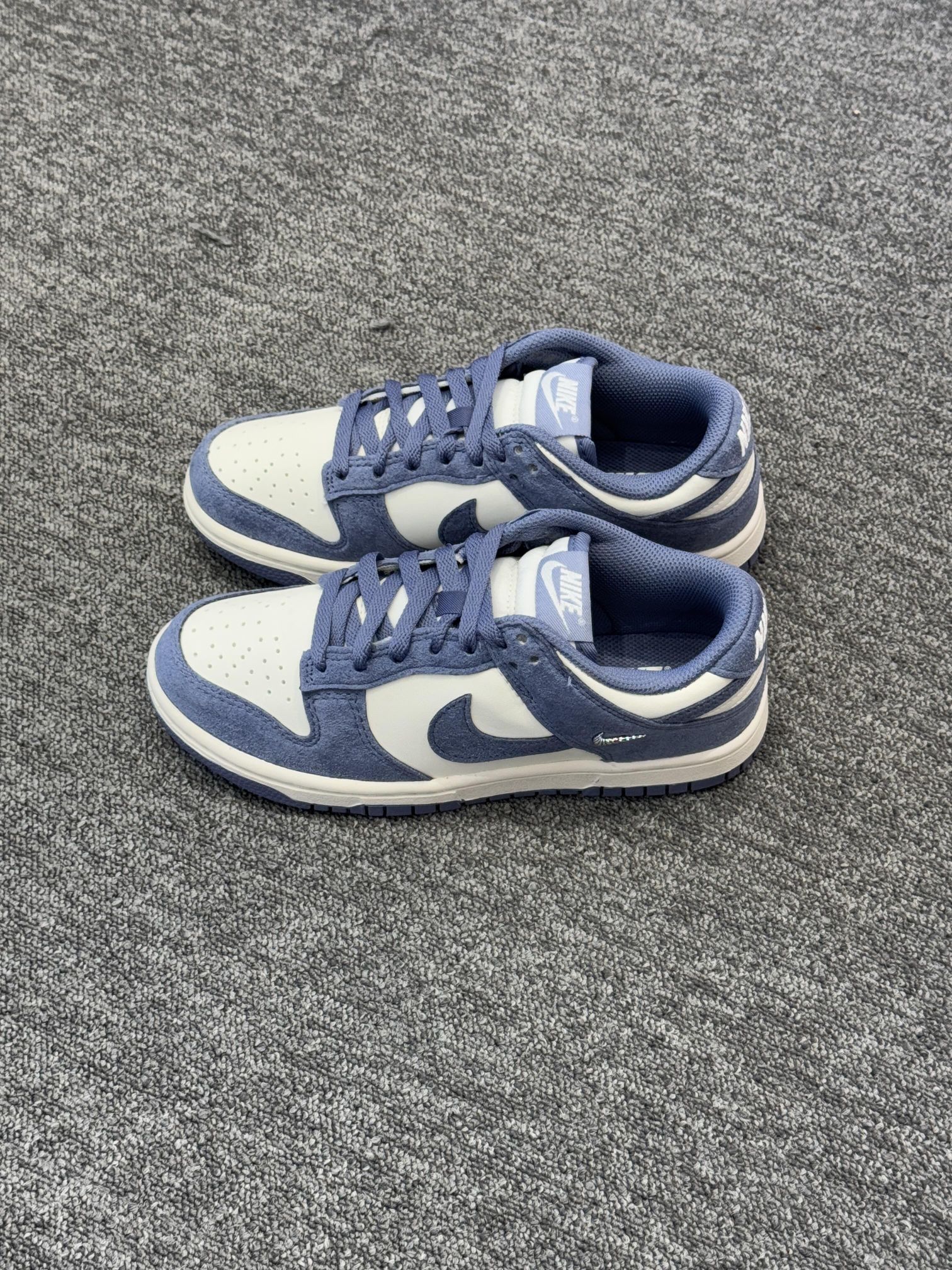 ✅ 核心亮点 1️⃣配色清新独特 小众的雾霾蓝色调,饱和度低且柔和,像冬日干净的天空,清新脱俗,能轻松为全身穿搭注入温柔、干净的韩系气质。 2️⃣ 麂皮质感高级 鞋面采用柔软麂皮材质,触感细腻,与雾霾蓝色结合后,呈现出独特的哑光质感,避免了普通皮革的单调,视觉上更显高级和冬日氛围。 3️⃣ 经典舒适百搭 沿用Dunk Low经典鞋型,线条流畅。鞋垫柔软,鞋底防滑,满足日常通勤行走的舒适需求。极...