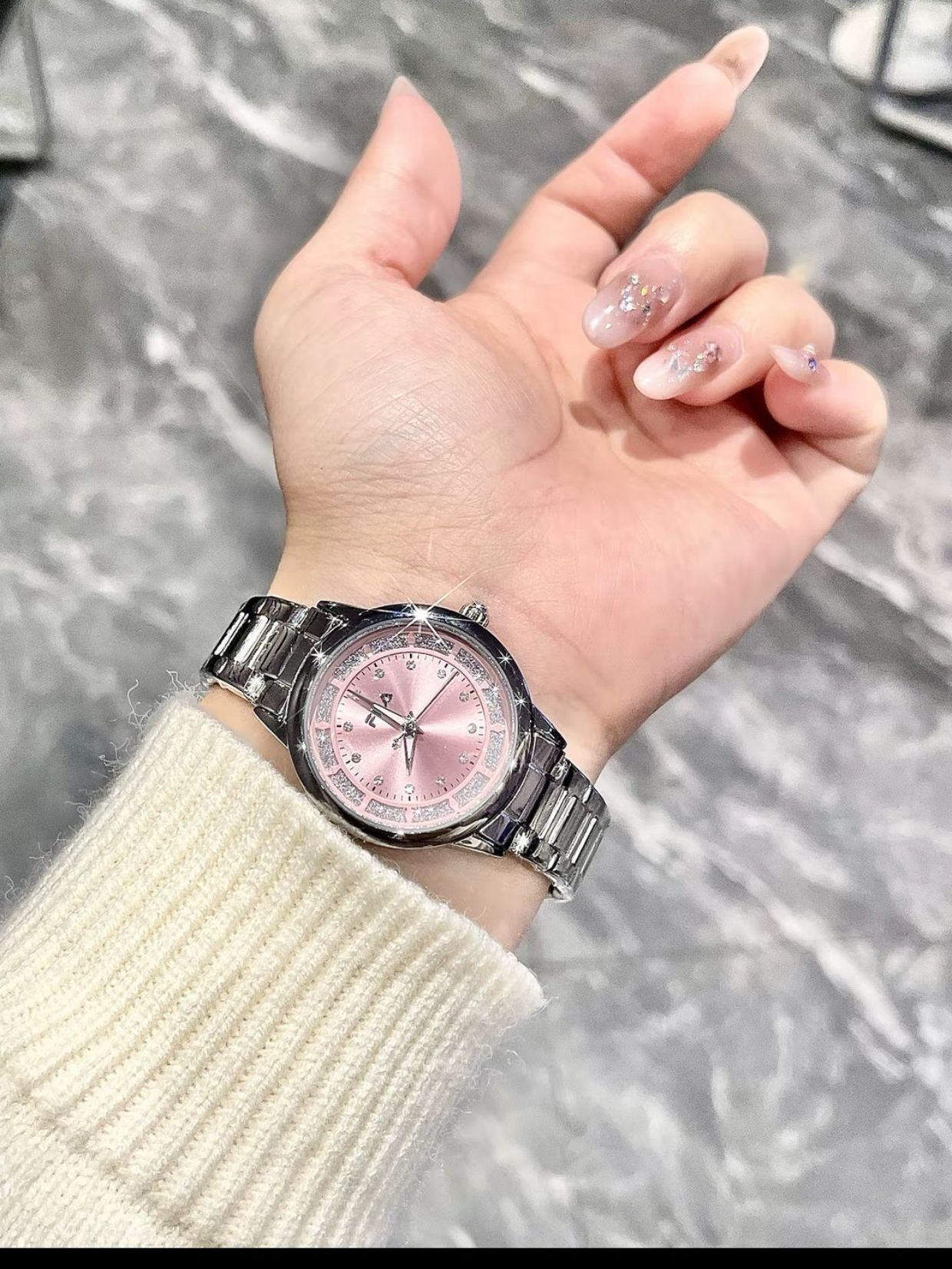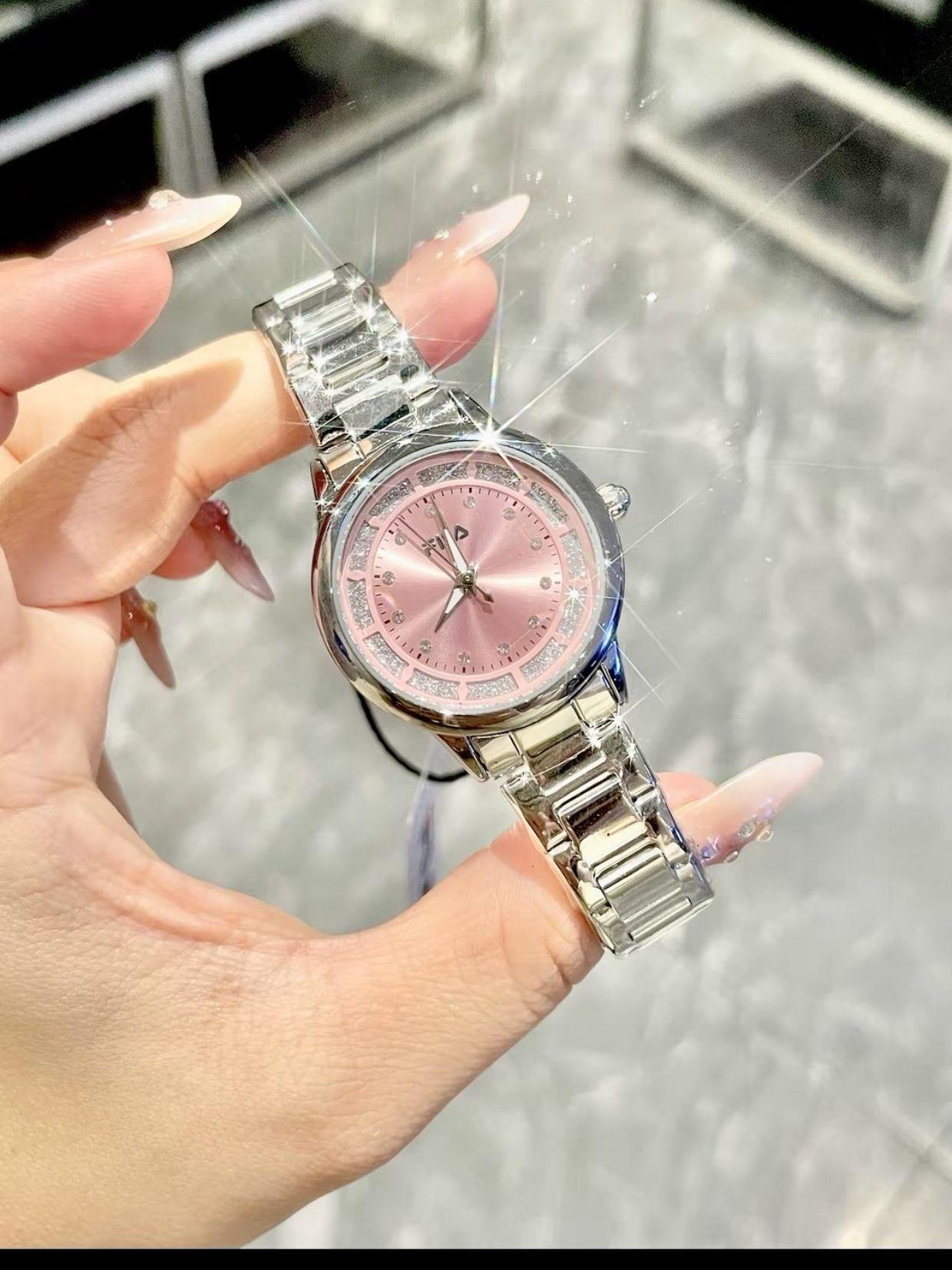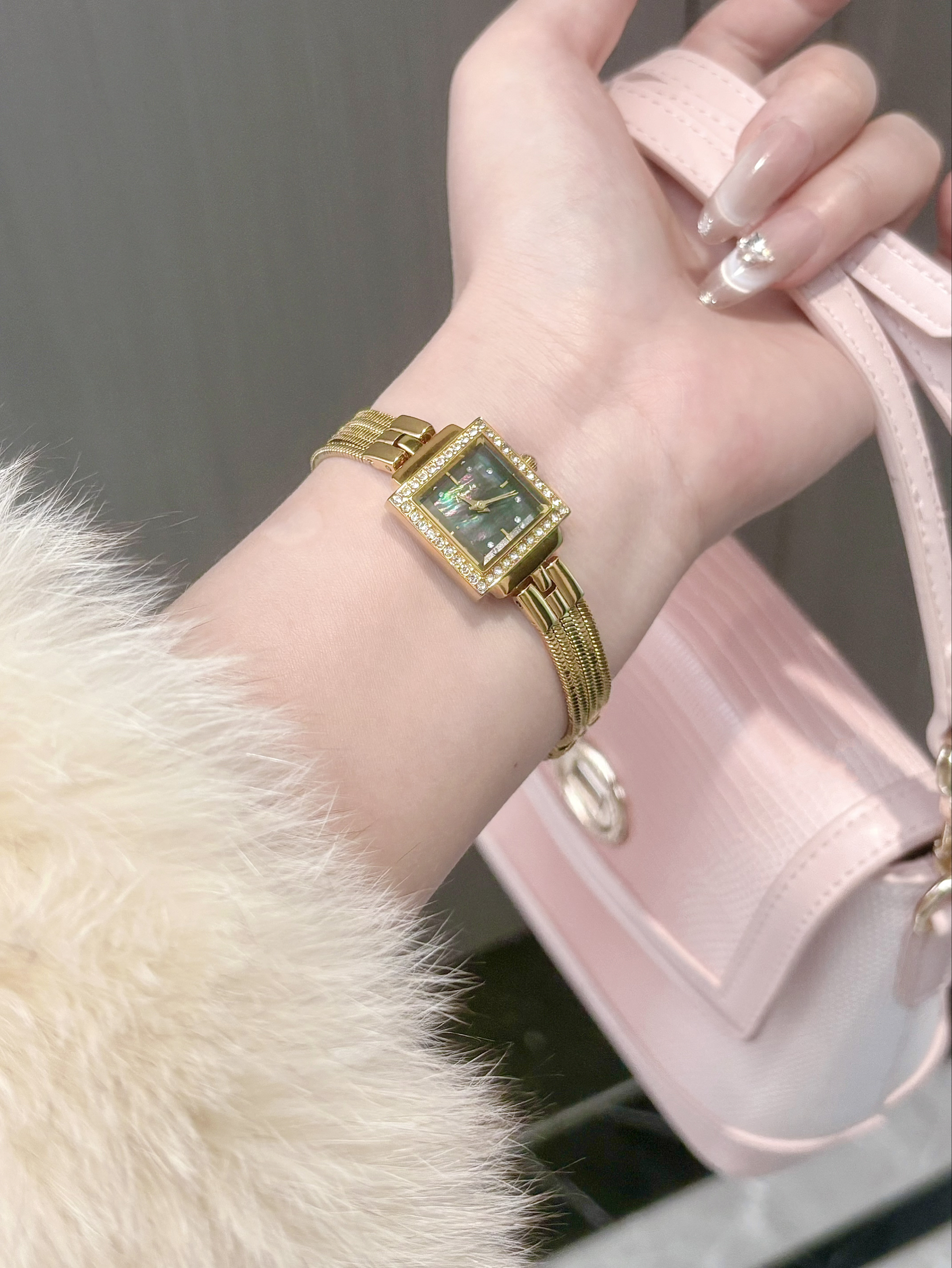 这款斐乐家的满天星手表美进心巴 敲好看的呀 戴上很适合我的手围 粉色贝母表盘搭配银色钢表带 高级感拉满 温柔中又带着清冷感 戴上舍不得摘下噜 秋冬搭配毛茸茸的皮草也hin好看 粉粉嫩嫩的礼盒也很拿捏少女小心思