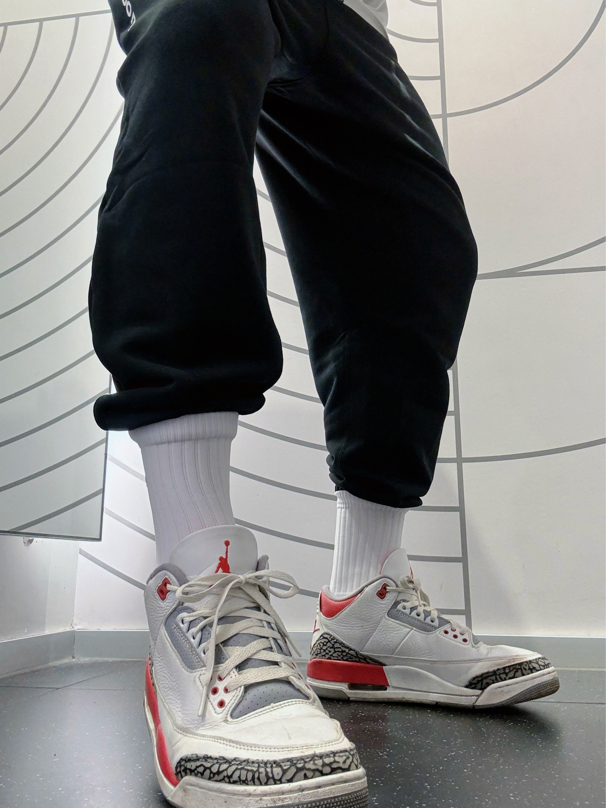 日常最喜欢穿的就是aj3,穿起来很舒服,而且很百搭,颜色很适合圣诞节,今天试的这条裤子也不错,很帅!