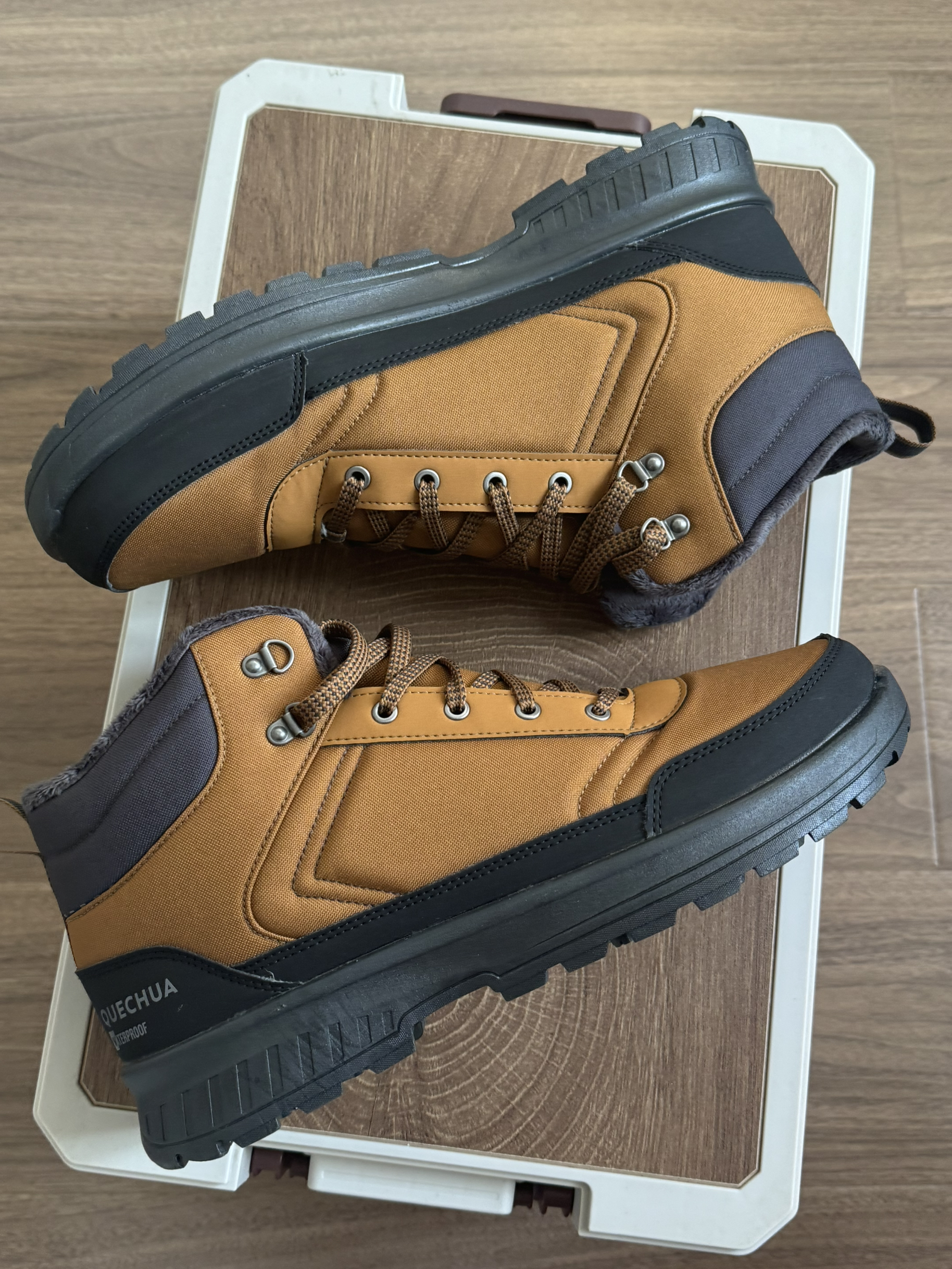 高帮迪卡侬真的救我😭 暖呼呼的超适合冬天~ 卡其色鞋面跟羽绒服、风衣都很搭配✨ 穿着包裹感很好,防滑又保暖! 完完全全冬天的神!