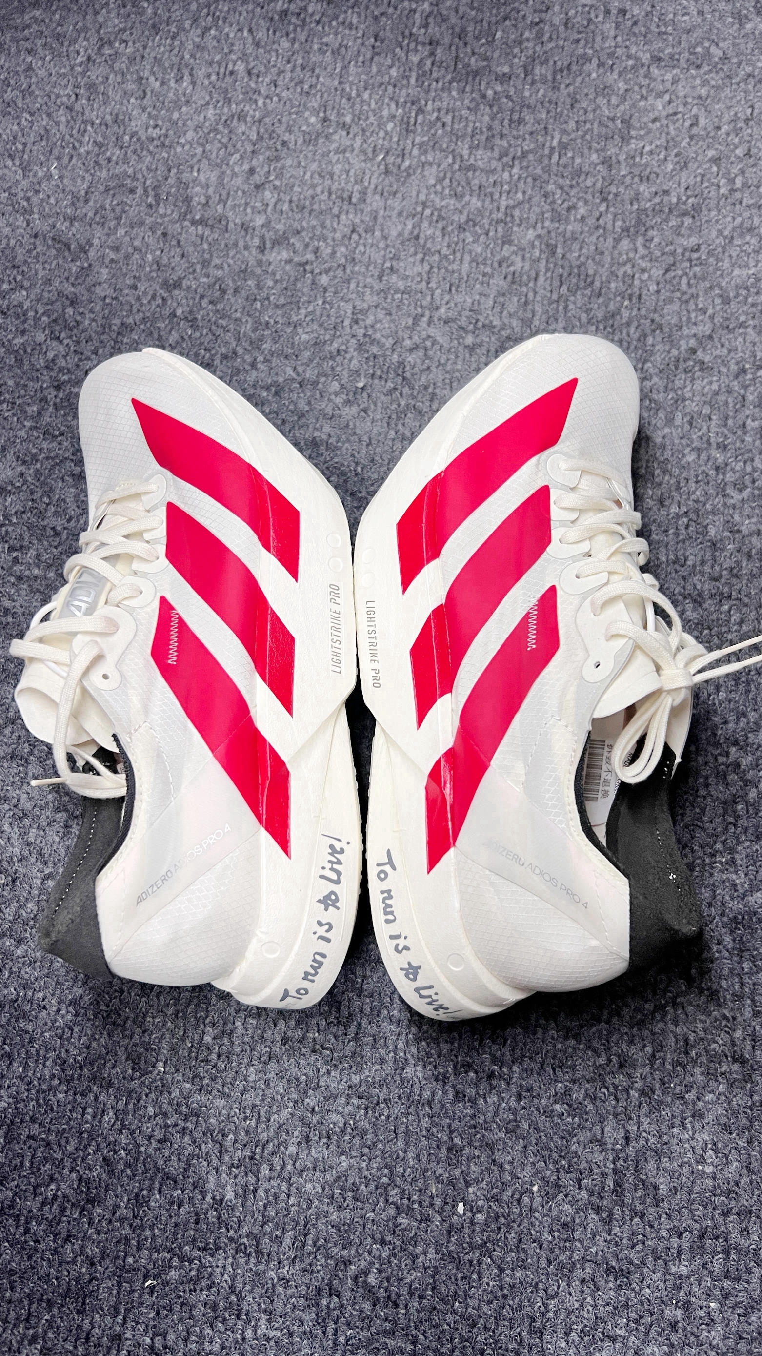 谁懂啊!这双渣马限定的Adizero Pro4也太会了吧!本来是马拉松战靴,结果穿出门直接变街拍顶配🤯 这红白配色真的杀疯了——奶乎乎的鞋身配烈焰红三条杠,鞋侧那手写slogan还自带松弛感,跑马的时候是赛道最靓的显眼包,平时搭条牛仔裤出门,潮得我朋友都问我是不是新出的潮鞋! 脚感才是真王炸!LIGHTSTRIKE PRO中底软得跟踩棉花似的,但碳板一发力直接“弹射起飞”——昨天跑10K步频都快...