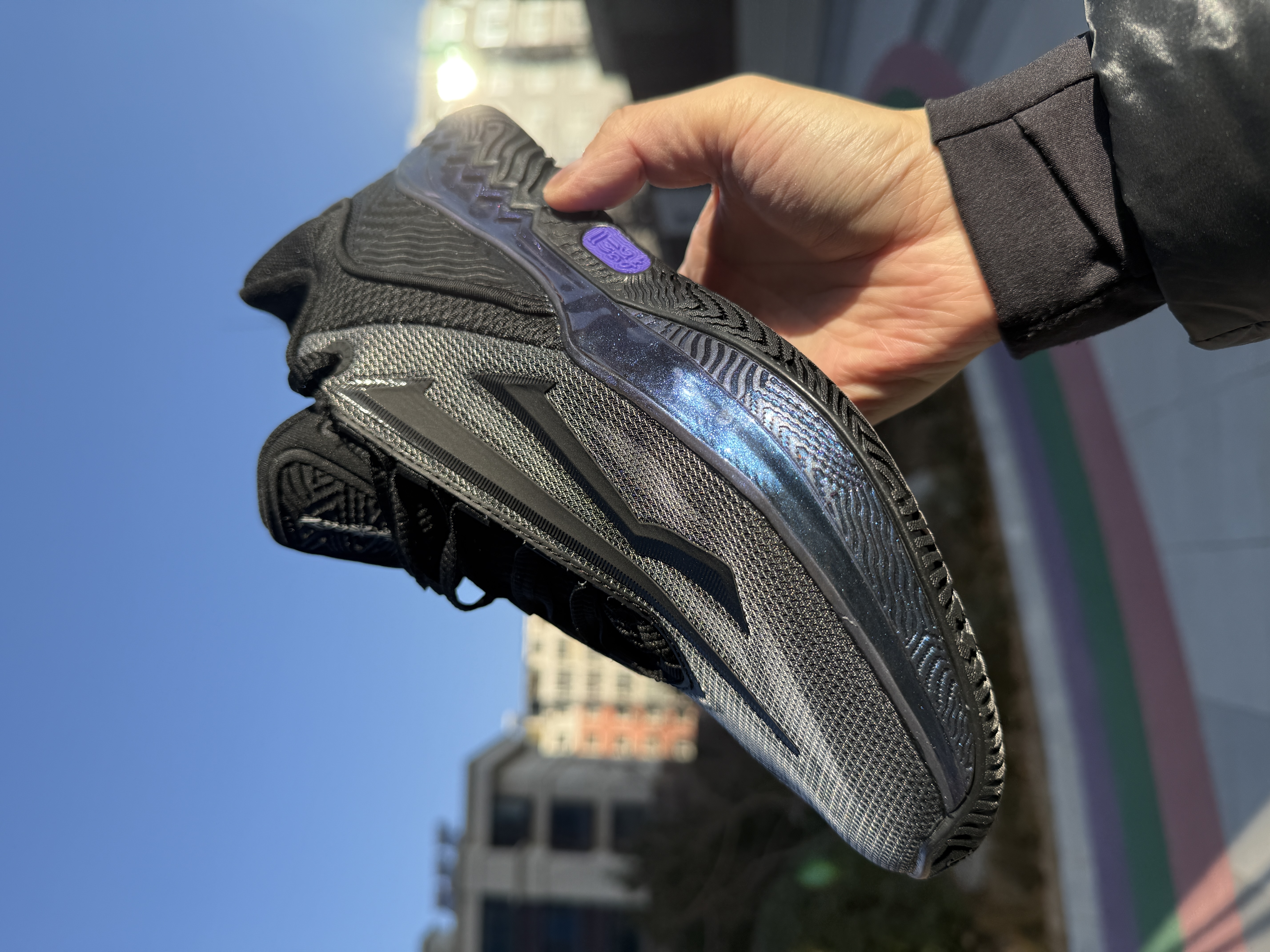 那这双Kai SPEED 2一定不会让你失望,低帮造型非常灵活而且后跟填充非常非常厚实,磨合一下效果更好,橡胶底纹路很粗旷,抓地耐磨都很顶!黑武士配色tpu带一些紫色点缀我觉得很有辨识度,欧文之盾的logo是分布在鞋身上,特点颜值到位,虽说是支线球鞋,但我觉得他更符合欧文的打法,没有一味的减重,保留了质感,包裹鞋脚一体性启动灵活,都很不错,160斤以下我觉得都能适配,大家可以参考下!#欧文同款篮球...