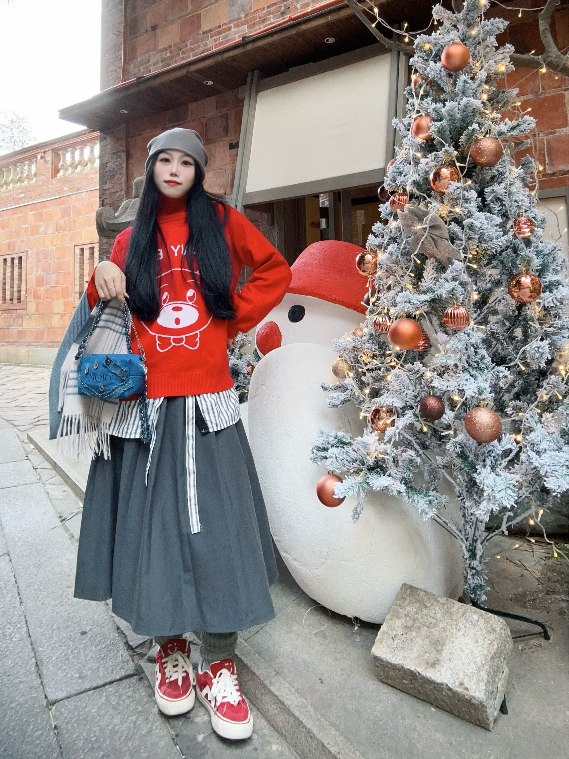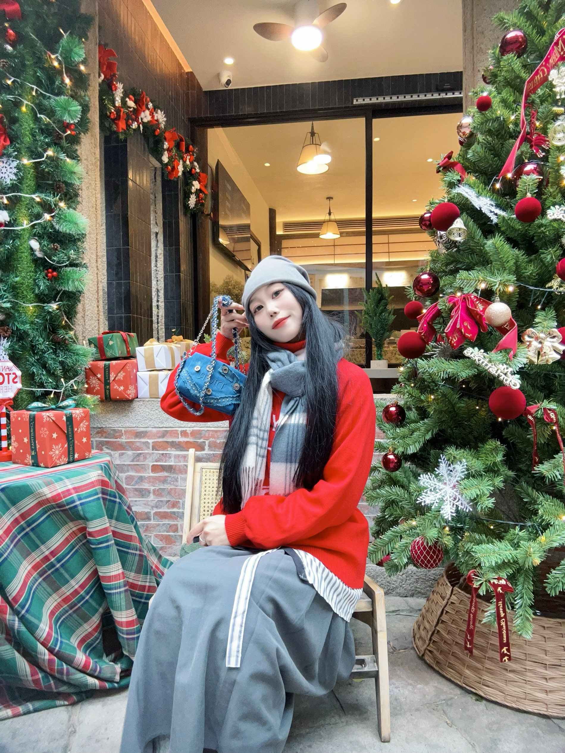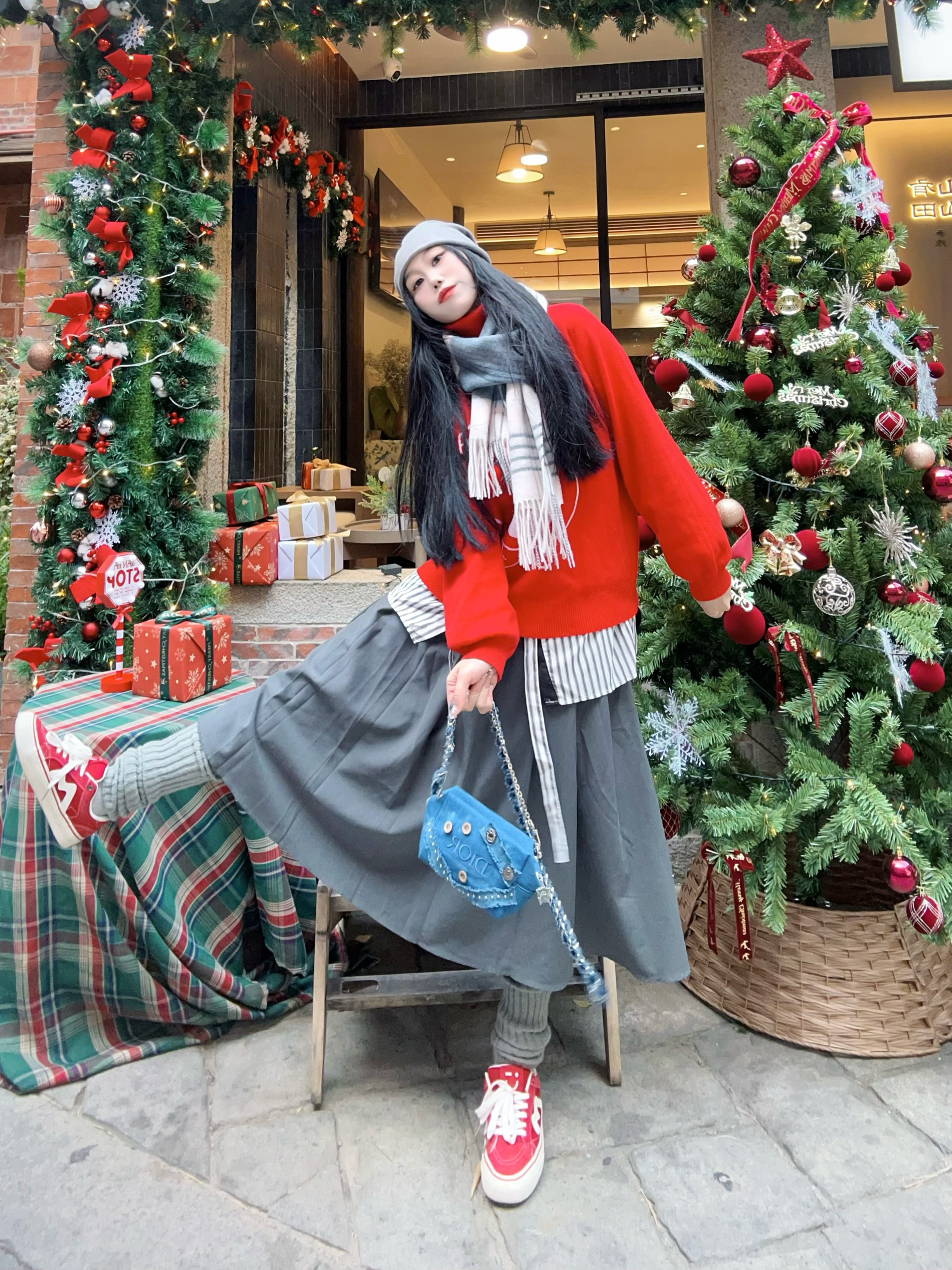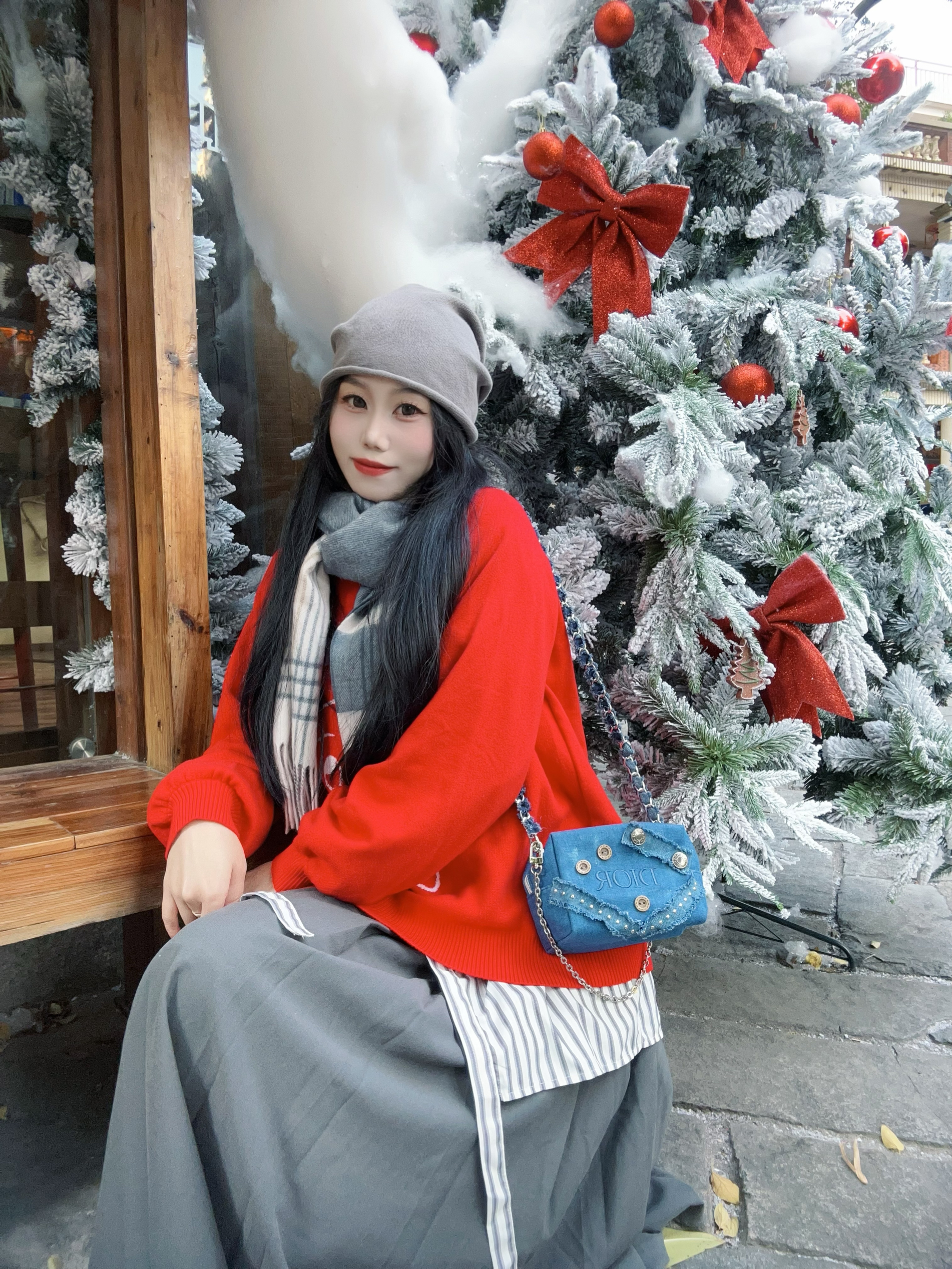 圣诞来信 🌲🎈𓂃꙳⋆展信安呀📨 白天闲来没事 发呆遛弯 街角不知不觉已经换上圣诞新装 随手举起手机想记录这一刻 才发现手里的 Dior 小链条⛓包包 更像是冬日里的一处小惊喜 牛仔蓝色和今天的穿搭格外相配🐑🐻❄ - 自古红蓝出cp 红色针织高领+百褶裙+条纹衬衫 手上拿着复古感满满的小包包 让这一套穿搭都充满了活力 - 举手投足间 不管怎么看 像是不经意间露出的小巧思 心情也跟着雀跃轻盈...