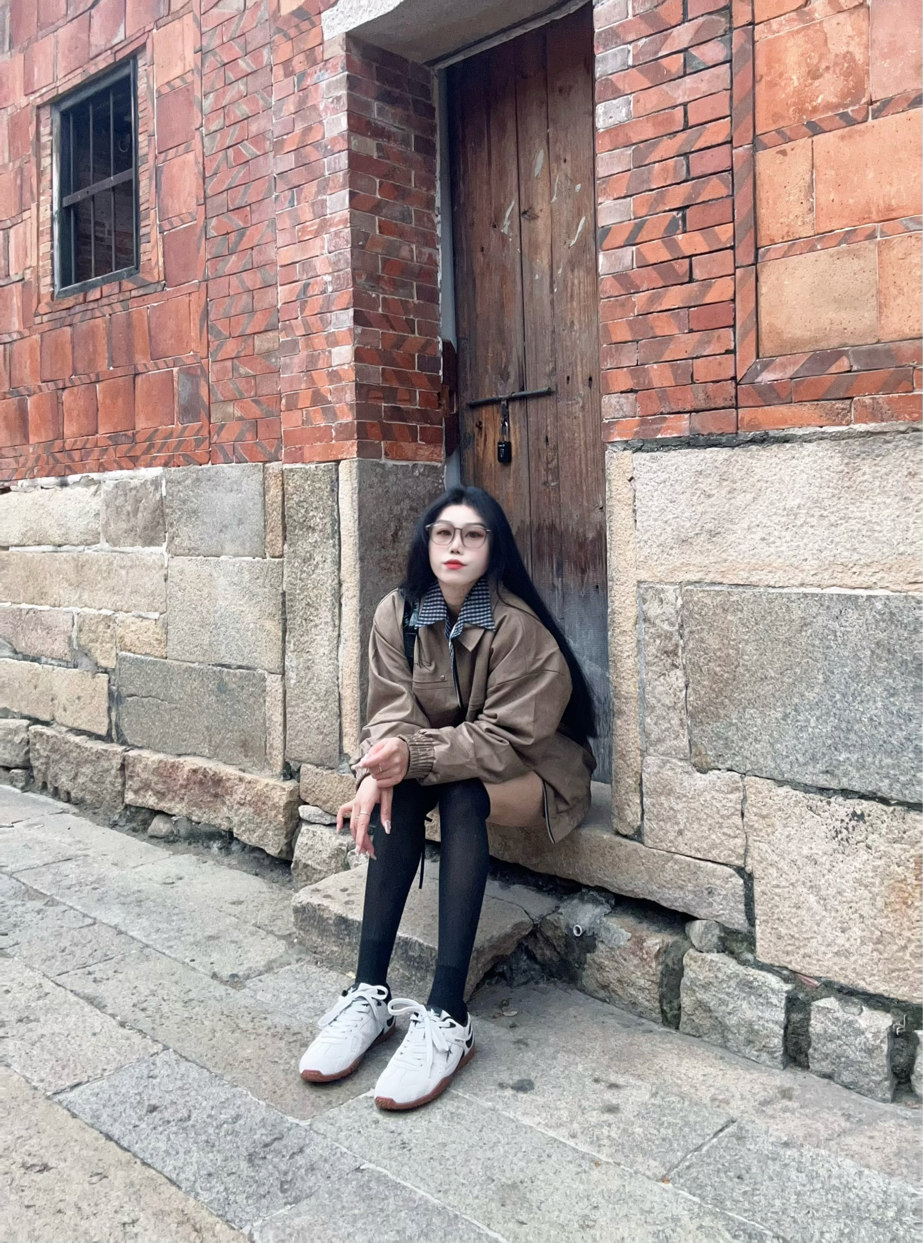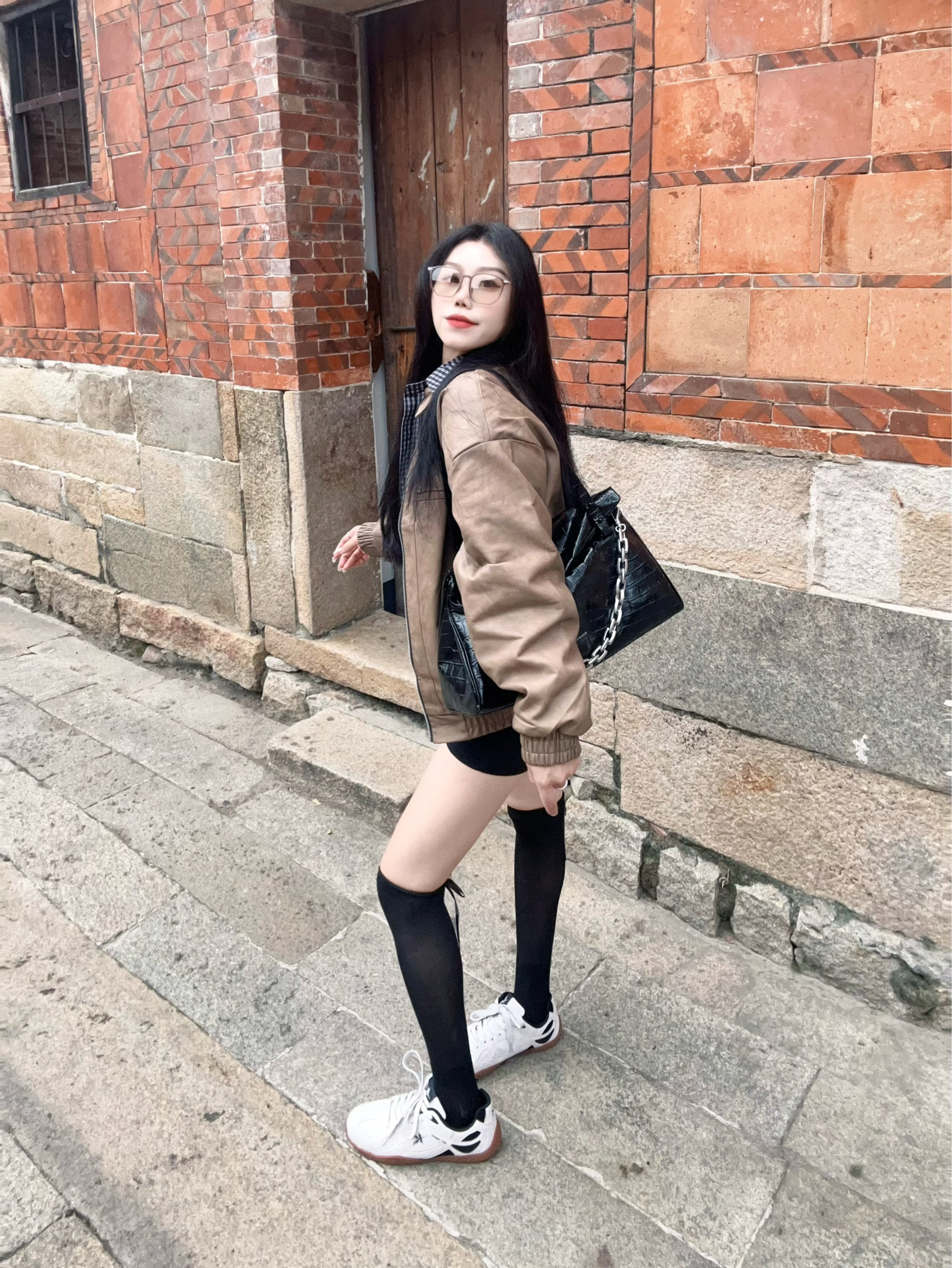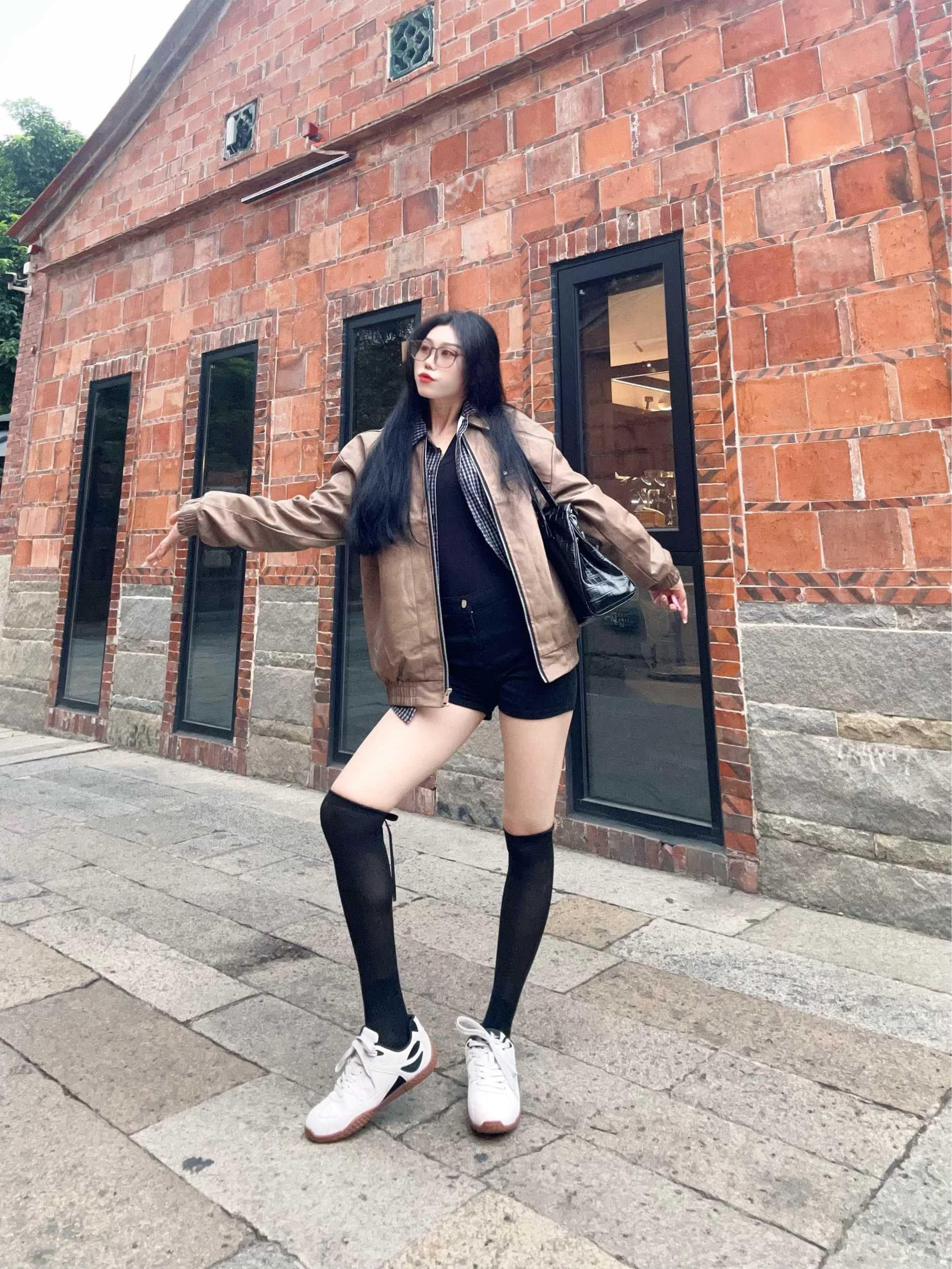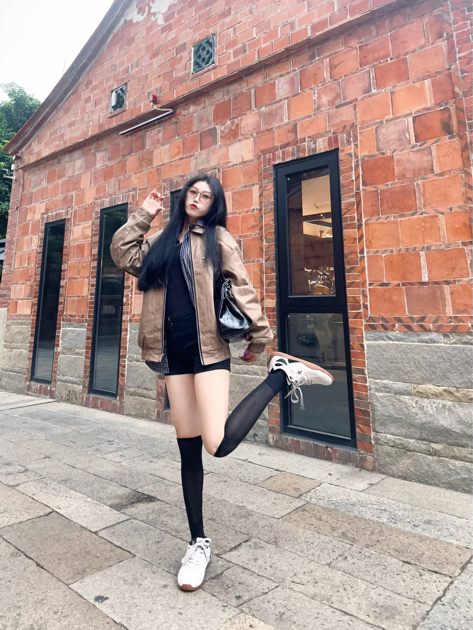 秋天才是穿搭的主场呀 既能穿帅气的外套又能露腿 真的好爱秋天不冷不热的温度℃ - 今天这身穿搭帅气又很时髦 卡其色皮衣太适合琥珀色的秋天啦 搭配短裤+过膝长袜+大边框眼镜👓 再踩一双帅到没边的塞车鞋 秒变街头很会穿的时髦精~ - 我宣布 这双赛车鞋就是我年度坠爱的鞋子 颜值高又好穿 薄底低帮的设计 版型很耐思 上脚秒变大长腿 关键是暴走不累脚 不想花心思搞穿搭 穿它一双直接出门 百搭不挑人~ -