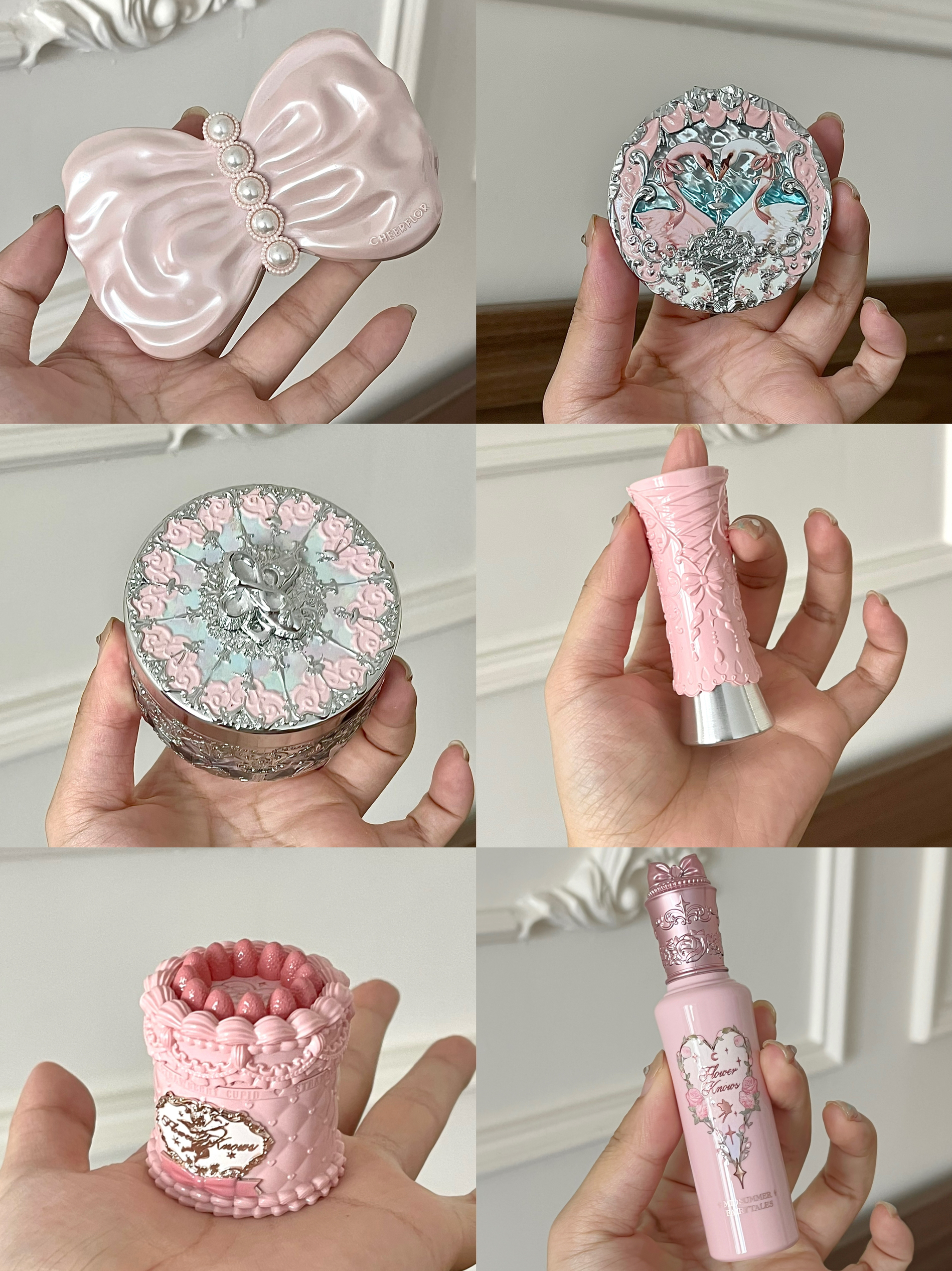 花间颂这个开心没烦恼礼盒好粉嫩呀 里面有粉饼和唇釉 还送了发夹和手持镜呢 真嘟好贴心呀 粉饼的粉质hin细腻 上脸是柔雾哑光的妆效~ 01冻柠茶唇釉 上嘴是嫩嘟嘟的果冻唇 这两个平时都能用到 可可爱爱的发夹和手持镜 哪个女生能拒绝呀