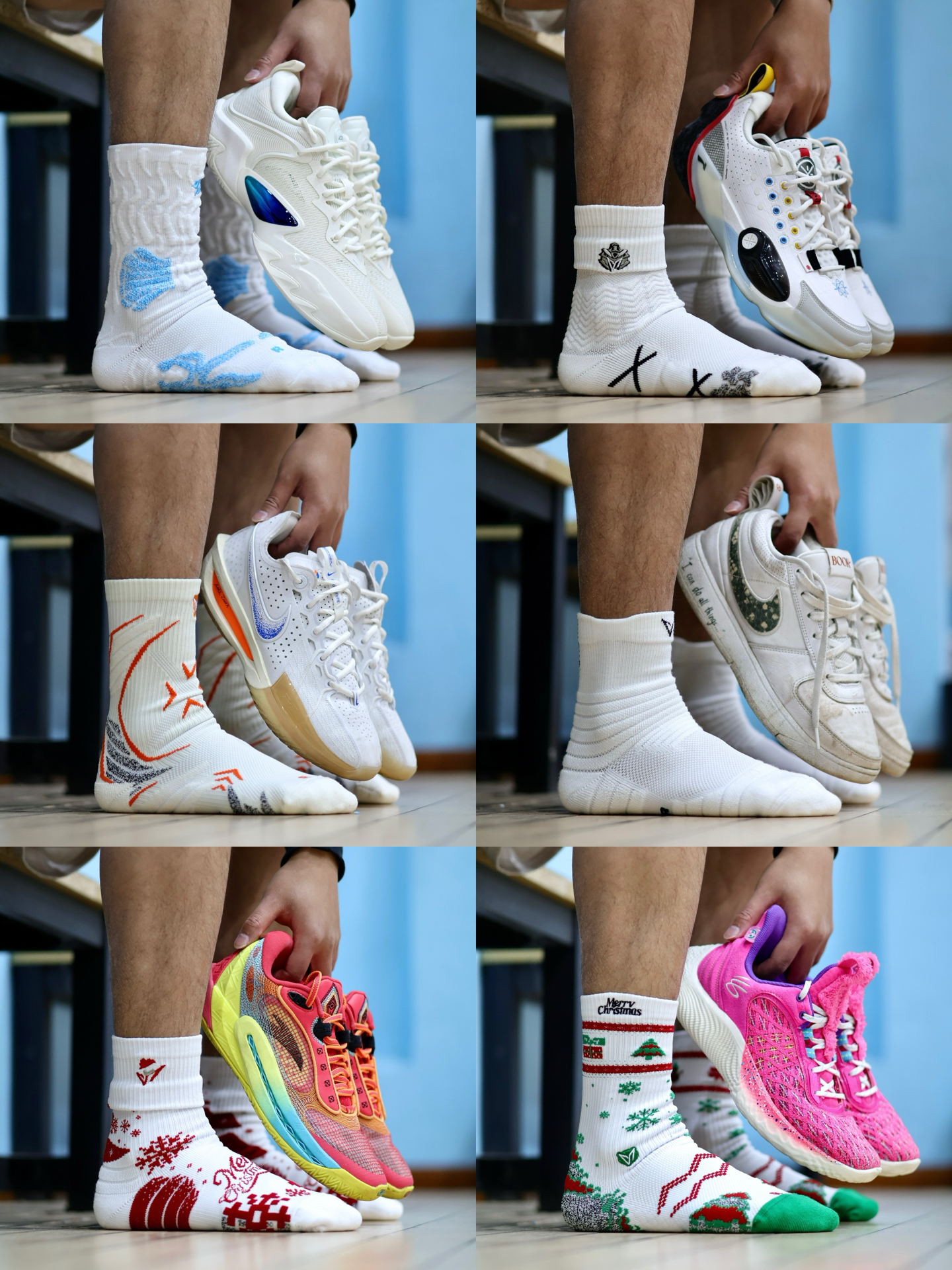 🔍选合适的球袜能给球鞋性能带来一定buff。🧦球袜有入门的薄款和进阶的加厚款,🏷️维动的这一套从入门薄袜到加厚毛巾袜,我也是集齐了! 1️⃣入门:只在趾骨和后跟局部加厚,当然也有表面防滑纱。这种一般可穿搭可实战,无门槛。缺点是高强度对局,加厚厚度不够用。 2️⃣标准:额外做了脚踝加压。也就是脚踝出面料的弹性更紧凑,有一定保护作用。趾骨处的防滑纱会做针对性加厚,持续前掌蹬地也不容易...