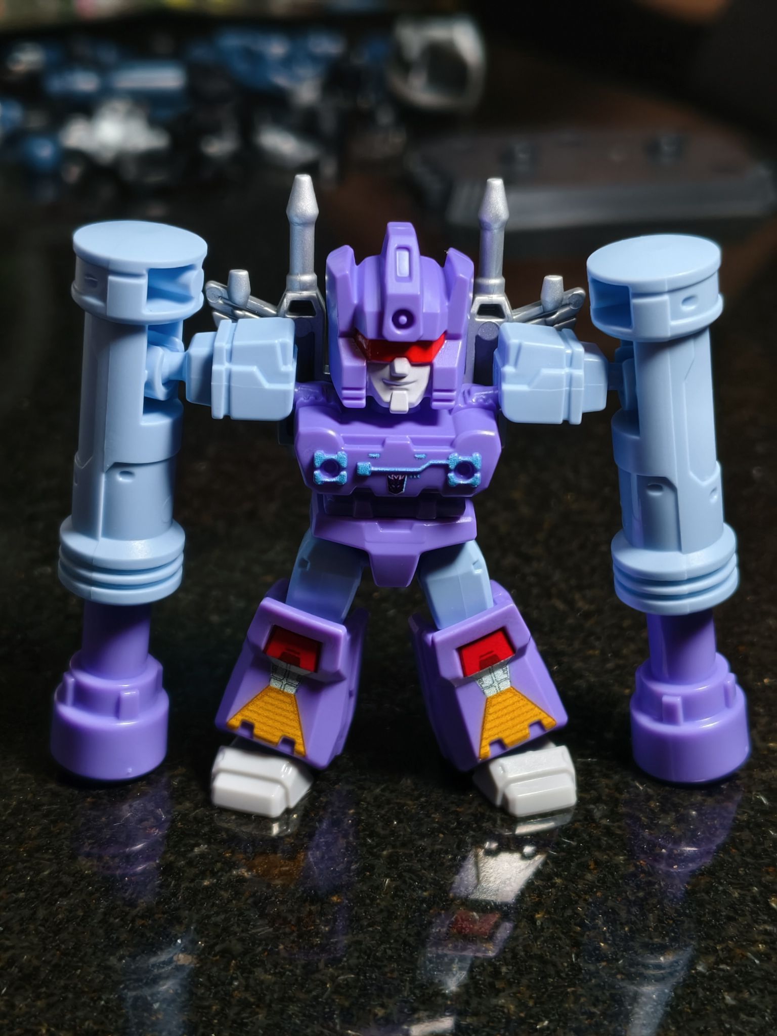 布鲁可星辰版第四弹端盒拿下!这一弹的钢索是我最想要的了! 涂装很精致,虽然是bb造型比例,可动性和姿势摆动方面依然给力。买几盒也不过两位数,相当划算的变形金刚