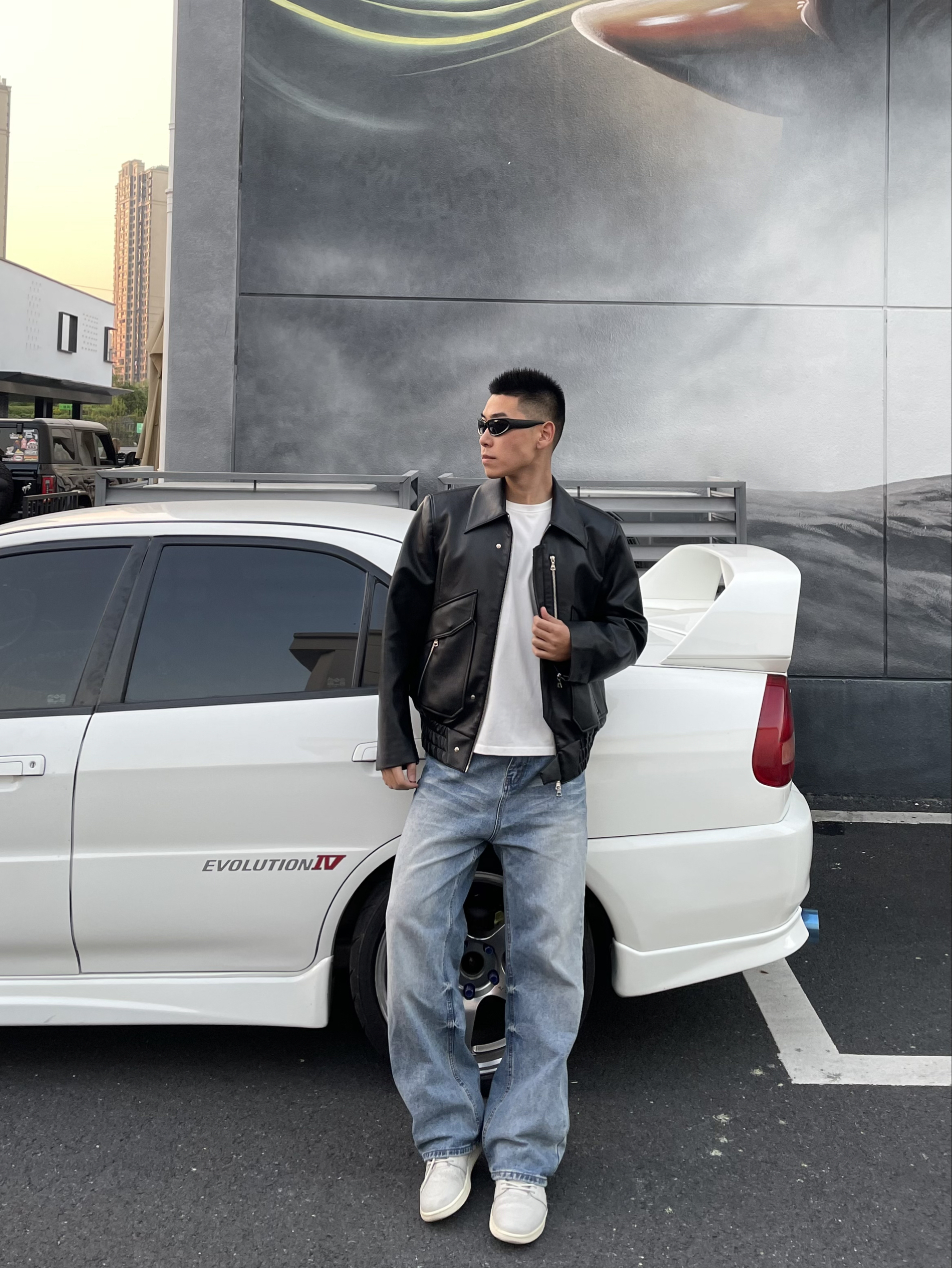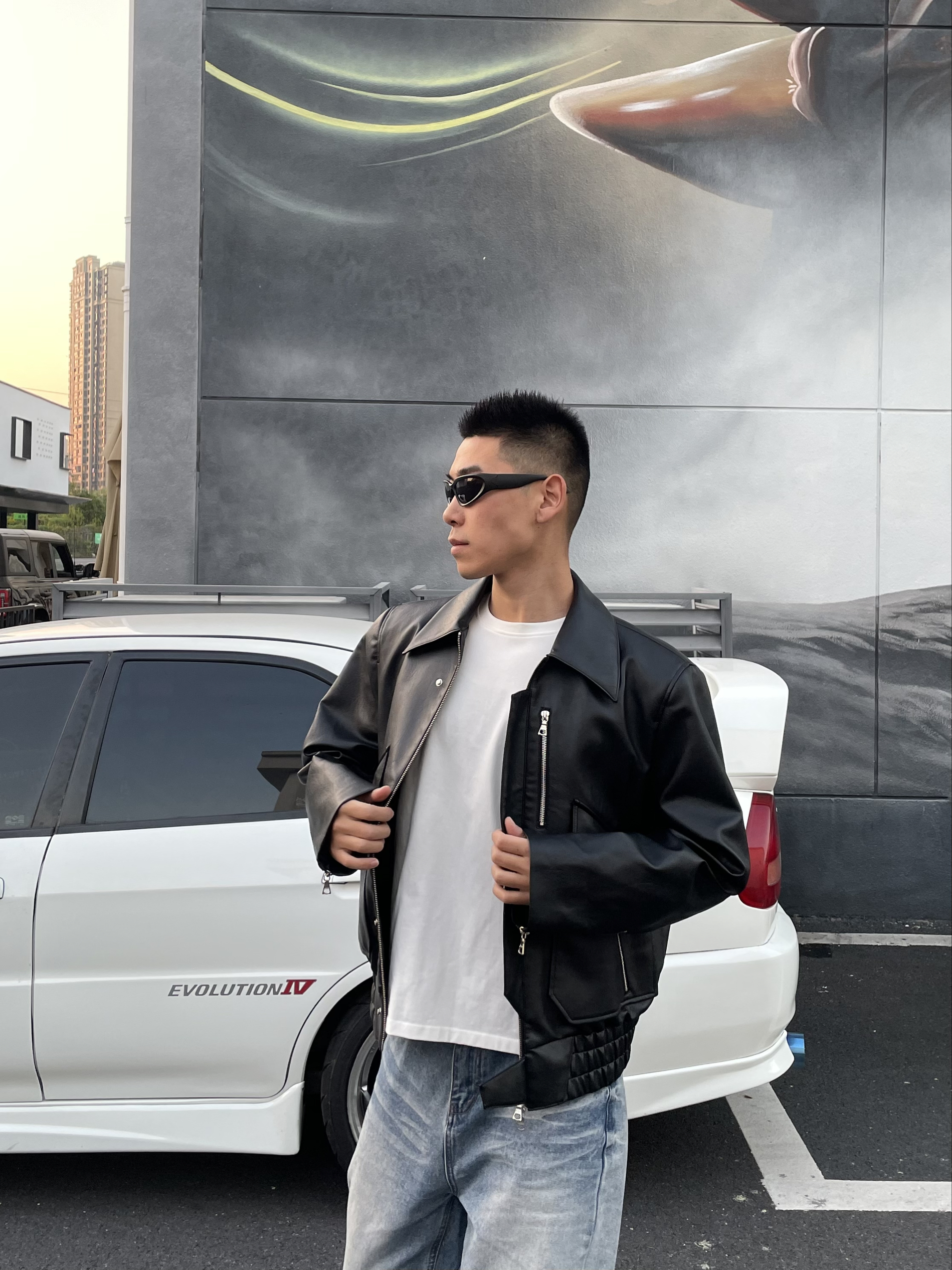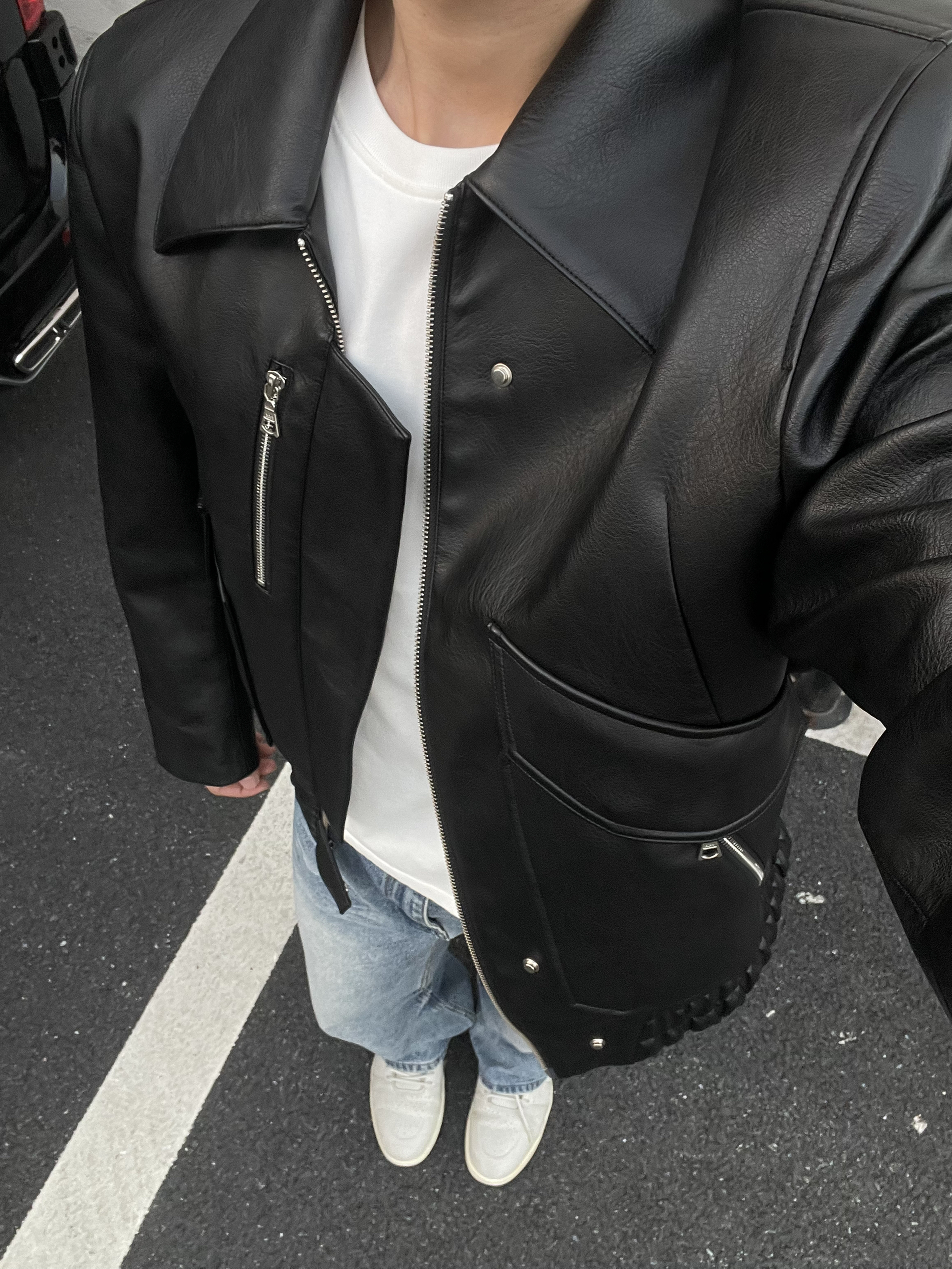 🧥外套的皮质很柔软,不会很硬! 版型是小短款,搭配浅色系牛仔裤👖 55分身材都变大长腿了🦵 🤣肩部线条做的挺好的,上身很显肩宽,特别是男生,肩宽一点会更有力量感,更硬汉💪 平时逛街我还挺爱这么穿的,时髦的勒~ 上周末逛街还被要链接了哈哈哈🤩 我的身高181cm 体重75kg 🧥➡️穿的是2XL尺码 合适的效果~ 🙋俺也想看看大家的宝藏皮衣~ 欢迎大家在评论区参与✌️