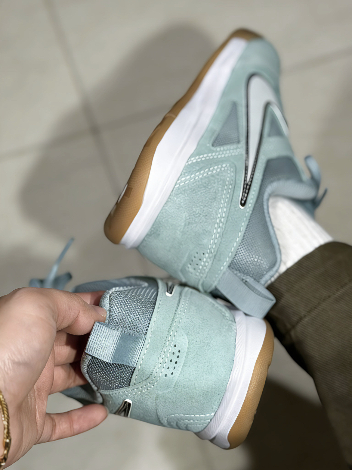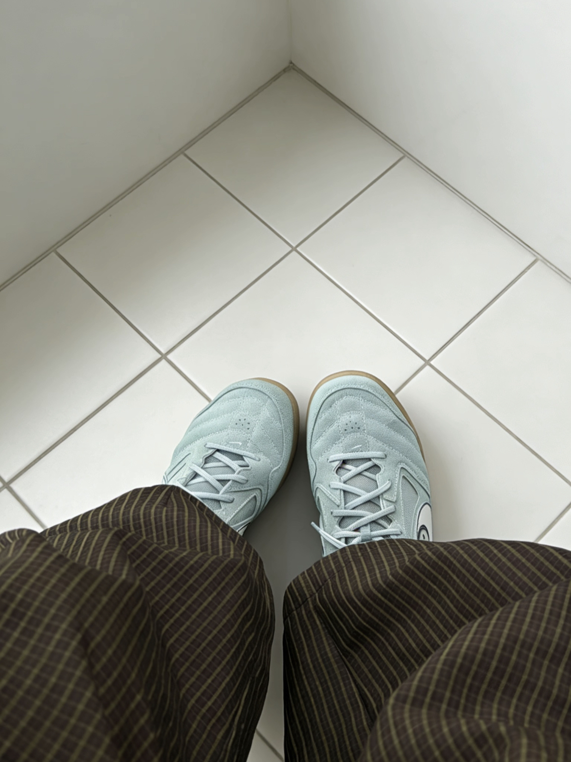 这双耐克Gato的配色挺特别的,薄荷绿配棕色,搭在一起看着很清爽又有点复古,夏天穿很合适。 我一直挺喜欢这个系列的,这次的颜色也没让人失望。薄底鞋穿起来轻便,这个配色尤其显得干净利落。