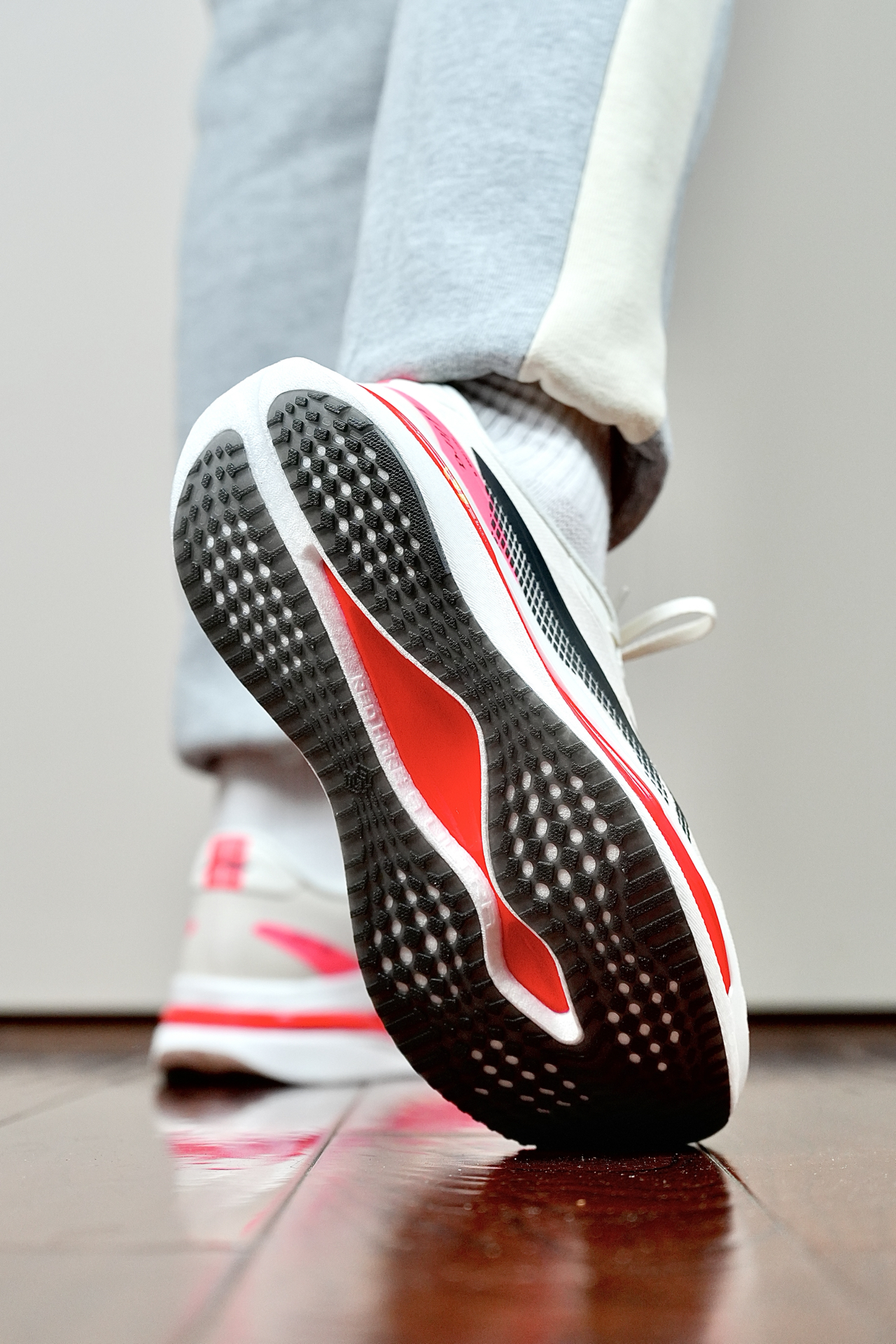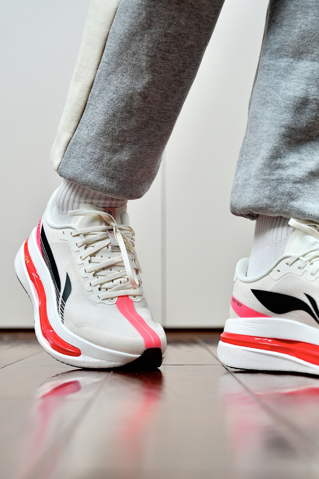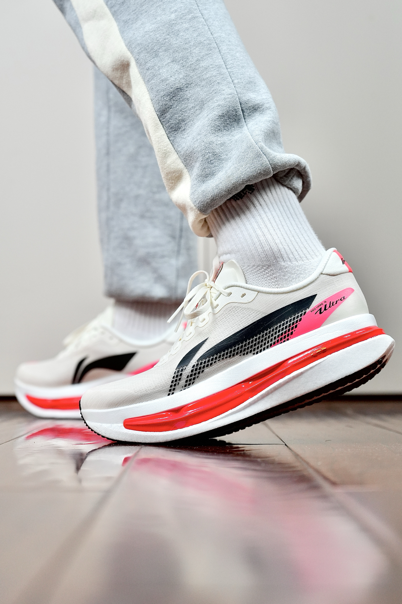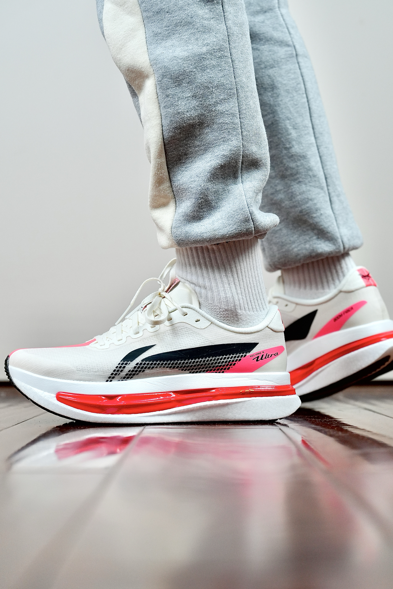今天分享的跑步鞋鞋为李宁 赤兔9 ULTRA,鞋子外观有点厚底顶缓那味,整体以米色鞋面为主,搭配上黑色LOGO与红色胶囊中底,辨识度十足 配置简单说:三层中底(上层超䨻+中层超䨻胶囊+下层䨻)+䨻丝鞋面+GCU大底,内置仿生玻纤承托片,前后掌加宽 上脚体验下来,兄弟的回弹率很高,踩上去软弹又带劲,无碳板设计也大幅降低了驾驭门槛,但缺点是中底偏软导致内侧支撑不足,跑长距离有点晃;中底偏厚吃小腿力...
